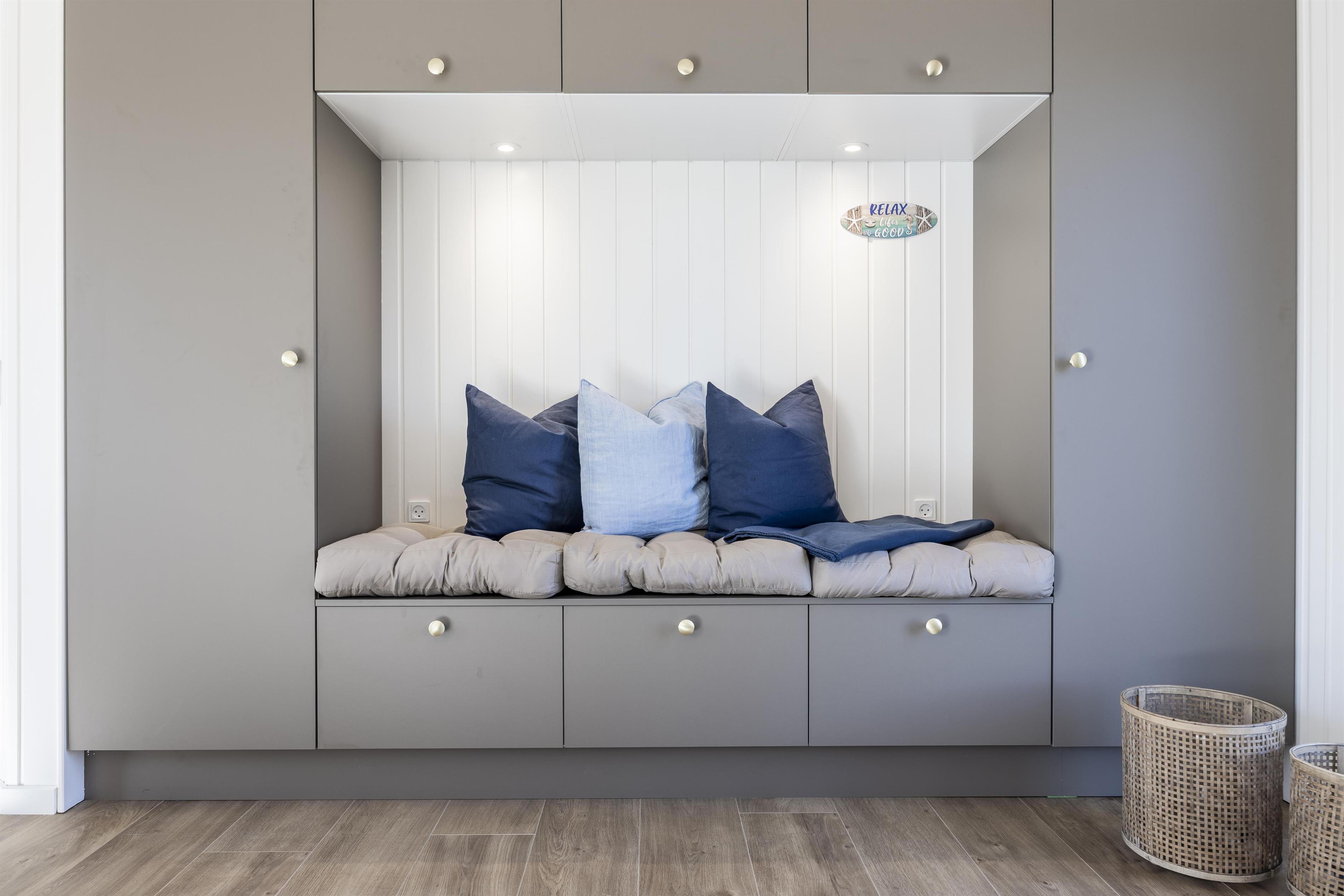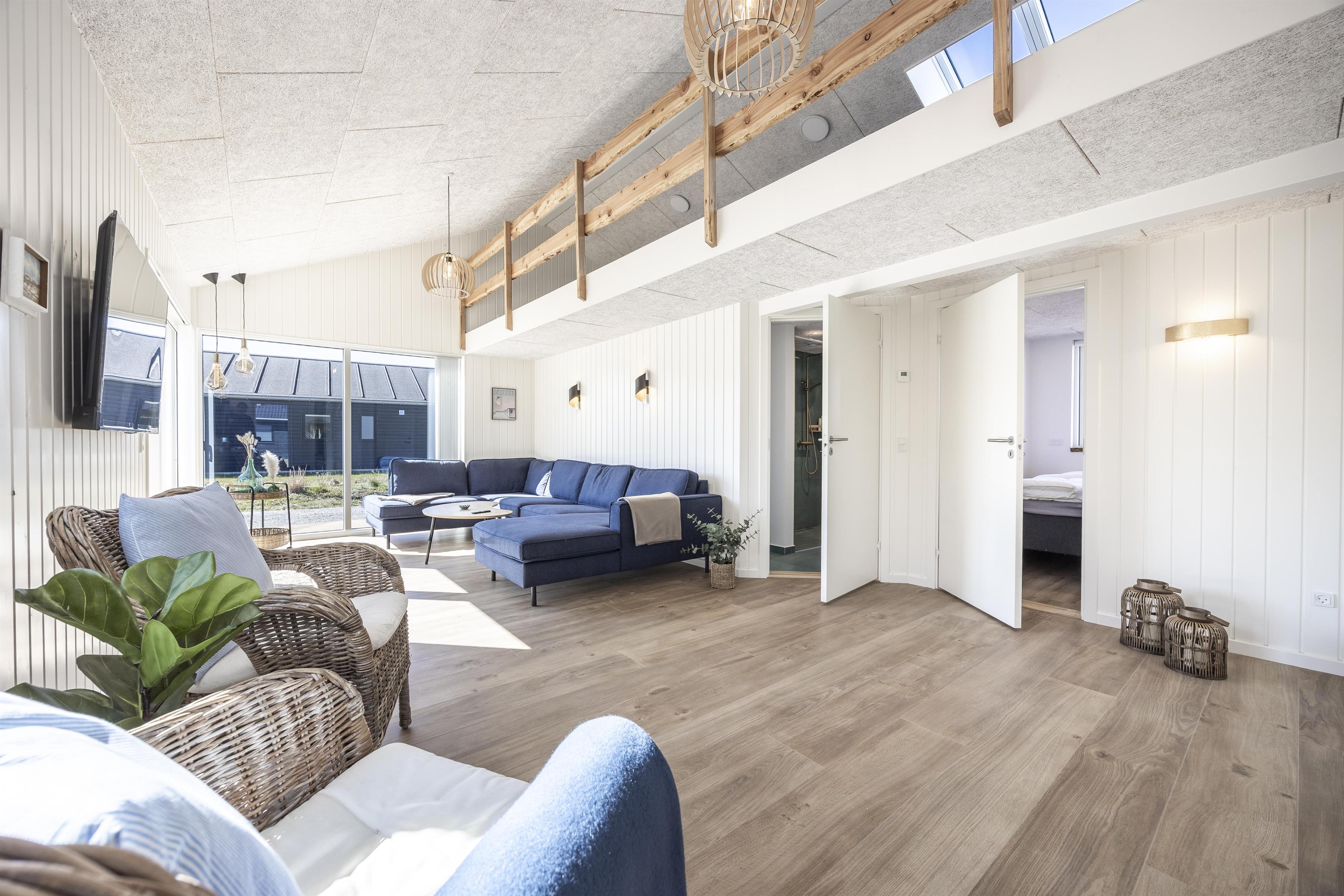 Endvidere bliver I mødt af tre soveværelser med dobbeltsenge og en stor og rummelig hems med en hyggelig tv-hule. Der er også flere små, hyggelige hjørner, hvor man kan trække sig lidt tilbage og nyde en stille stund eller en god bog. I kan også tage et spil dart i husets aktivitetsrum.