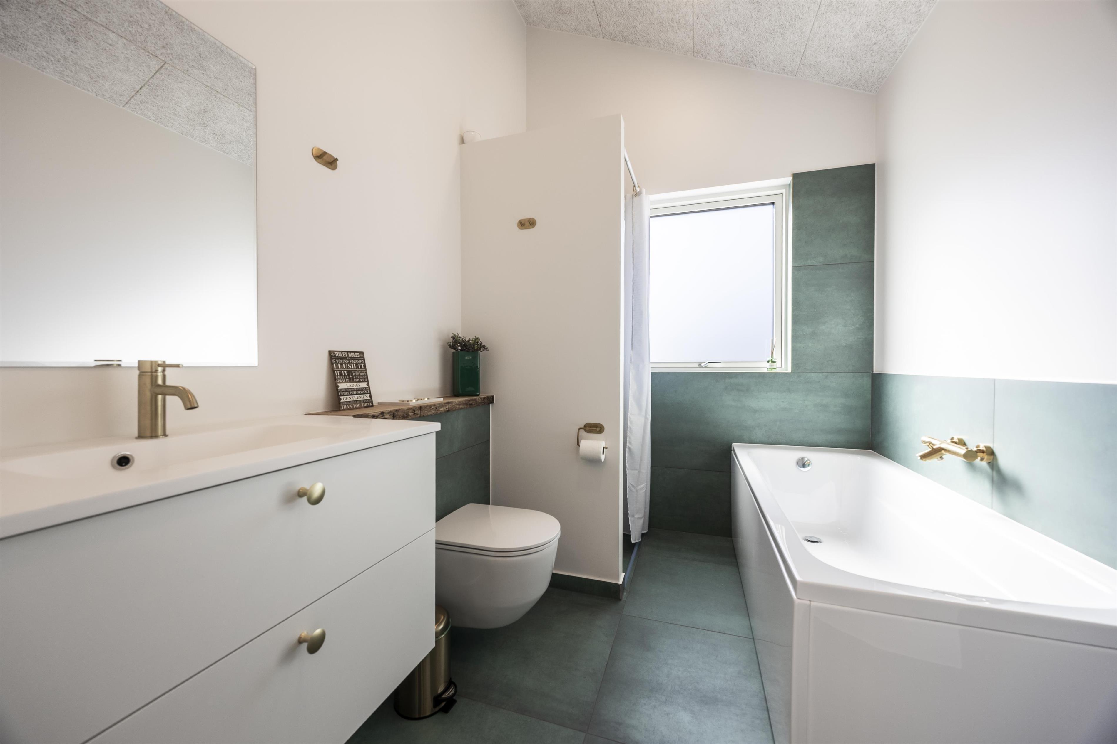 Til rådighed er også to flotte badeværelser, hvoraf det ene rummer en dobbeltbruser og det andet både et badekar og en bruseniche. Her er der god plads og komfort for alle gæster, og efter en dag fyldt med oplevelser i den smukke nordjyske natur kan I slappe af og genoplade energien.