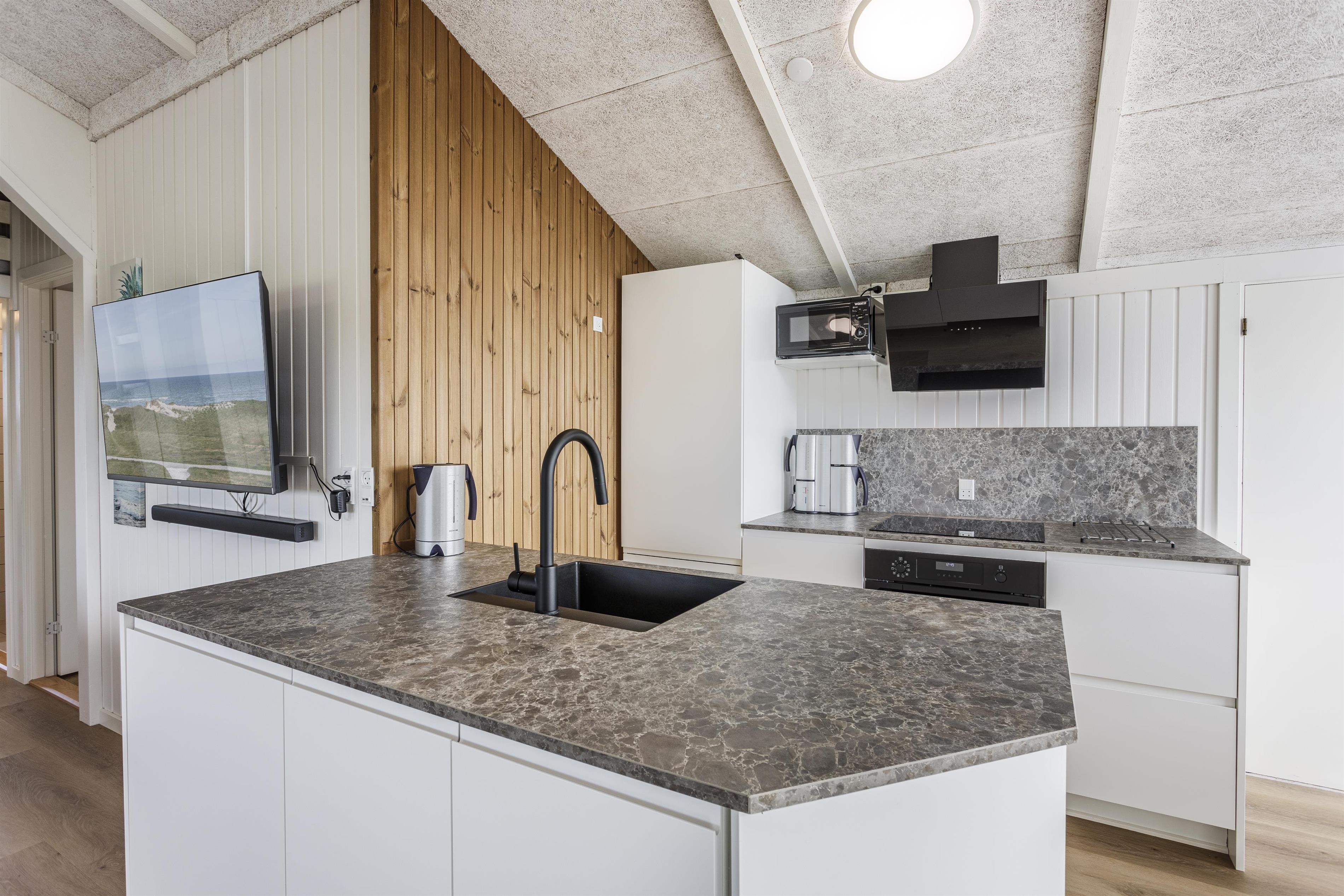 Selve huset er indrettet med 3 soveværelser med i alt 7 sengepladser samt 2 badeværelser med bruser, hvilket gør det ideelt til både familier og venner, der vil dele en uforglemmelig ferie sammen. Det åbne køkken og stueområde danner hjertet af huset og det er her man mødes over hyggelige måltider, spilaftener og afslapning. Den lune pool indbyder til en svømmetur med efterfølgende afslapning i spabadet eller saunaen.