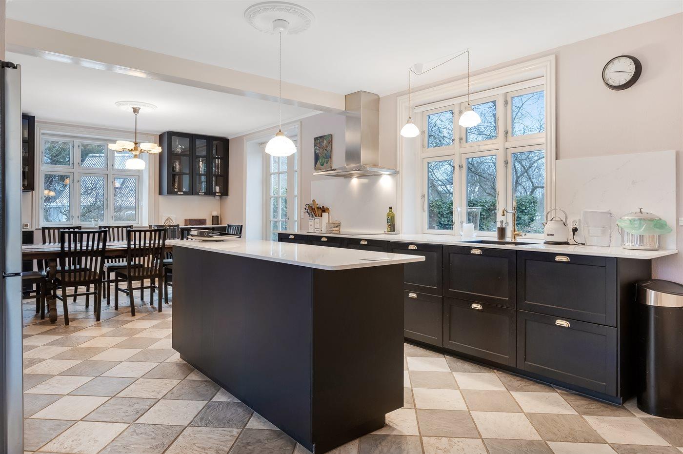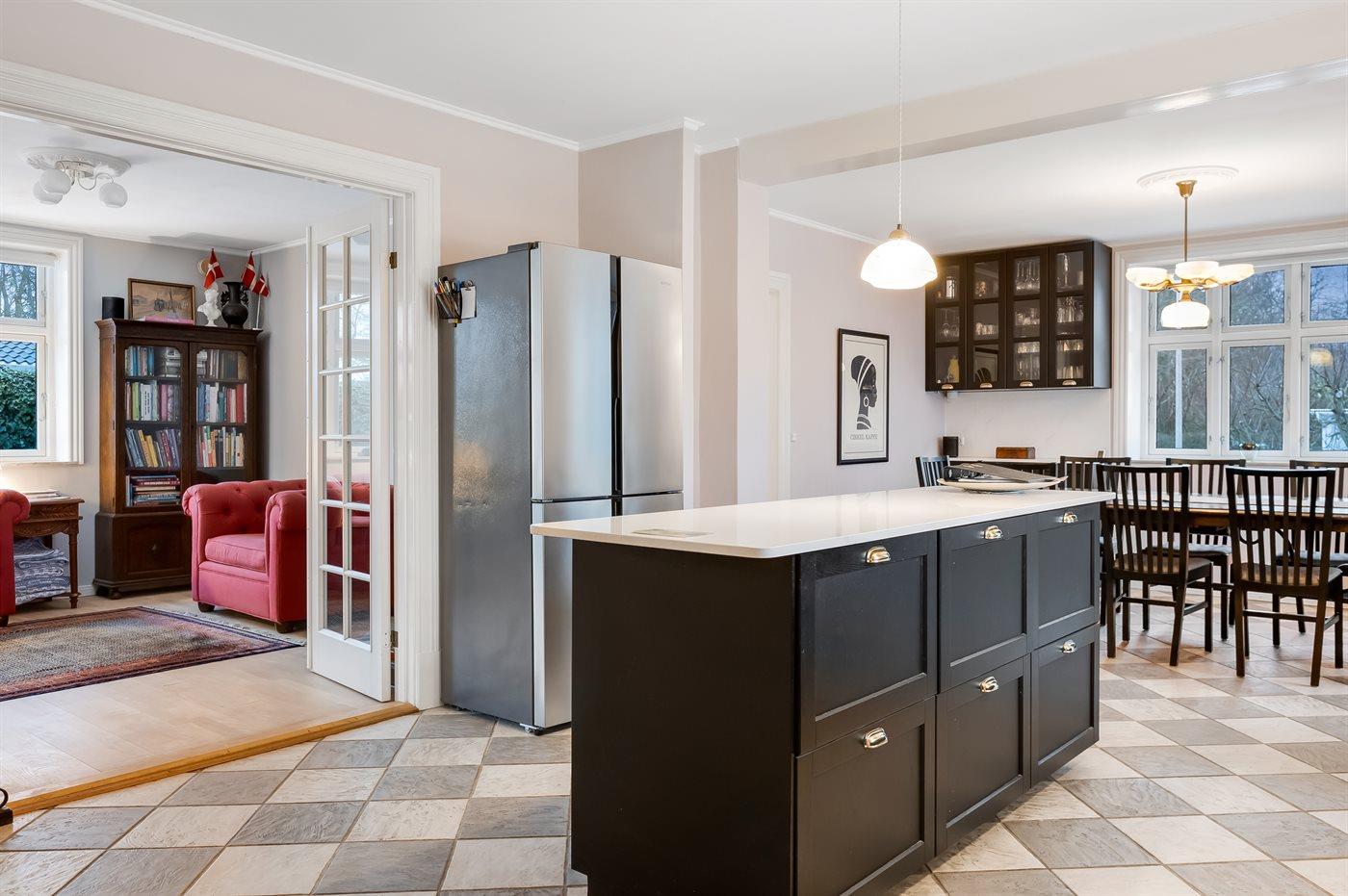 Køkkenet er udstyret med 1 køleskab. Der er 4 induktionskogeplader, varmluftovn, mikrobølgeovn samt opvaskemaskine.
