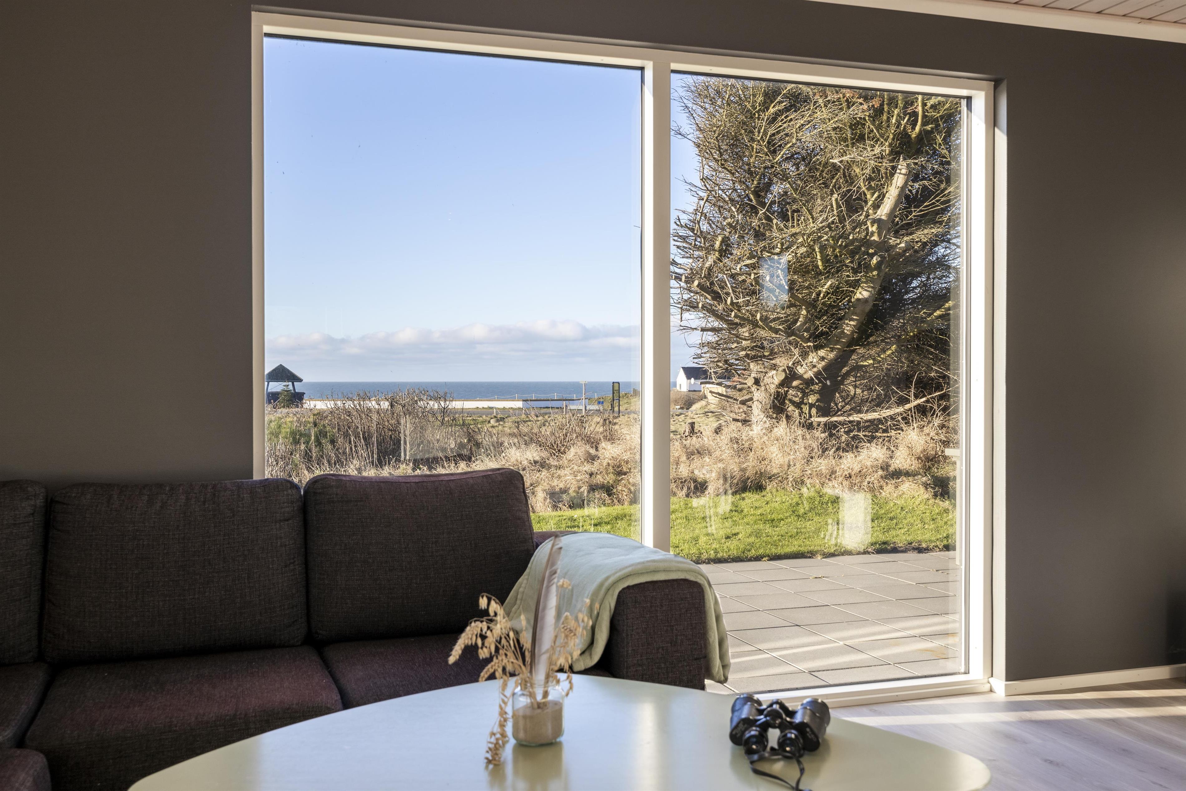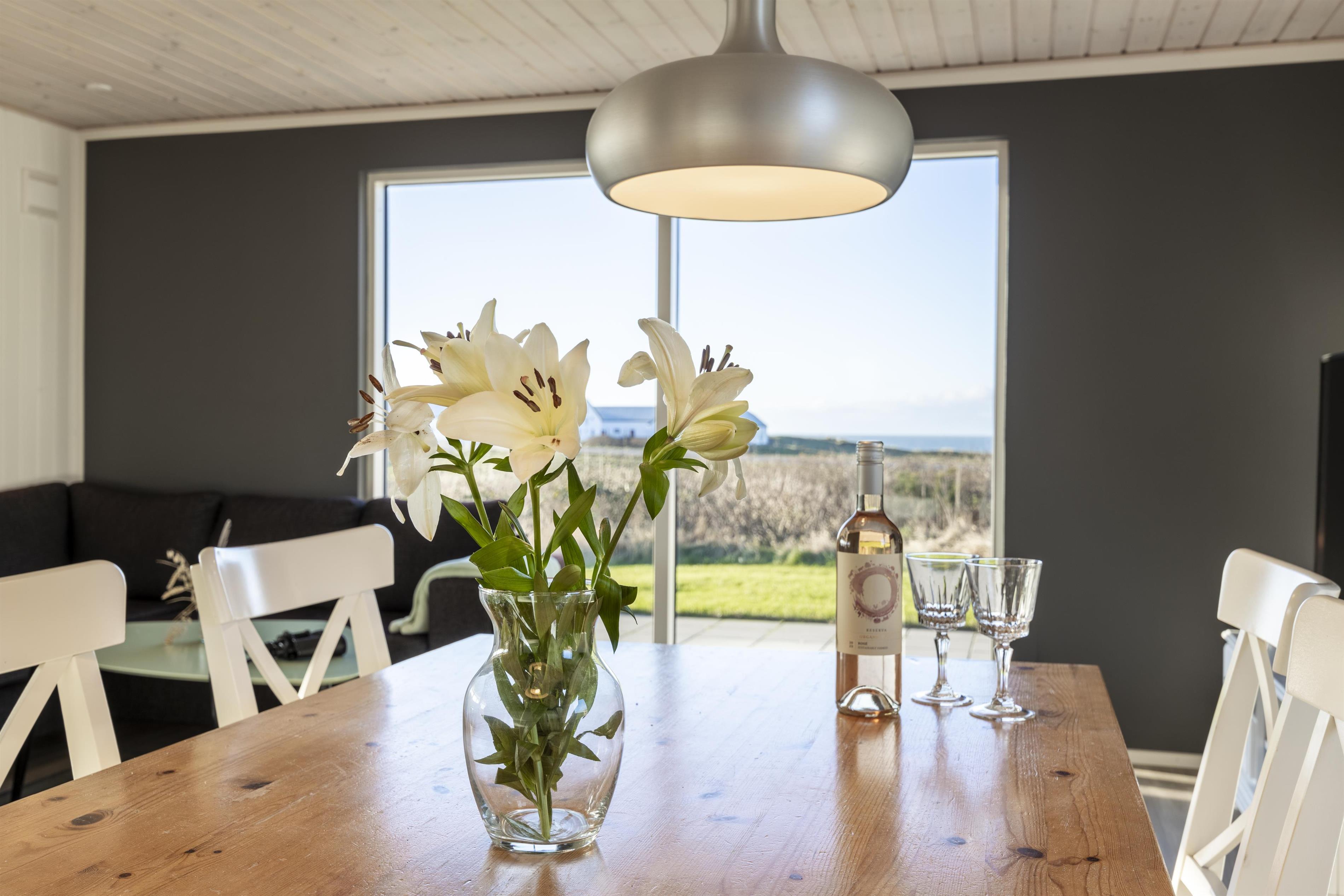 Mens maden forberedes, kan I nyde den betagende udsigt over Vesterhavet. Det store gavlvindue, der går fra gulv til loft, er som et imponerende maleri på væggen. Maleriet forandrer sig hver dag, og det bliver aldrig kedeligt at forbybe sig i udsigten.