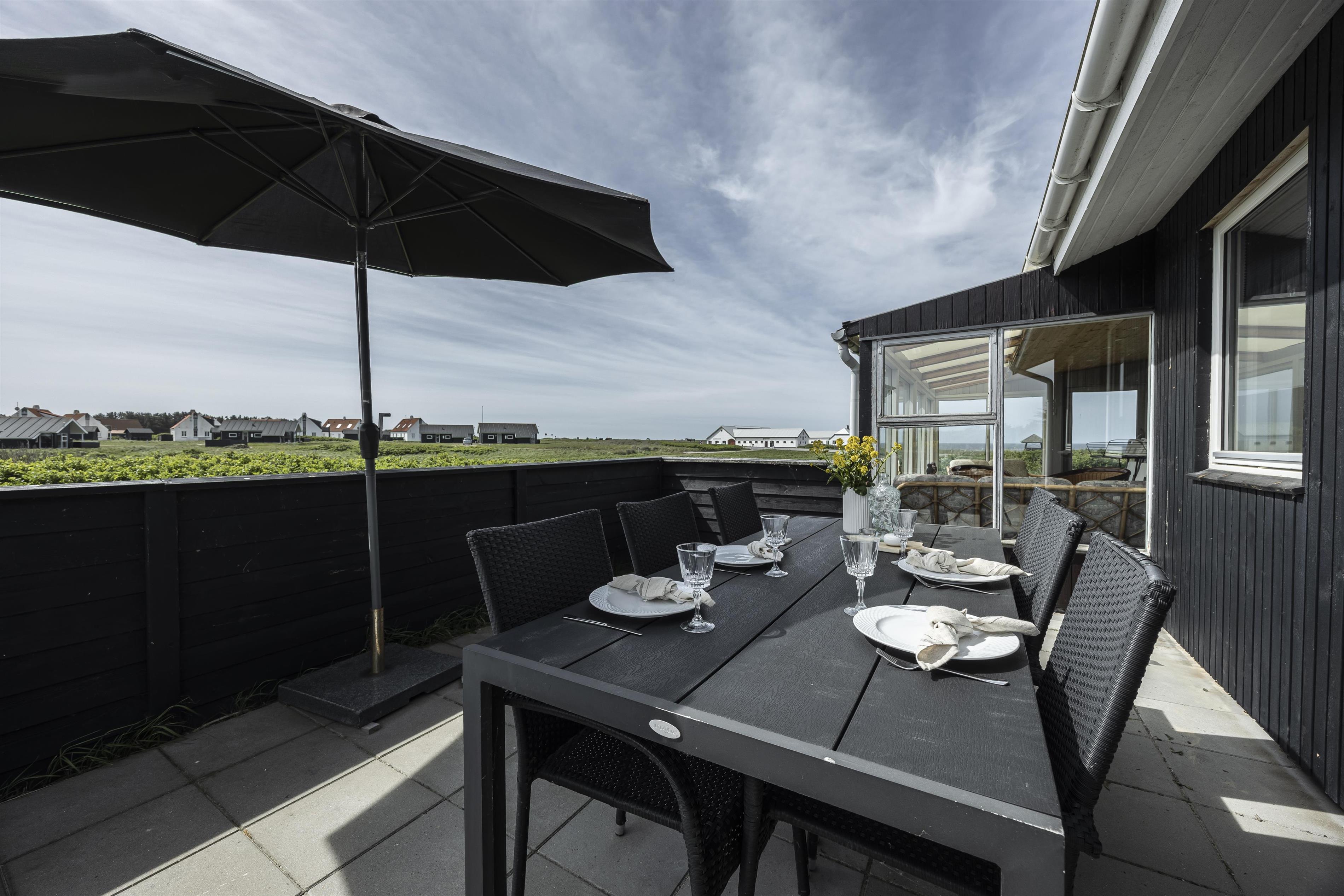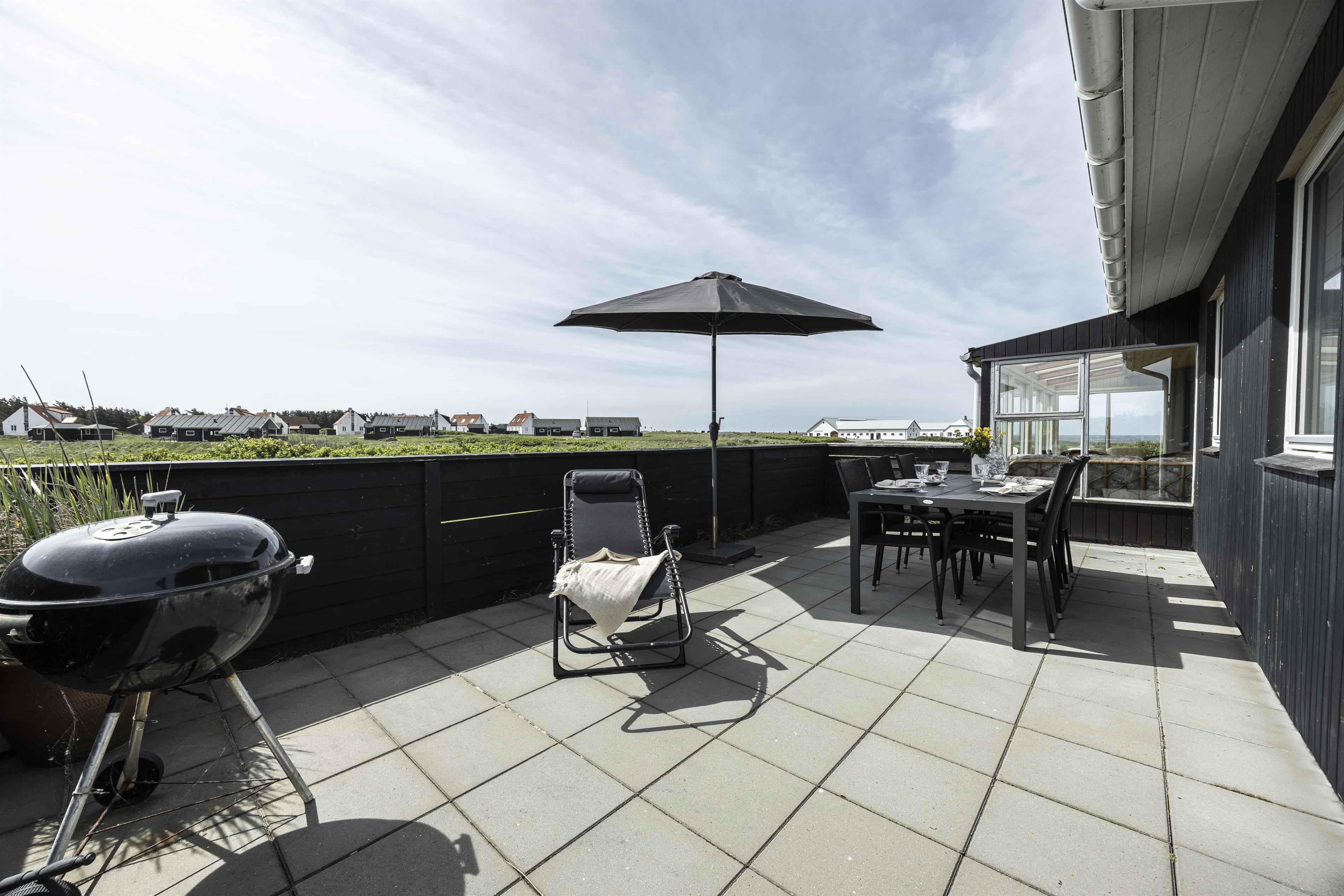 Fra huset har I direkte adgang til en dejlig afskærmet terrasse, hvor I kan grille et dejligt måltid, som I nyde i ro og mag. Når solen går ned, skal I flytte hen foran huset, hvor I kan følge med i solnedgangen fra 1. parket - foran jer har i "Solnedgangspladsen", hvor mange samles om det flotte syn, og om sommeren kan I opleve at solen bliver spillet ned af en lokal beboer på et blæseinstrument.