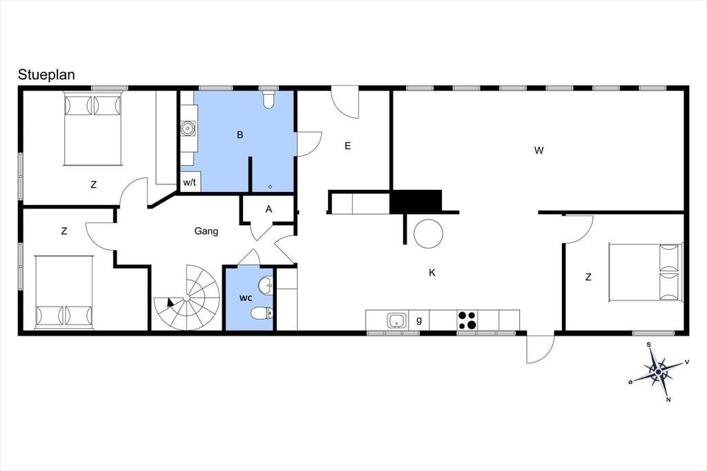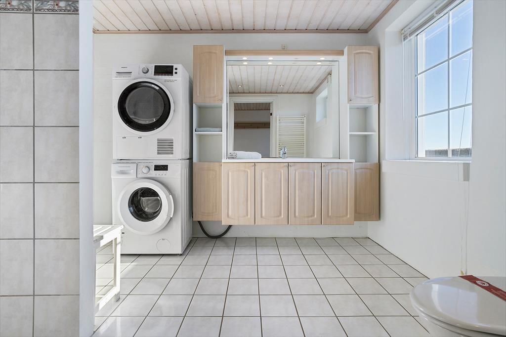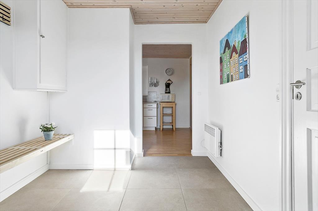 Huset er dejligt lyst og funktionelt med plads til op til 8 personer. Entréen er på husets sydvendte side, og her træder du ind i en fin entre med adgang til det store badeværelse, hvor der også er vaskemaskine og tørretumbler.