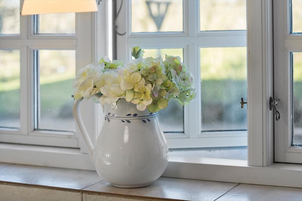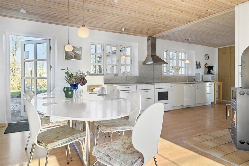 Når du træder videre ind i køkken/alrummet, finder du god plads til at tilberede alle måltider, og her er vinduer og en terrassedør ud til haven. Når vejret tillader det, kan du let tage måltiderne med udenfor på terrassen. I forlængelse af køkkenet er spisebordspladsen, hvor I også kan samle jer om måltiderne.