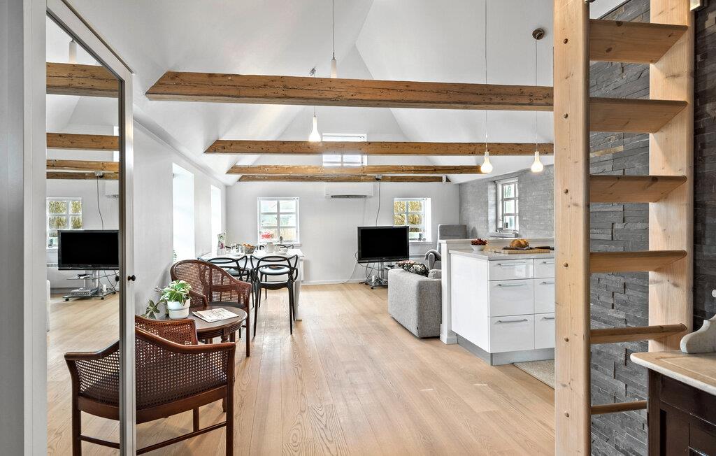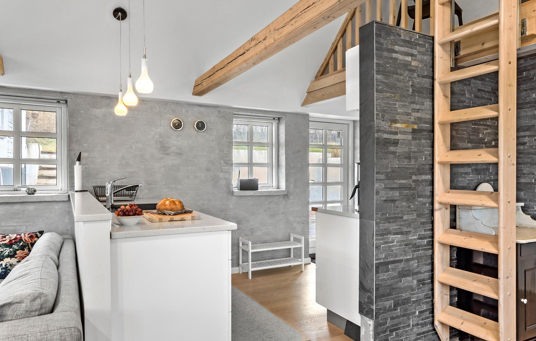 Hvis I er på udkig efter en særligt hyggelig bolig til årets ferie med den lille familie, er dette indbydende stråtagshus lidt nord for Faaborg det helt rette valg. Indretningen fremtræder virkelig nydeligt med højt til loftet, synligt bindingsværk og et åbent boligkoncept, så kokkene kan kræse om livretterne i det veludstyrede køkken, mens andre daser med en god bog i sofaen. Nyd godt af det vellykkede samspil mellem rustikke indretningselementer og moderne faciliteter, der gør det nemt at sænke skuldrene og hygge jer med det samme, I ankommer.
