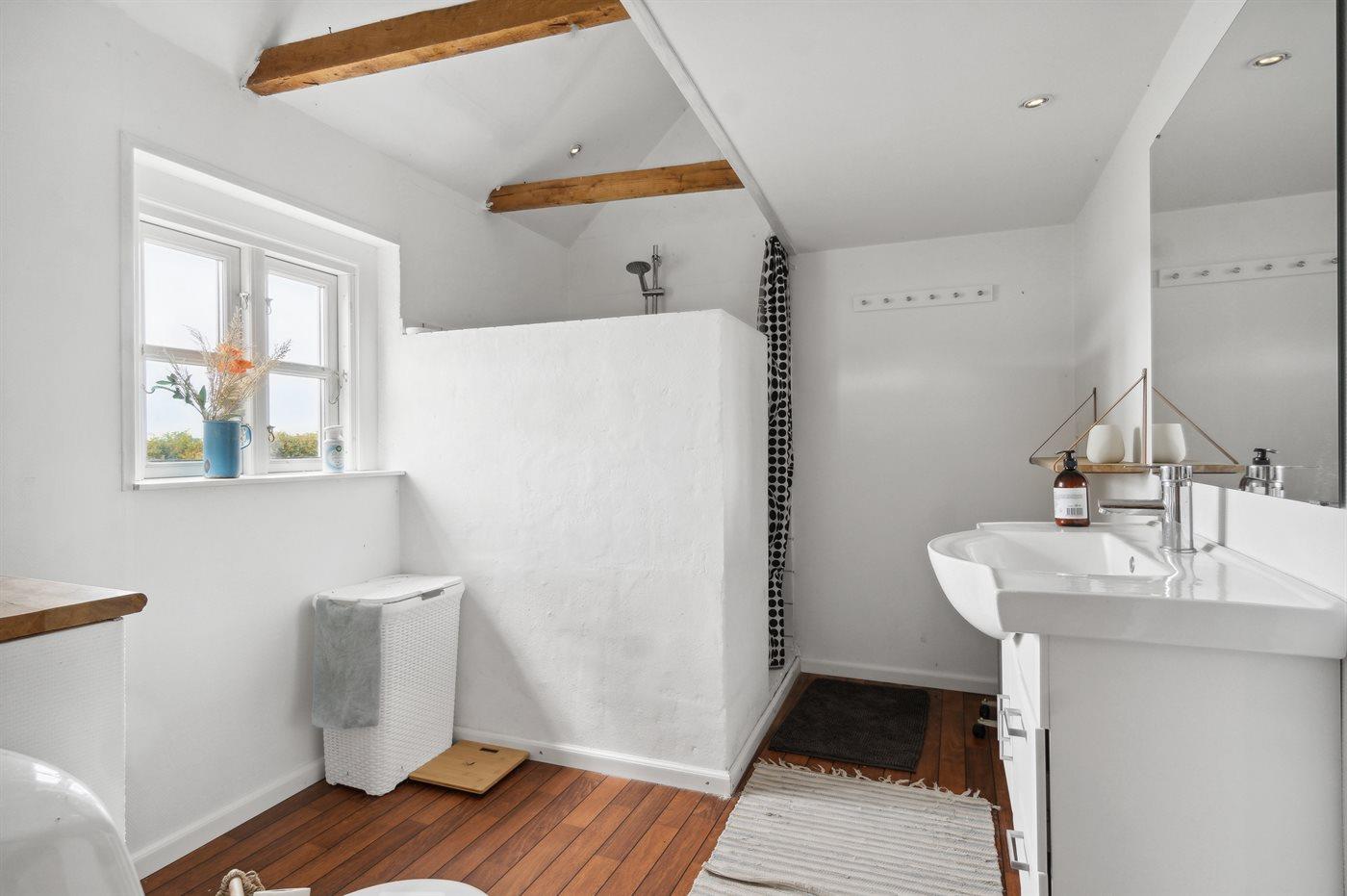 Der er 1 badeværelse med bruseniche og 2 toiletter, heraf 1 gæstetoilet.