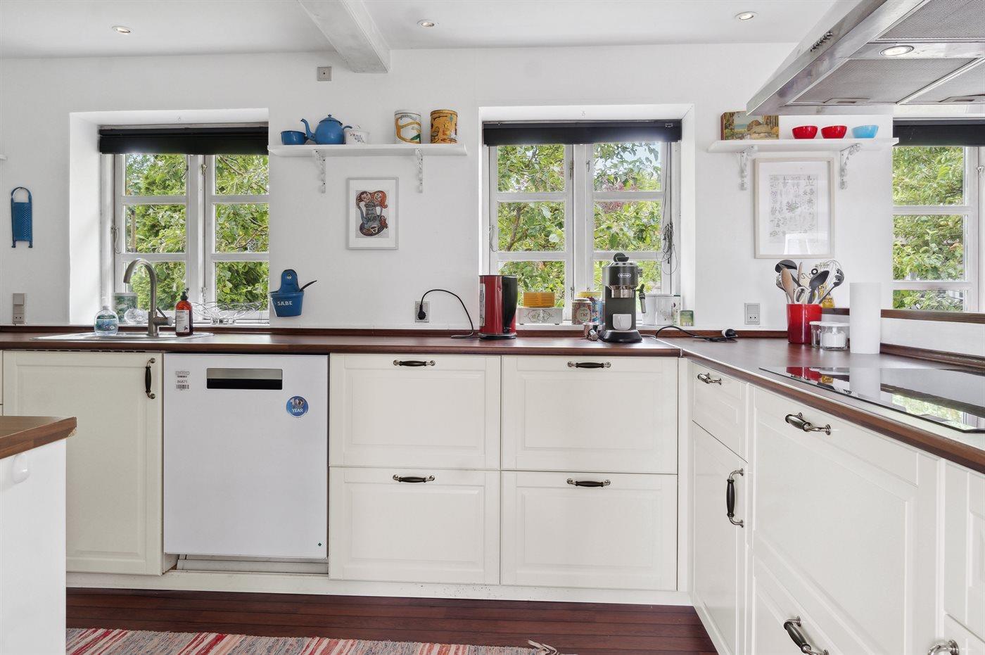 Køkkenet er udstyret med 1 køleskab. Der er 4 induktionskogeplader, varmluftovn, mikrobølgeovn samt opvaskemaskine.