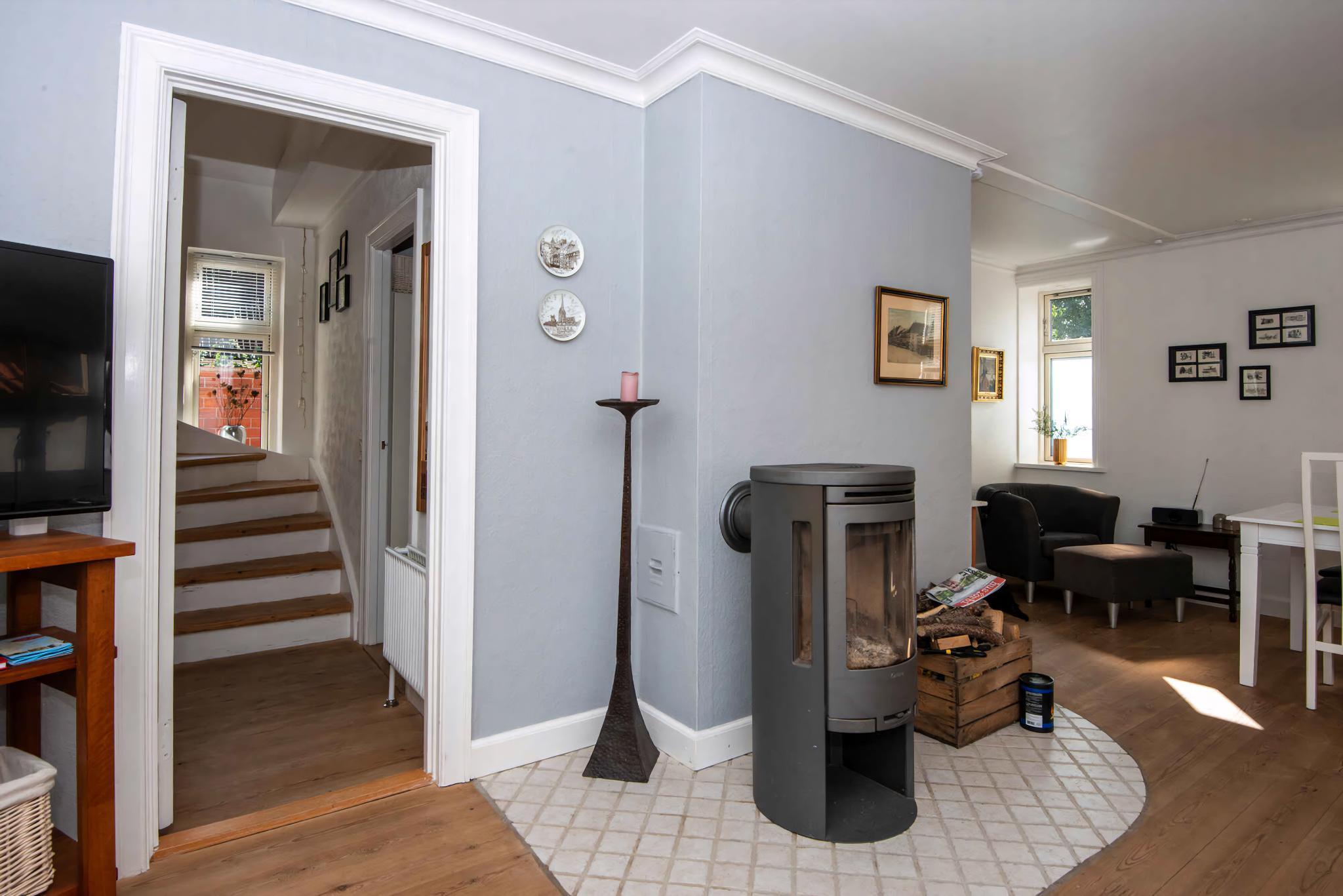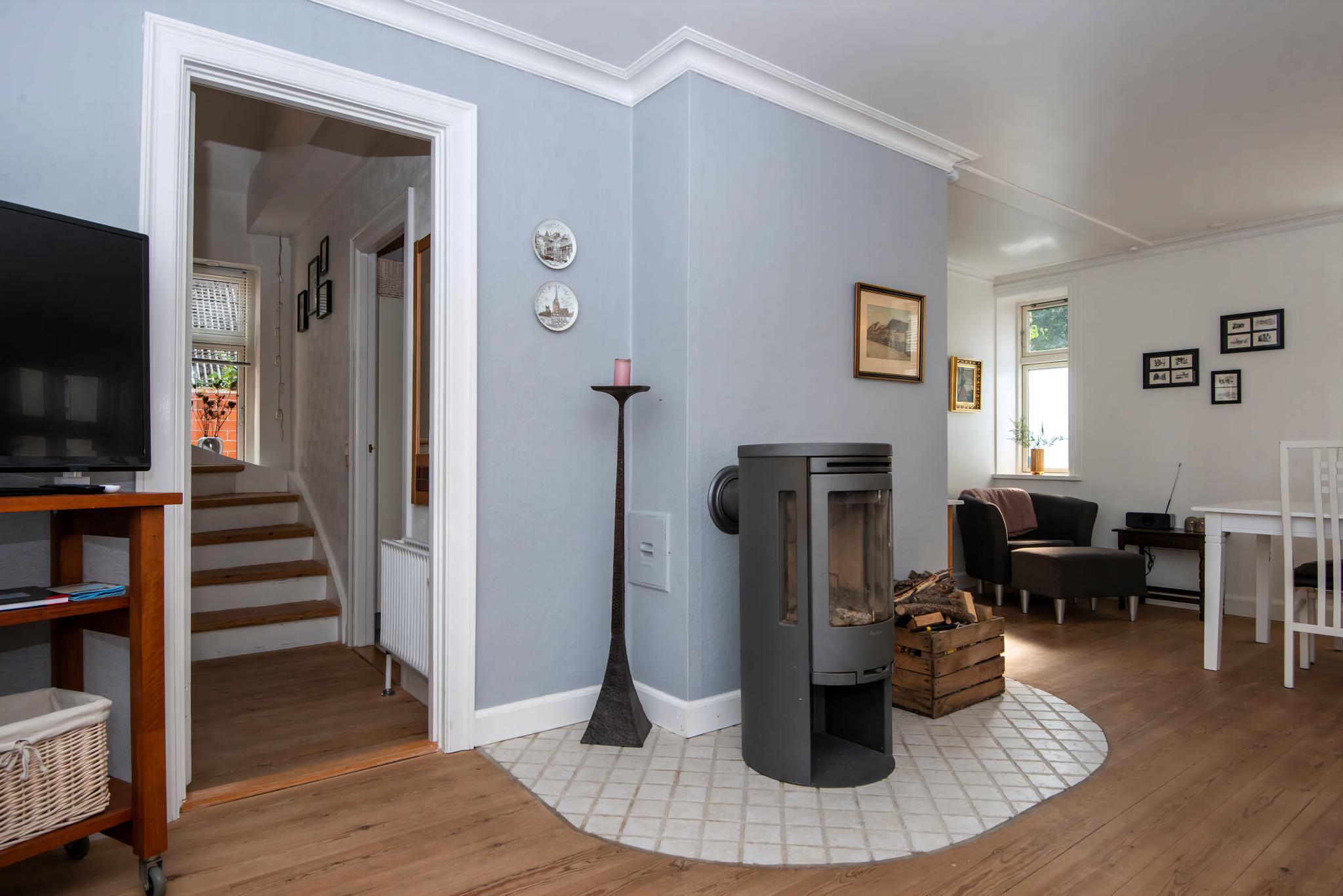 Hyggelig centralt byhus, modaniseret/istandsat med bl.a afhøvlede gulve og hyggelig gårdhave med havemøber og grill. Stueplan: Entre med trappe til 1 sal. Stue med brændeovn. Spiseplads, Køkken med køleskab(m/ fryser), Baggang med udgang til gårdhaven. Badeværelse med toilet, håndvask og bruser. 1 sal er indrettet med gang med alkove med daybed, 2 værelser, 1 værelse med dobbeltseng (140 x 200 cm), 1 værelse med dobbeltseng (160 x200 cm) og daybed. Internet og TV (Danske, Tyske og Svenske programmer samt TV2play ). Internet TV, Internet Radio. Udendørs kan I nyde en dejlig flisebelagt, lukket gårdhave, der kan agere jeres solrige samlingssted i de varme sommermåneder ( med grill) . Grunden er lukket med gitterport. Desuden baghus med vaskemaskine og tørrestativ, samt en opvaskemaskine. Lejen er inklusiv varmeforbrug (fjernvarme), hvorimod vand og El afregnes efter forbrug. Brænde/briketter til brændeovnen skal man selv anskaffe. Central beliggende, hvilket både kombinerer byliv og skøn natur. Fra huset kan I nemt gå til alle byens fristelser, og her finder I et bredt udvalg af butikker, indkøbsmuligheder og spisesteder. 190 meter fra hoveddøren finder i den stemningsfyldte havn, som byder op til et utal af gode gåture langs vandet. 650 meter fra stationen som sikre jer en hurtig vej videre, mens grønne gå-, løbe- og mountainbiketure kan nydes i de nærtliggende skovområder. Svømmehal (1 km) og 3,3 km til stranden (Hestehoved strand) med danmarks længste badebro (sauna og badehus). Postbåden sejler hver dag om sommeren ud til forskellige øer og strande. ( postbåden ligger for enden af tolderensstrædet..) Husk badetøj og madkurven. 4 km til Golfbanen. 26 km til Knuthenborg Safari Park. 20 km til Dodekalitten. 10 km Frederiksdal Kirsebærvin/ og Frederiksdal Gods 15 km Reventlow-Museet Pederstrup 55 km Fuglsang Kunstmuseum 30 km Rødby, Femern Bælt-tunnelen besøg udstillingscenteret. Huset er et ikke ryger hus, Rygning er ikke tilladt til info: Huset udlejes max. 4 uger ad gangen, hvorefter der skal rengøres. ( 1 dag til rengøring ) Der må ikke flyttes permanent adresse til lejemålet. ( Aviser/ Blade må gerne omadresseres) Parkering : Der er gratis parkering lige over huset, samt Privat gratis parkering (~150 m fra huset). Vand aflæses ved ankomst og afrejse og sendes via mail til kundeservice@campaya.dk (vandmåleren er i varmerummet, for yderligere info se velkomstmappen)