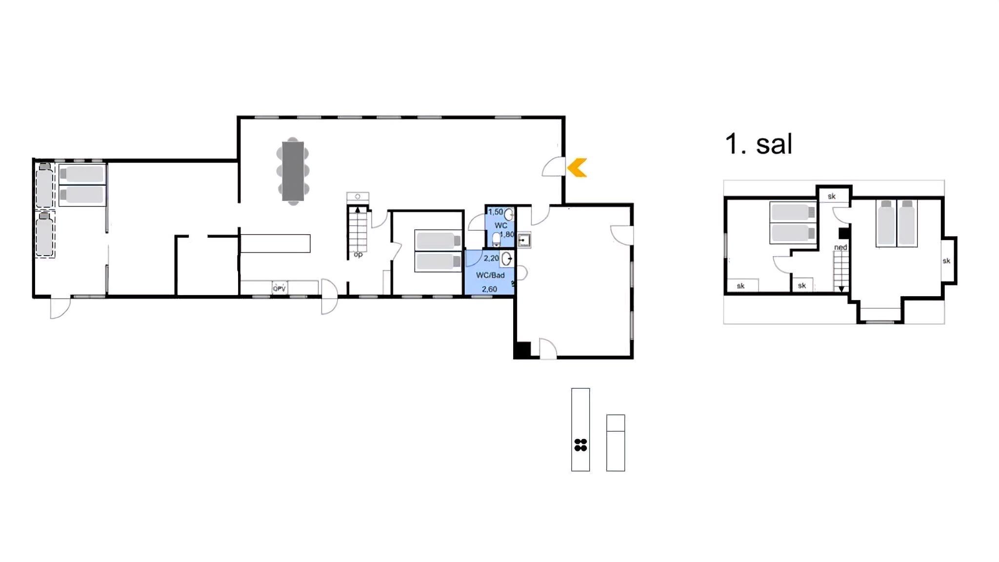I huset på landet kan du og familien få lov at boltre jer som I har lyst! Her er rigeligt plads til sjove aktiviteter, kreativ udfoldelse og masser af afslapning. Lav et bål i haven (brænde findes på stedet, og haven er indhegnet ifht husdyr) eller slip dig selv løs i kreativitetsrummet som indeholder alt fra forskellige brætspil til spillekort og terninger. Der er også fitnessudstyr, karaokeanlæg og male/tegnegrej. Du kan også tilberede din middag i udekøkkenet på en varm sommeraften eller gå en tur i den spændende have. Huset på landet i Nakskov er en perfekt oase for dem, der søger en fredfyldt og rummelig feriebolig. Med sine 200 m2 tilbyder huset komfortabel indkvartering til op til 8 personer, og 2 ekstra madrasser i den yderste stue kan også bruges som sovepladser. Huset er indrettet med en varm og indbydende atmosfære og de store vinduer fylder rummene med naturligt lys. Soveværelserne er rummelige og komfortabelt møblerede med hver med sin egen unikke stil, og der er rigelig plads til opbevaring. De store senge sikrer en god nats søvn efter en dag fyldt med aktiviteter og udflugter. Køkkenet indenfor er fuldt udstyret med moderne apparater og alt det nødvendige køkkenudstyr. Spisestuen er perfekt til hyggelige middage med familie og venner, mens den tilstødende stue byder på bløde sofaer og et sted at slappe af og nyde hinandens selskab. Udenfor finder I den store spændende have hvor børnene kan gå på eventyr i lysthuset i ’skoven’, og de voksne kan finde et ugeneret sted at nyde en kop kaffe. Der er også en dejlig terrasse, perfekt til grillmiddage. Der findes riste til på grill over bål, og der er også grill i udekøkkenet under overdække. Beliggenheden i Nakskov giver nem adgang til områdets naturskønne omgivelser og seværdigheder, se gerne https://www.visitlolland-falster.dk Uanset om I ønsker at udforske de lokale strande, tage på vandreture i naturen eller besøge charmerende landsbyer i nærheden, er dette sommerhus det ideelle udgangspunkt for jeres ferieeventyr.