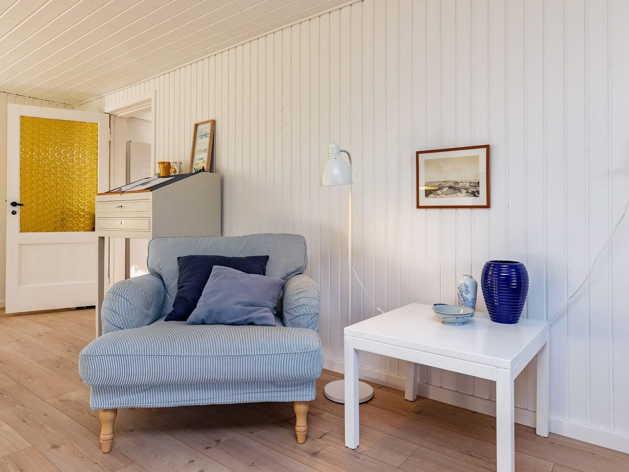Den lille afdeling har lys stue med brændeovn og lille åbent køkken samt lænestole/sofa, som kan slås ud til sovesofa. Der er reol med bøger, spil og tegneting. Direkte udgang til to terrasser mod syd og øst. Stort soveværelse med to enkeltsenge samt et badeværelse med vaskemaskine.