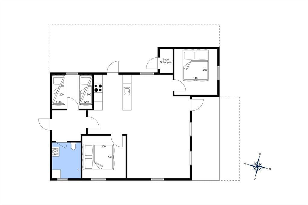 Træd indenfor i et sommerhus, hvor lyset strømmer ind gennem vinduerne og skaber en indbydende og venlig stemning. Den nordiske indretningsstil præger rummene, hvor lyse træsorter og enkle, elegante møbler gør det let at føle sig hjemme. Stuen og køkkenet ligger i åben forbindelse, så du kan lave mad, mens familien hygger sig med kortspil eller en god film i sofahjørnet. Sommerhuset er ideelt til både afslapning og samvær, hvad enten du foretrækker at læse en bog med udsigt til haven eller samle familien om en god middag efter en dag ved stranden.