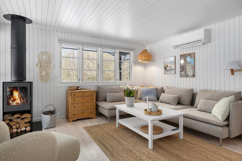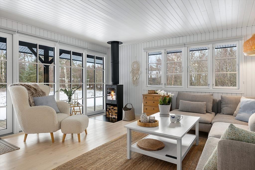 Når du træder indenfor, møder du et sommerhus, der i 2025 er blevet totalrenoveret med stor omtanke for både komfort og den klassiske sommerhusstemning. De lyse materialer, varme trædetaljer og den nordiske stil skaber en let og behagelig atmosfære, som gør det nemt at finde ro. I den hyggelige stue kan du synke ned i sofaen, mens flammerne knitrer i den nye brændeovn – en perfekt ramme om langsomme morgener eller stille aftener efter en dag fyldt med oplevelser. Køkkenet fremstår moderne og indbydende, så du kan tilberede alt fra morgenpandekager til aftensmad i fælles selskab. Badeværelset er flot opdateret og giver en rar start på dagen, og annekset udenfor giver ekstra muligheder for at trække sig tilbage til en fredelig oase. Her kan alle finde deres foretrukne hjørne til afslapning, samvær og feriehygge.