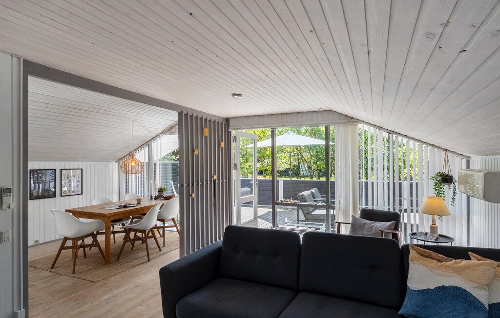 Velkommen til dette lyse og stilfulde sommerhus, hvor I kan slappe af med familien og sætte hverdagen på pause. Fremstil lækre retter med friske råvarer fra gårdbutikken, tag jer tid til hyggelige måltider med udsigt over det grønne, nyd afslappende øjeblikke i husets sauna, og sæt jer til rette med en film på den behagelige sofa om aftenen.
