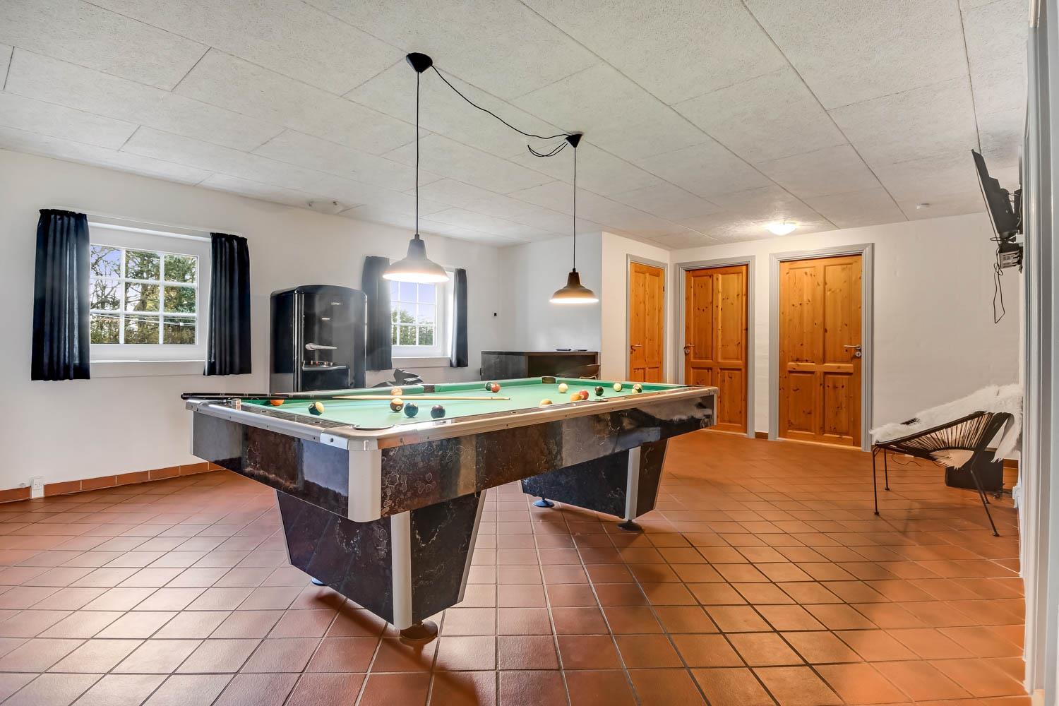 Fra opholdsstuen er der udgang til en dejlig terrasse med havemøbler, solvogne samt udsigt over fjorden. Nyd også den store gårdsplads eller gå på opdagelse på den over 14.700 m2 store grund hvor der er rig mulighed for boldspil, rigt dyreliv eller måske en god gemmeleg. Grunden grænser helt ned til fjorden. Dette poolhus er idyllisk beliggende i rolige og unikke omgivelser, og indenfor for få kilometer ligger 3 Put and Take fiskesøer. Kun ca 4 km til Bøvlingbjerg hvor de daglige indkøb nemt kan ordnes. En perle som indbyder til total ro og afstresning i luksuriøse omgivelser og tid til samvær med både familie og venner.