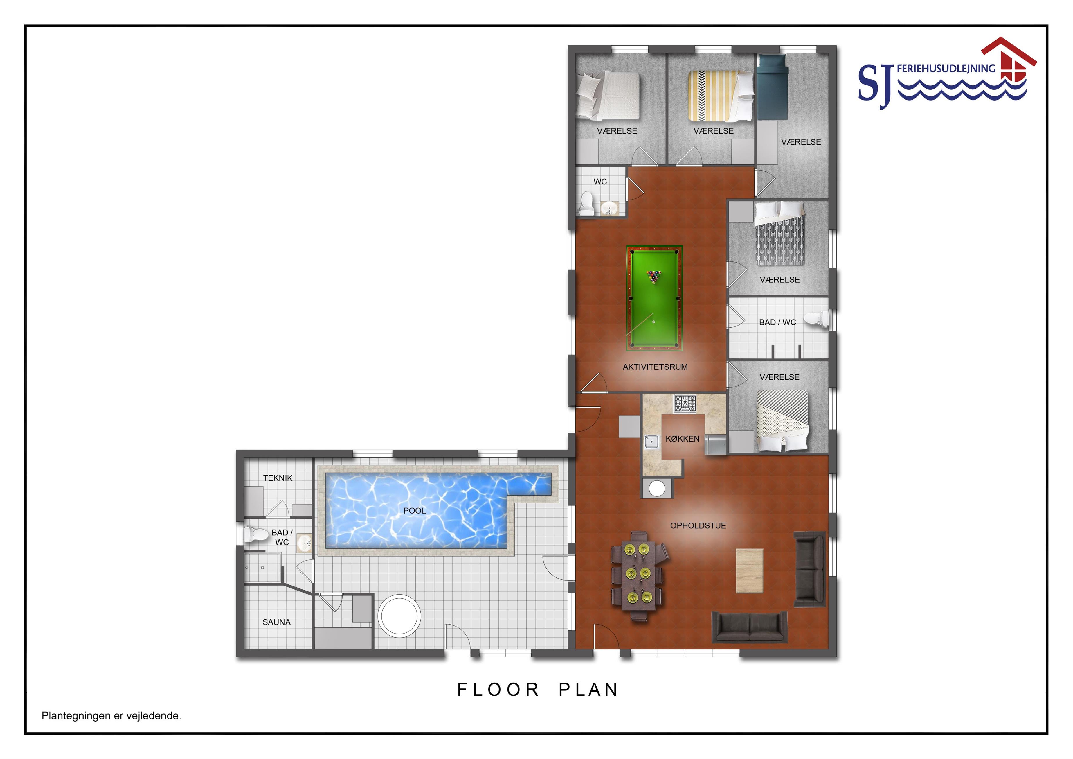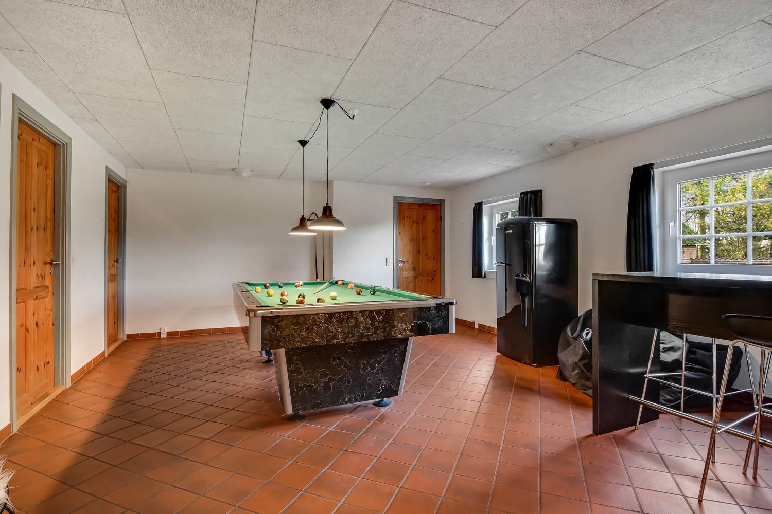 Dejligt, idyllisk, stråtækt stenferiehus med 5 soverum (1 dobbeltseng, 1 dobbeltseng, 1 dobbeltseng, 1 dobbeltseng, 2 enkeltsenge) med nye senge. Huset er 255 m2, hvilket gør, at der er god plads, når vennerne eller familien skal samles. Rummelig opholdsstue med flotte, nye lædermøbler, sækkestole, spiseplads, stort fladskærms-TV med danske og tyske kanaler, Bluetooth adgang til TV og Højttalere, hyggelig brændeovn, klinkegulv og store vindues partier med udsigt til fjorden. Veludstyret køkkenhjørne med opvaskemaskine, mikroovn, emhætte, keramisk komfur, køleskab med fryseboks og klinkegulv. Fra stuen er der adgang til pool afdelingen med en stor pool, spabad samt adgang til et badeværelse med bruser, toilet og håndvask samt adgang til en dejlig sauna til de kolde dage. Derudover er der endnu 2 toiletter hvor det ene er med toilet, brus, vaskemaskine og tørretumbler. Alle toiletter og hele pool området har klinkegulv med gulvvarme. Huset er indrettet med et stort aktivitetsrum med lille bar, amerikaner køleskab, billard, og ekstra TV, og det giver virkelig mulighed for mange hyggelige timer. Har man el-bil eller en Plug-In hybrid, så er der til huset et ladestik. 1 husdyr tilladt. Ikke ryger hus. Huset lejes ikke ud til ungdomsgrupper. Depositum vintersæson kr. 7000 og sommersæson kr. 3500