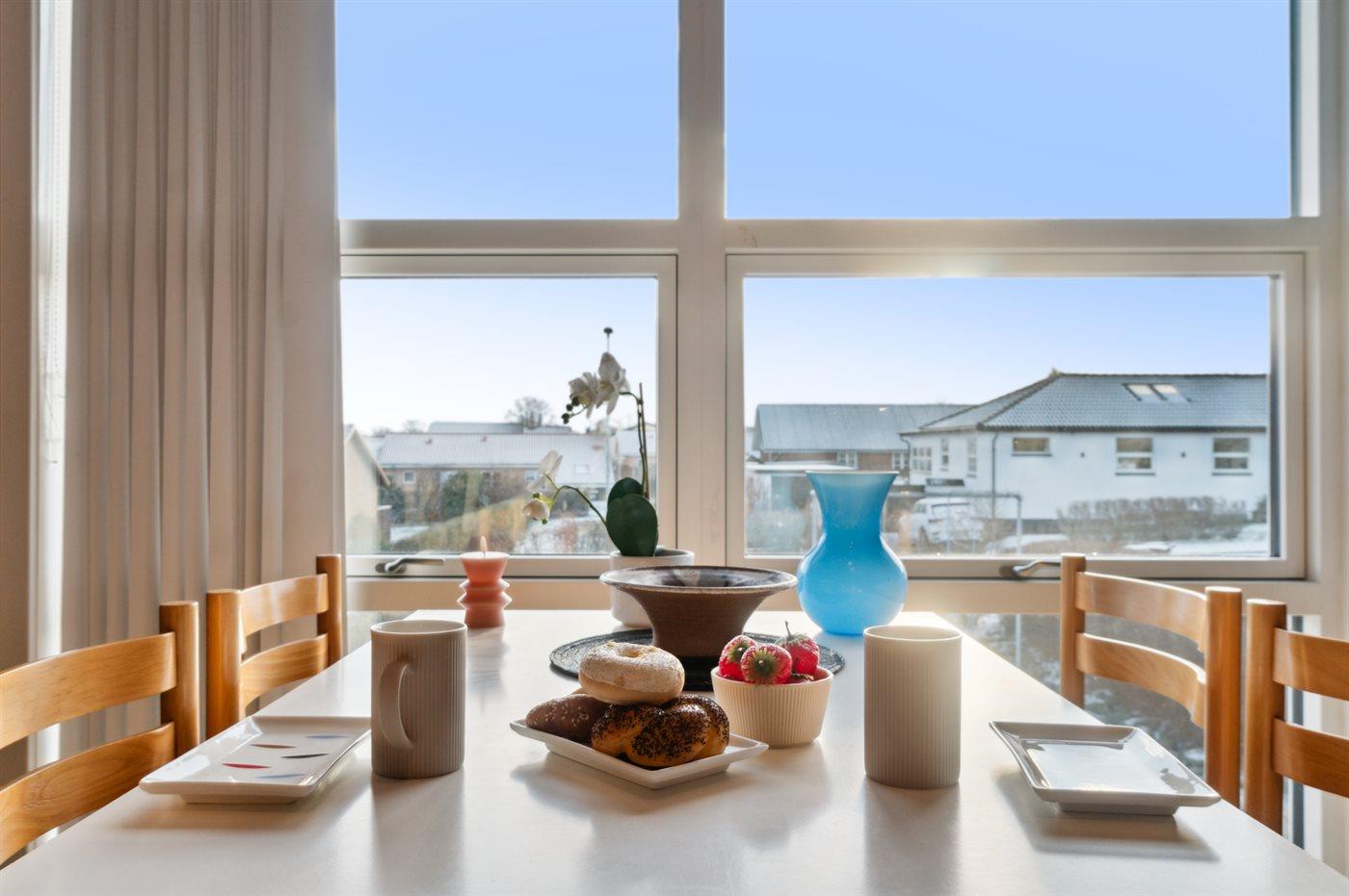 Til lejligheden hører egen haveafdeling med terrasse, havemøbler og grill.