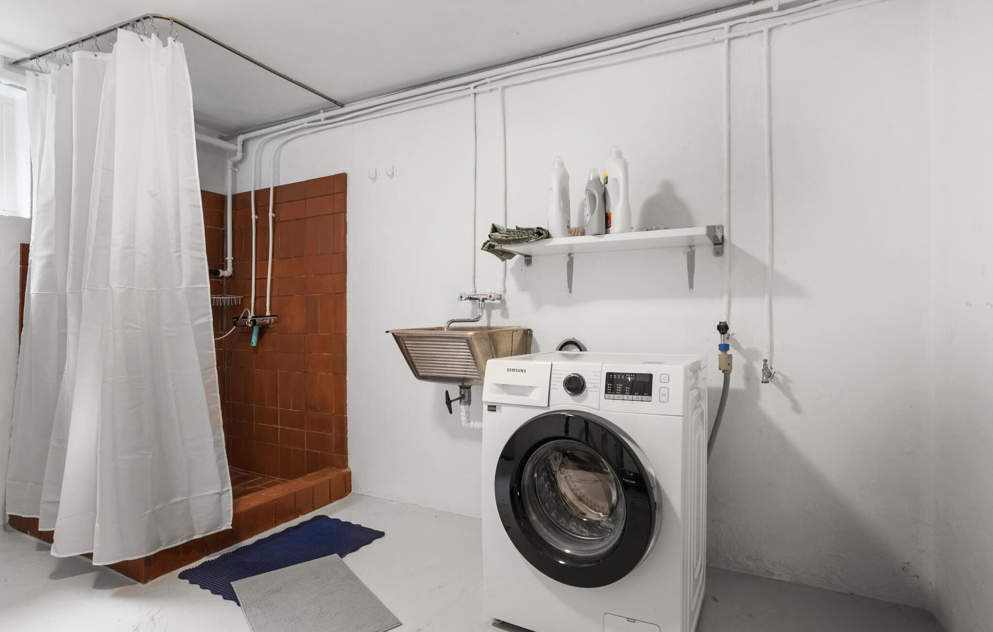 På Bornholms østkyst finder I dette indbydende og rummelige murstenshus, der danner rammen om en fantastisk ferie med familien. Huset er flot indrettet, og særligt i den rummelige stue venter jer mange gode stunder med måltider og brætspil ved spisebordet og ren afslapning i de bløde sofaer. For jer, der gerne vil holde vaskebrættet ved lige på ferien, er der mulighed for at træne godt igennem med fitness-udstyret, inden I går i kast med madlavningen i det veludstyrede køkken.