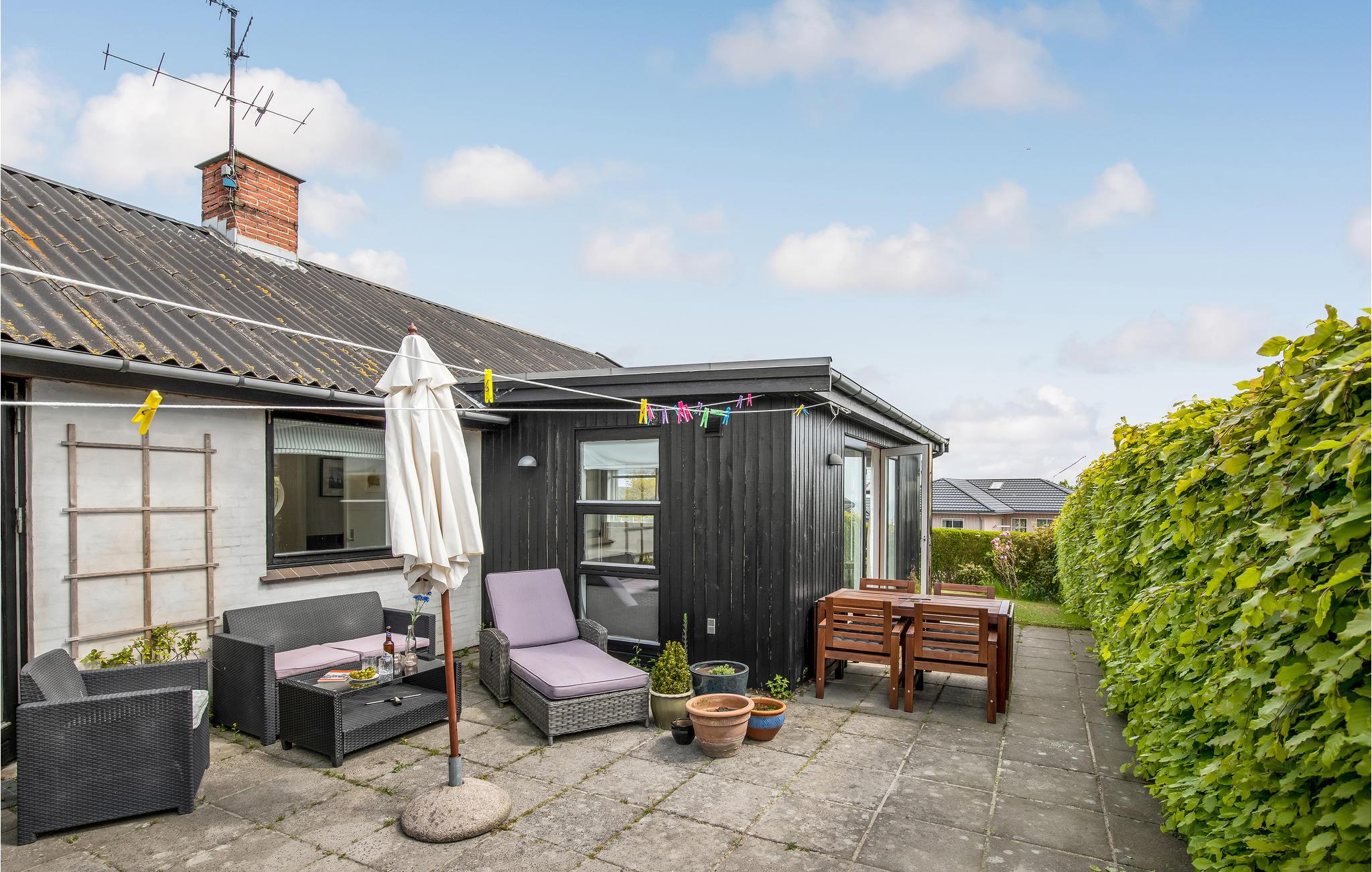 På terrassen står der loungemøbler, hvor I kan slappe af og nyde solen. Der er også mulighed for at dække op til en lækker middag med familien. Børnene kan tumle på græsplænen eller lægge sig til rette i hængekøjen.