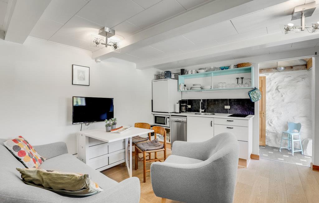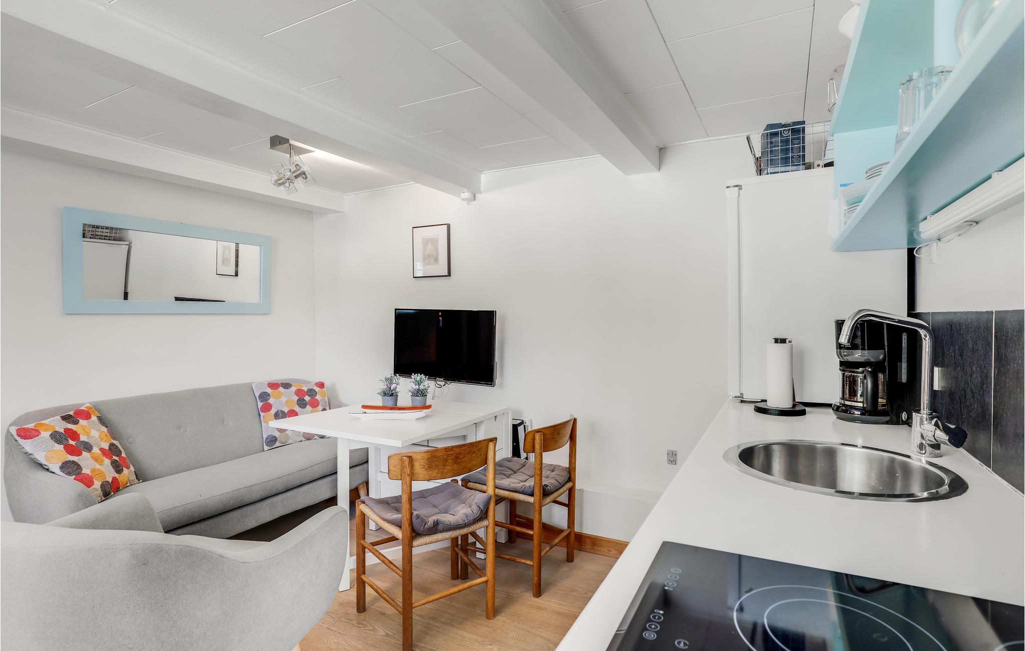 Boligen er lækkert og charmerende indrettet, og så er pladsen udnyttet på bedste vis til en familie med to voksne og et barn. Glæd jer til det hyggelige opholdsrum, hvor køkkenet også er placeret. Her kan I slappe af efter en lang dag med byvandring og måske tænde op i brændeovnen, hvis vejret er lidt køligt.