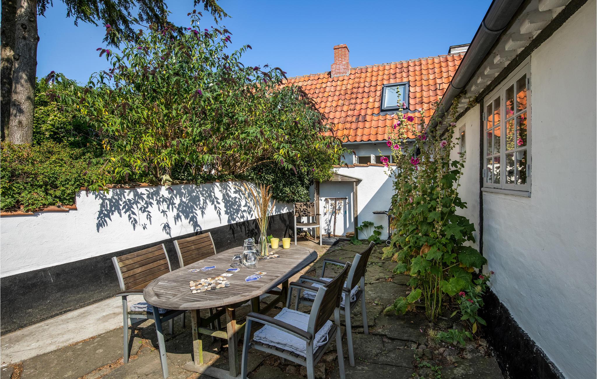 Fra stuen er der udgang til en skøn, lille gårdhave med en snert af sydlandsk stemning.