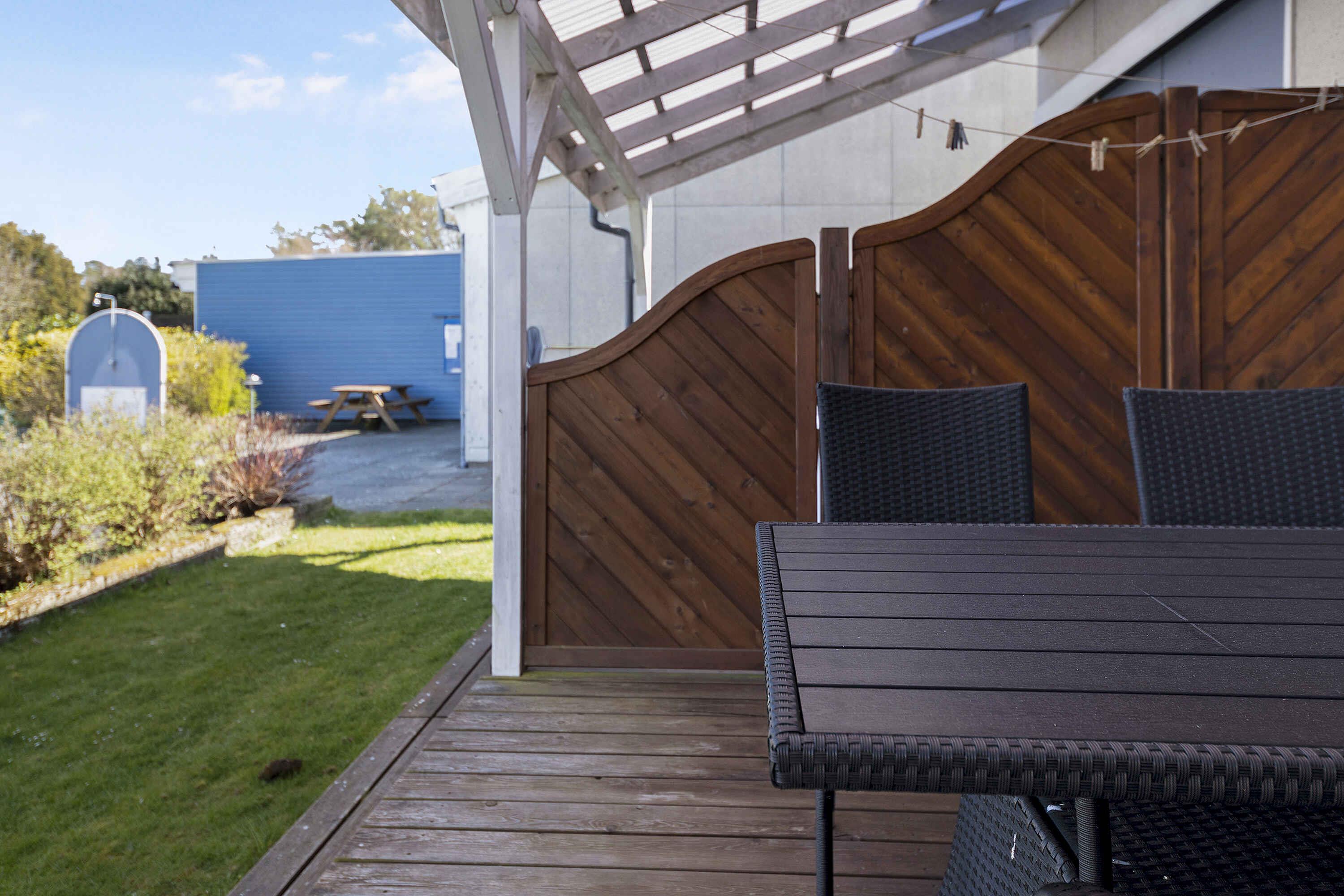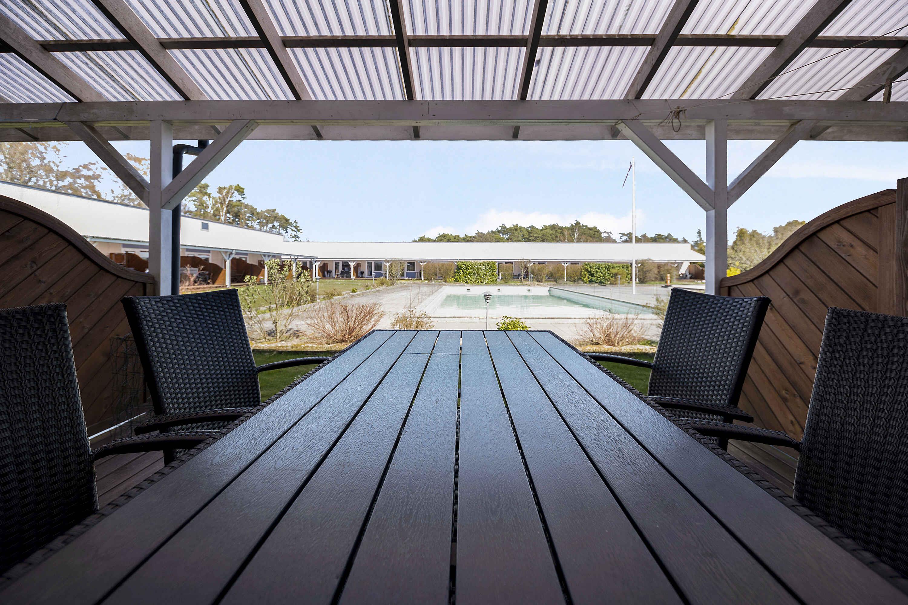 Hyggelig ferielejlighed med terrasse og adgang til opvarmede pools nær Dueodde strand.