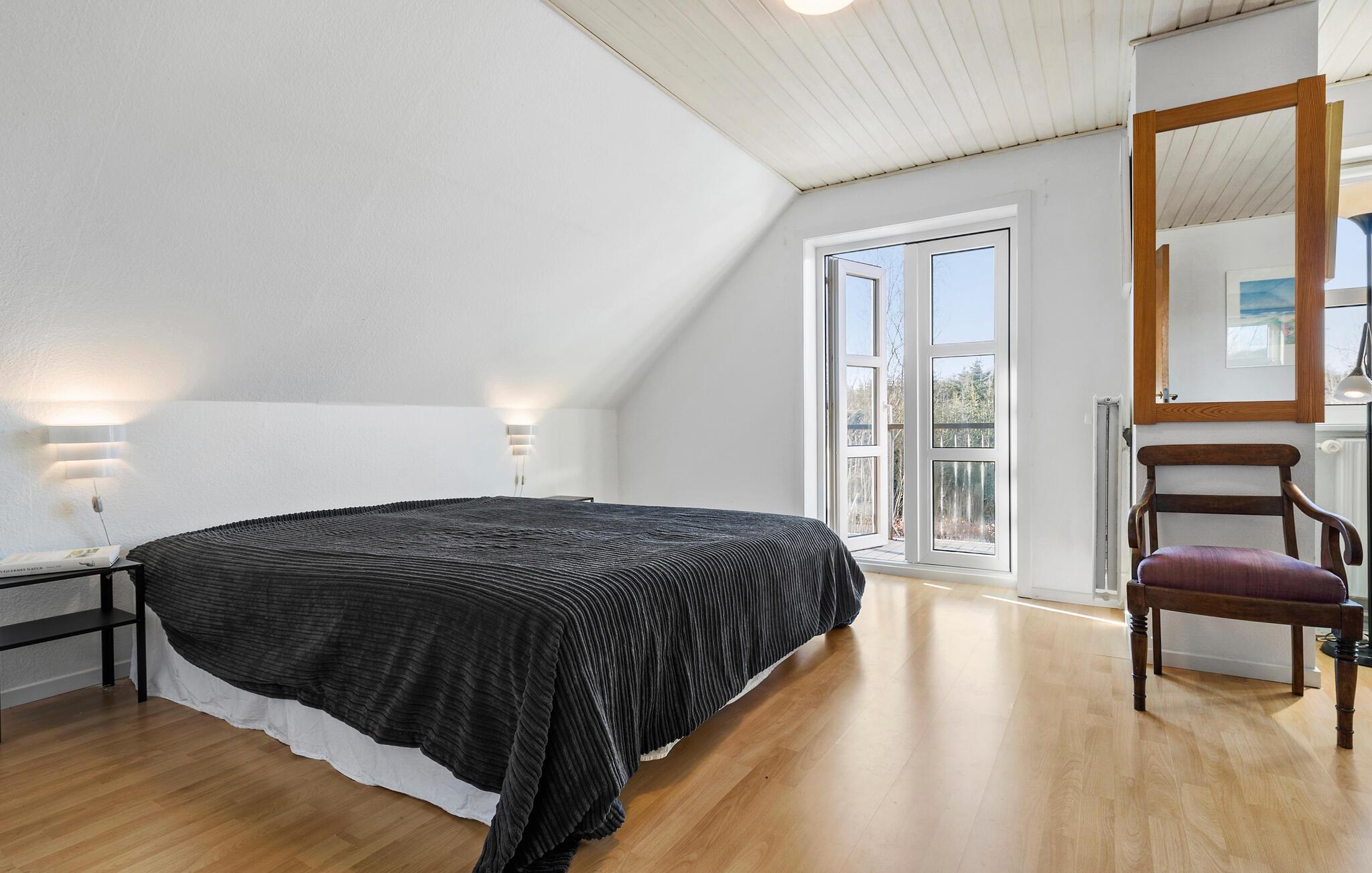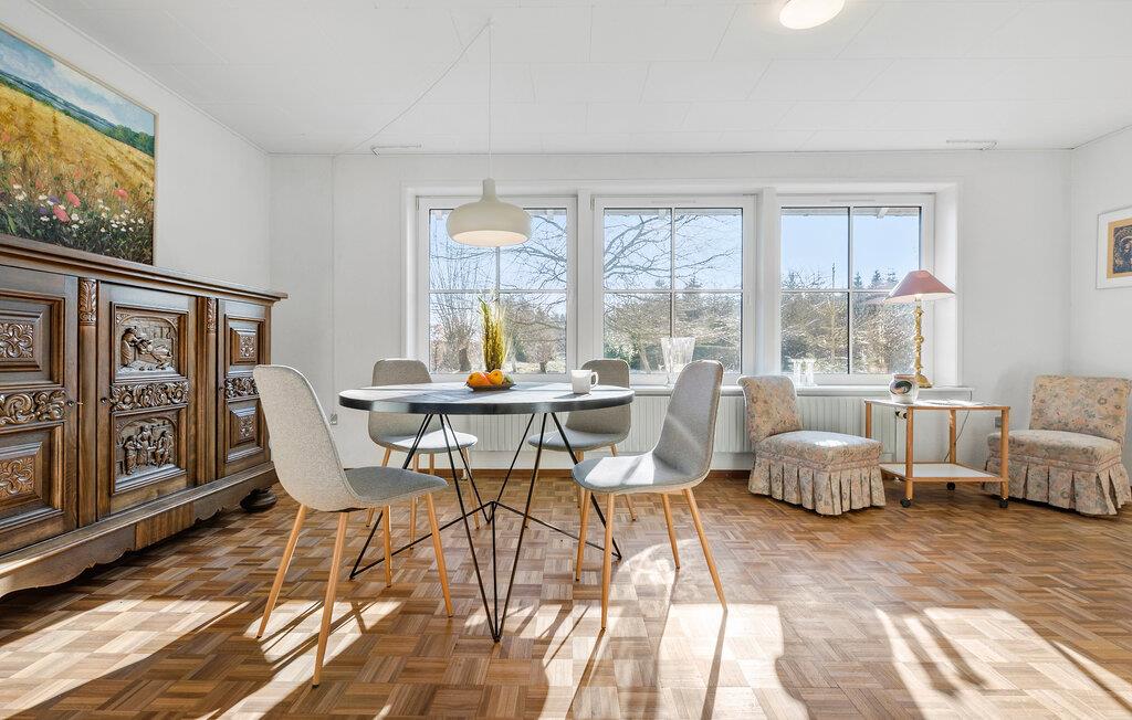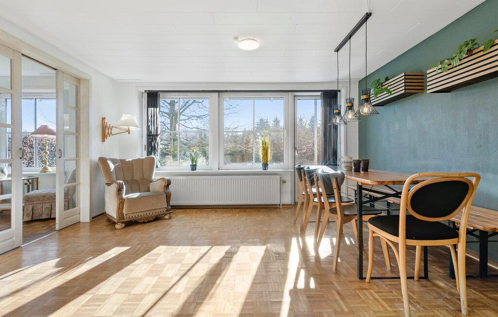 Velkommen til denne skønne oase midt i et malerisk landskab med skove og søer. I dette lyse og rummelige feriehus skaber åbne opholdsarealer med store vinduespartier og velvalgte indretningsløsninger en behagelig, atmosfære. Sammensæt lækre retter i det åbne køkken og nyd hyggelige aftener rundt om spisebordet i den hyggelige stue. Læn jer godt tilbage med en bog i en af ??de mange hyggekroge, forkæl jer selv med fredfyldte stunder i saunaen eller find brætspillene frem til en sjov spilleaften.