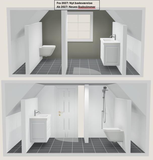 Centralt i stueetagen er også husets badeværelse, der har en fin størrelse og med en god brusekabine.