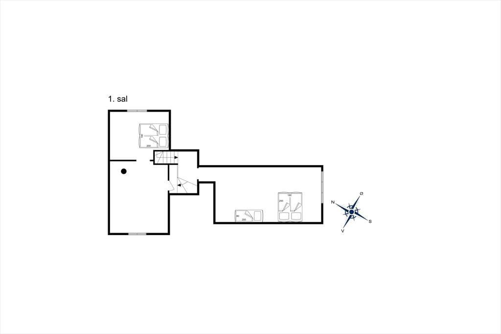 En trappe fra entréen fører op til 1. sal, hvor der er flere rum til overnatning og hygge.