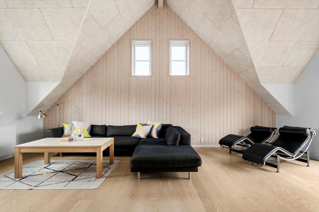 Ved huset er der desuden en god indkørsel med plads til flere biler, så praktikken er nemt klaret.