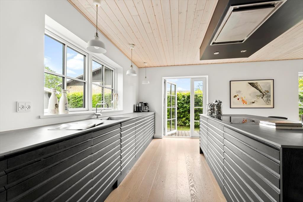 Det store, åbne opholdsrum med køkken og stue samler jer om dagens hyggelige øjeblikke – her kan I lave mad sammen, spille spil, slappe af i sofaen eller bare nyde feriens ro. Køkkenet er fuldt udstyret, så I nemt kan tilberede alt fra morgenmad på farten til lange sommeraftensmåltider.