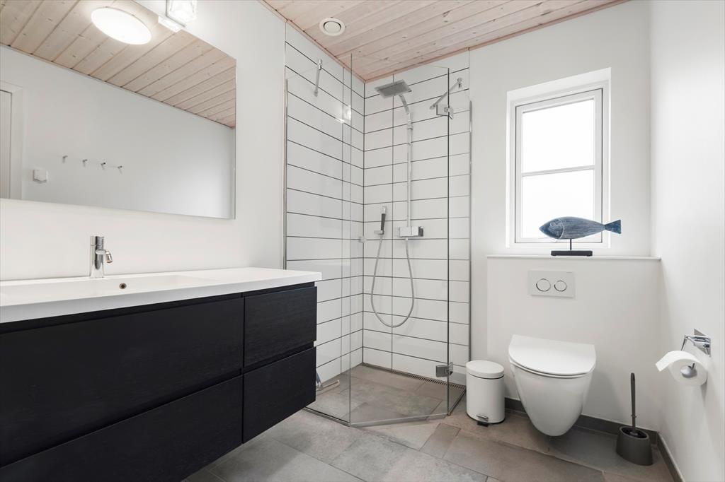 Efter en lang feriedag venter fire gode soveværelser – tre med to enkeltsenge og ét med dobbeltseng – så alle kan få en god nattesøvn. Med to badeværelser, vaskemaskine og tørretumbler er her også praktiske faciliteter, der gør ferien ekstra komfortabel.