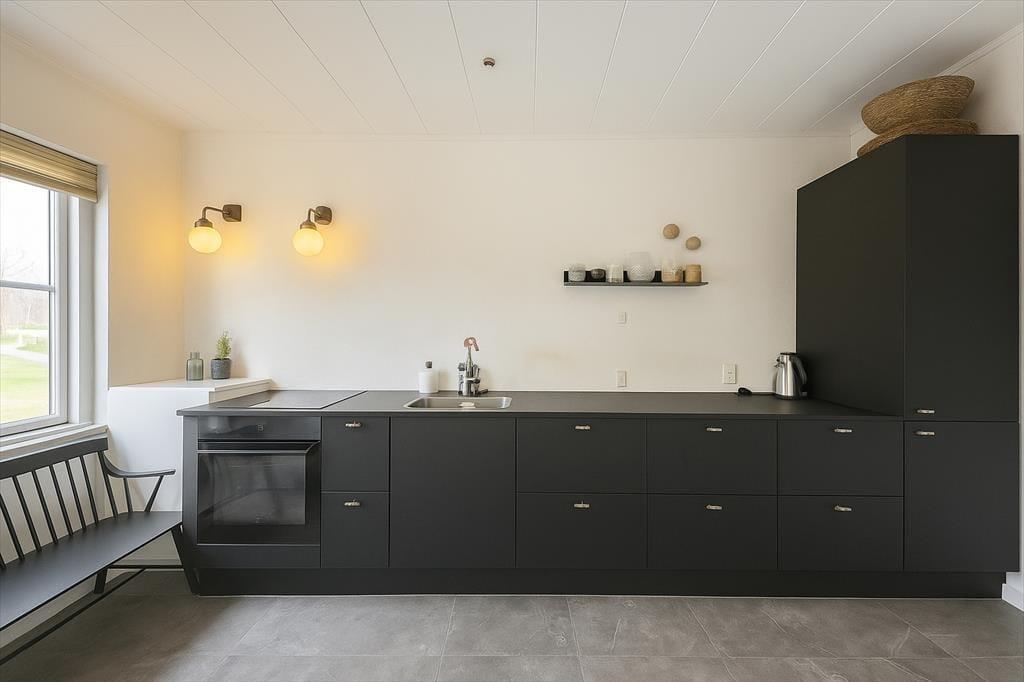 Det store, åbne opholdsrum samler jer om dagens hyggelige øjeblikke – her kan I spille spil, slappe af i sofaen eller bare nyde feriens ro. Køkkenet er fuldt udstyret, så I nemt kan tilberede alt fra morgenmad på farten til lange sommeraftensmåltider.