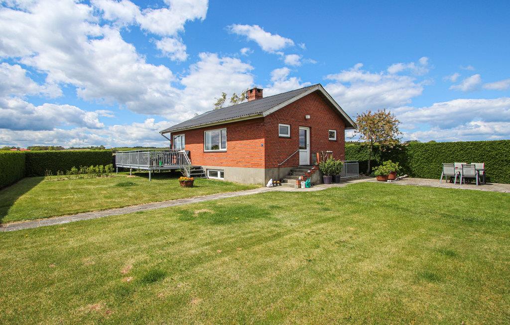 Dette attraktive murstenshus er velegnet til en afslappende ferie for to, hvor også jeres hund er velkommen. Nyd måltiderne i den hyggelige stue med udsigt til de omgivende enge og marker. I sofahjørnet kan I se film sammen og læne jer tilbage efter en aktiv dag. Brændeovnen sørger for varme og hyggelig stemningen på kølige aftener og fuldender oplevelsen af ro og velvære. Ude på den hævede terrasse kan I tilbringe mange hyggelige timer i det fri. Her kan I nyde morgenmaden med udsigt over markerne og slikke sol eller læse en god bog om eftermiddagen. I har blot en kortere gåtur huset ned til stranden, der lokker med badeture og gåture langs vandet.