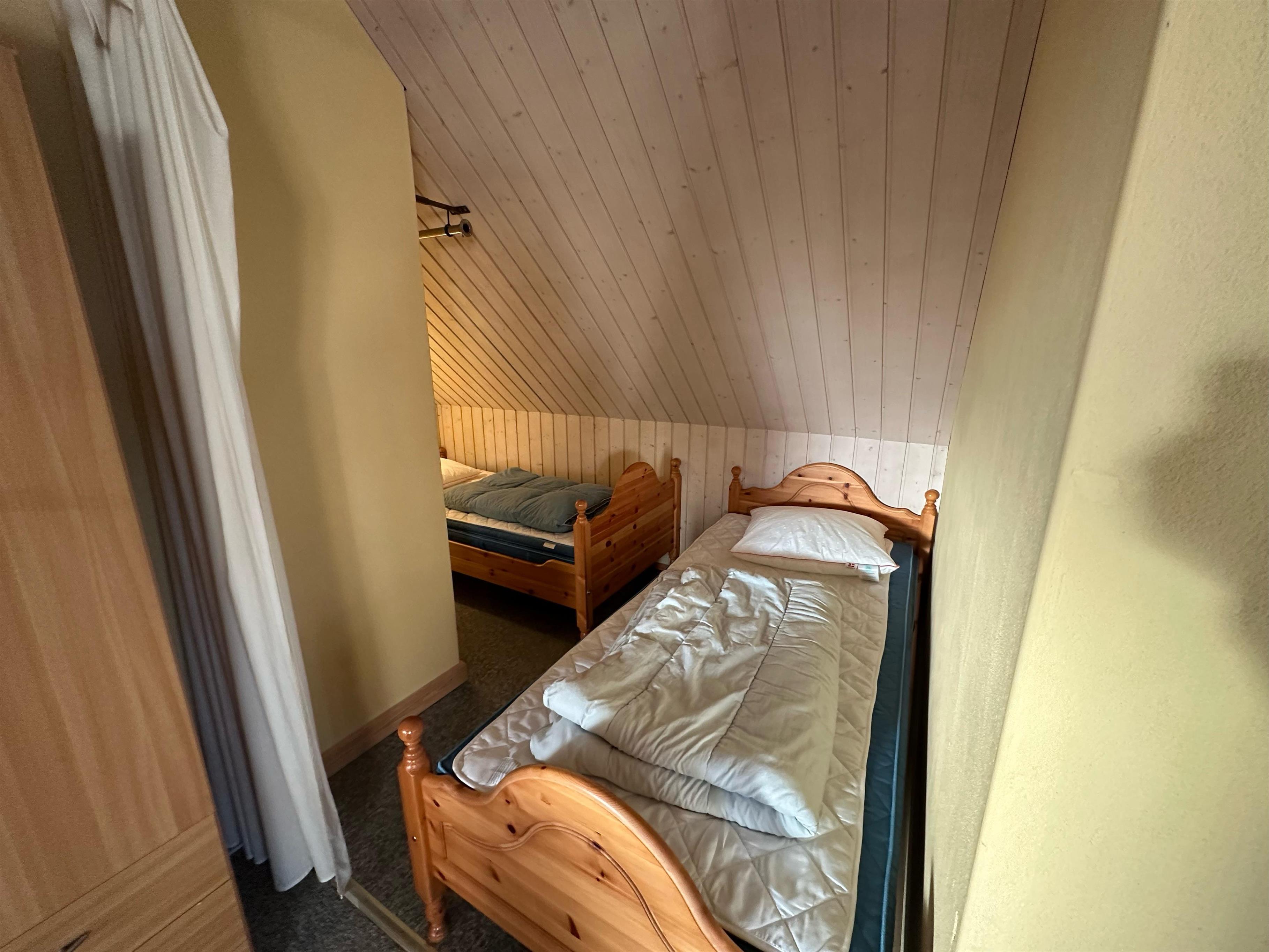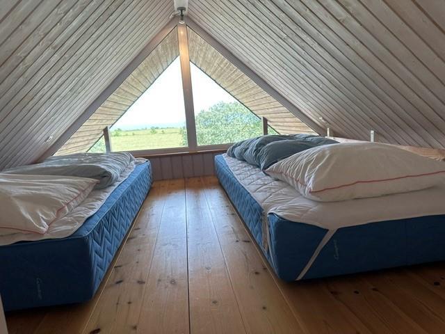 Ferielejligheden har et dejligt soveværelse med dobbeltseng, hvor du kan sove trygt og godt. I stuen finder du en hyggelig alkove med to enkeltsenge – perfekt til børn eller ekstra gæster – samt en praktisk hems med to ekstra sovepladser, ideel til større familier eller grupper, der ønsker at rejse sammen. Badeværelset er indrettet med både brusekabine, spabad og sauna, så du kan forkæle dig selv med en afslappende stund efter en aktiv dag i naturen.