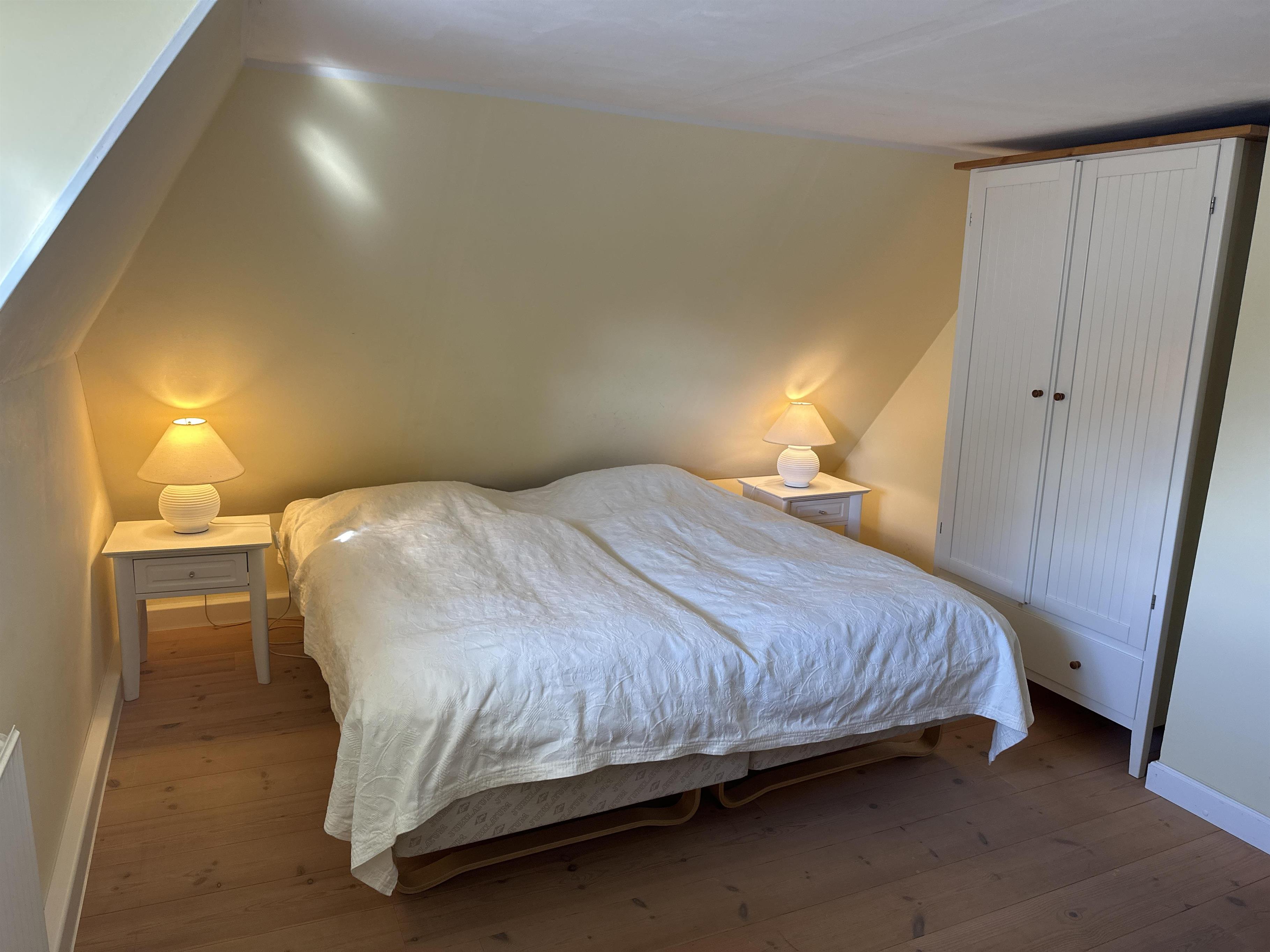På førstesalen venter hele fire soveværelser, fordelt på tre med dobbeltsenge og ét hyggeligt værelse med to enkeltsenge i børnestørrelse – perfekt til de små gæster. Huset rummer let op til 6 personer og giver mulighed for både fællesskab og privatliv.