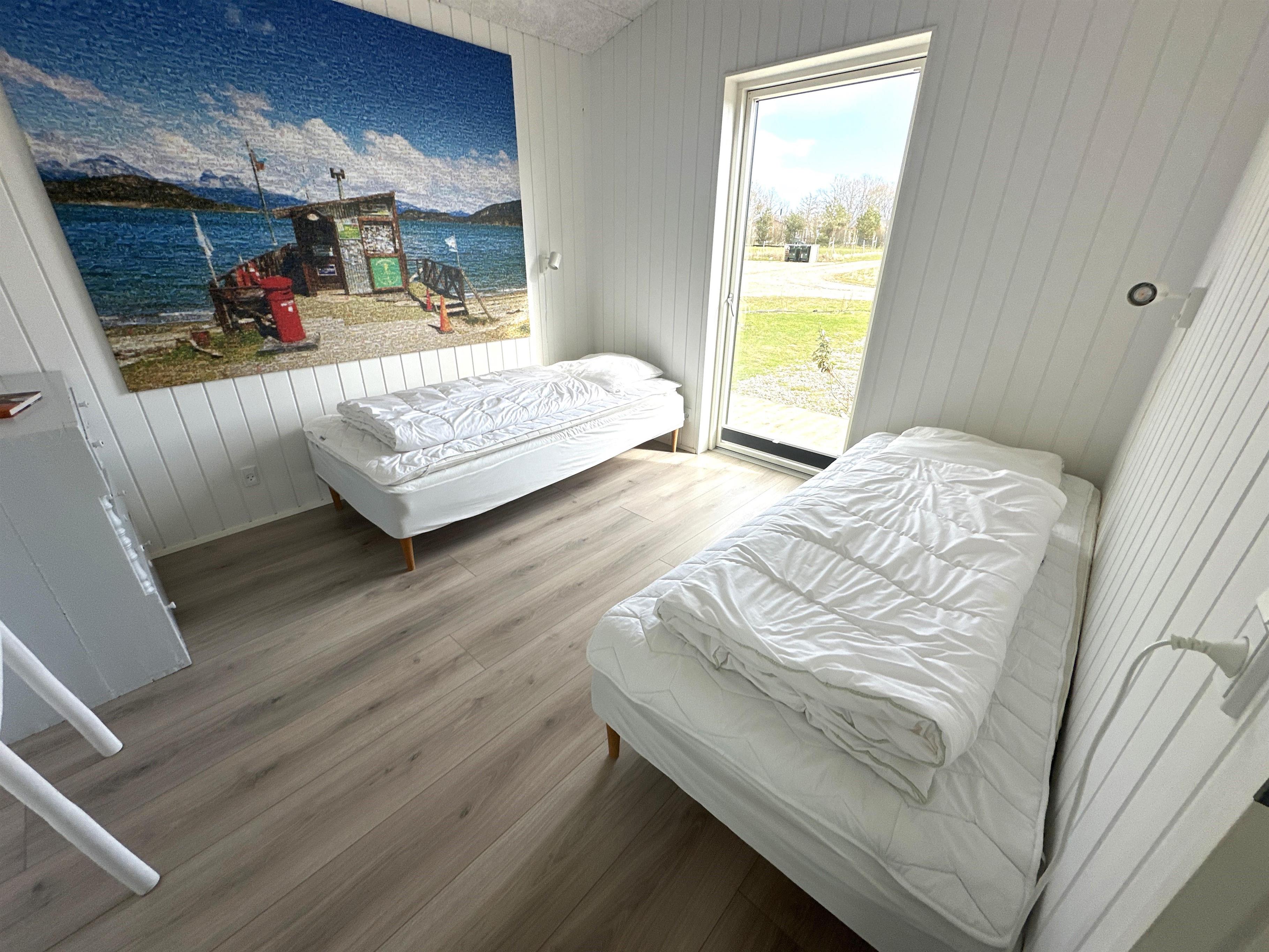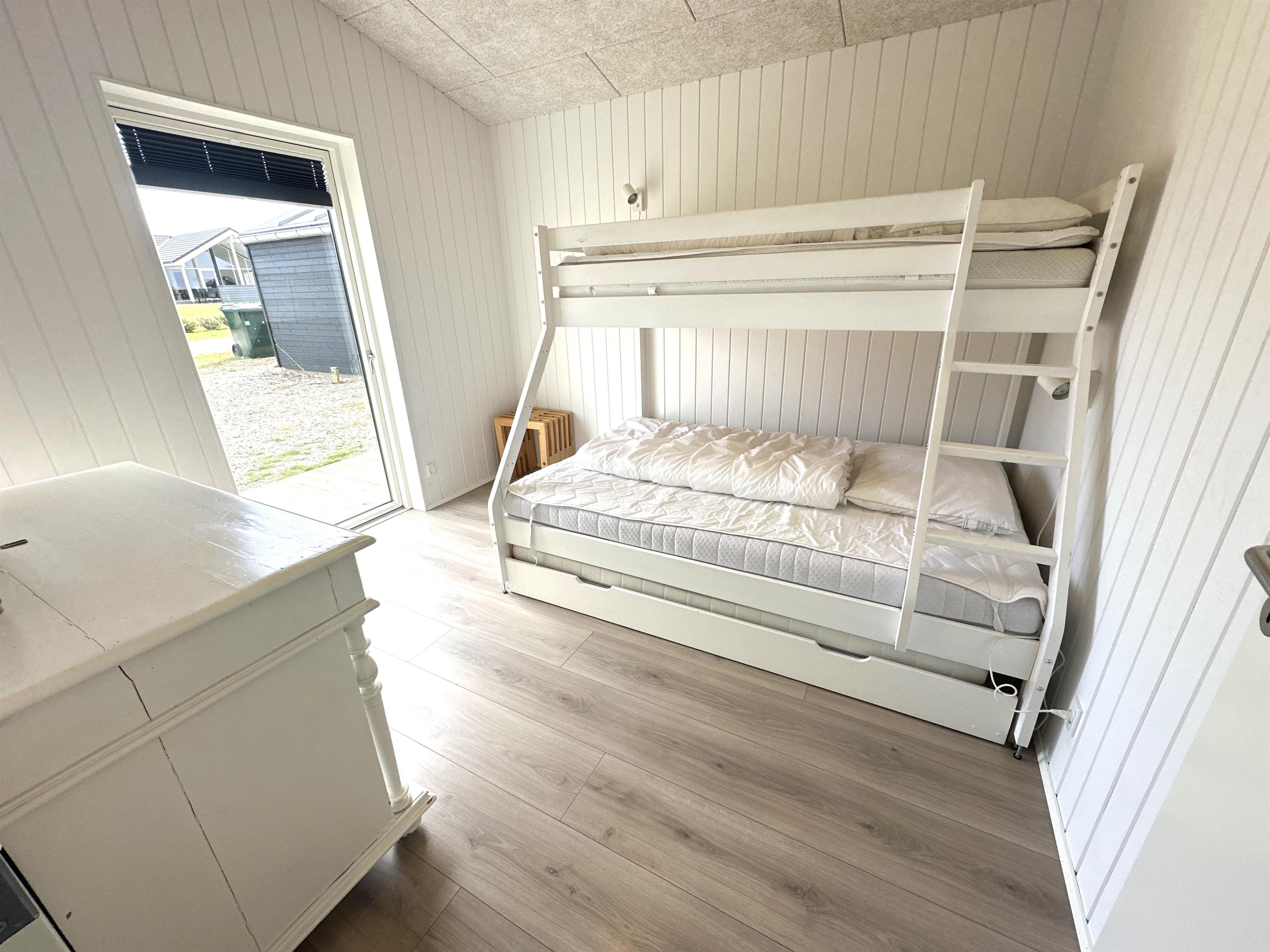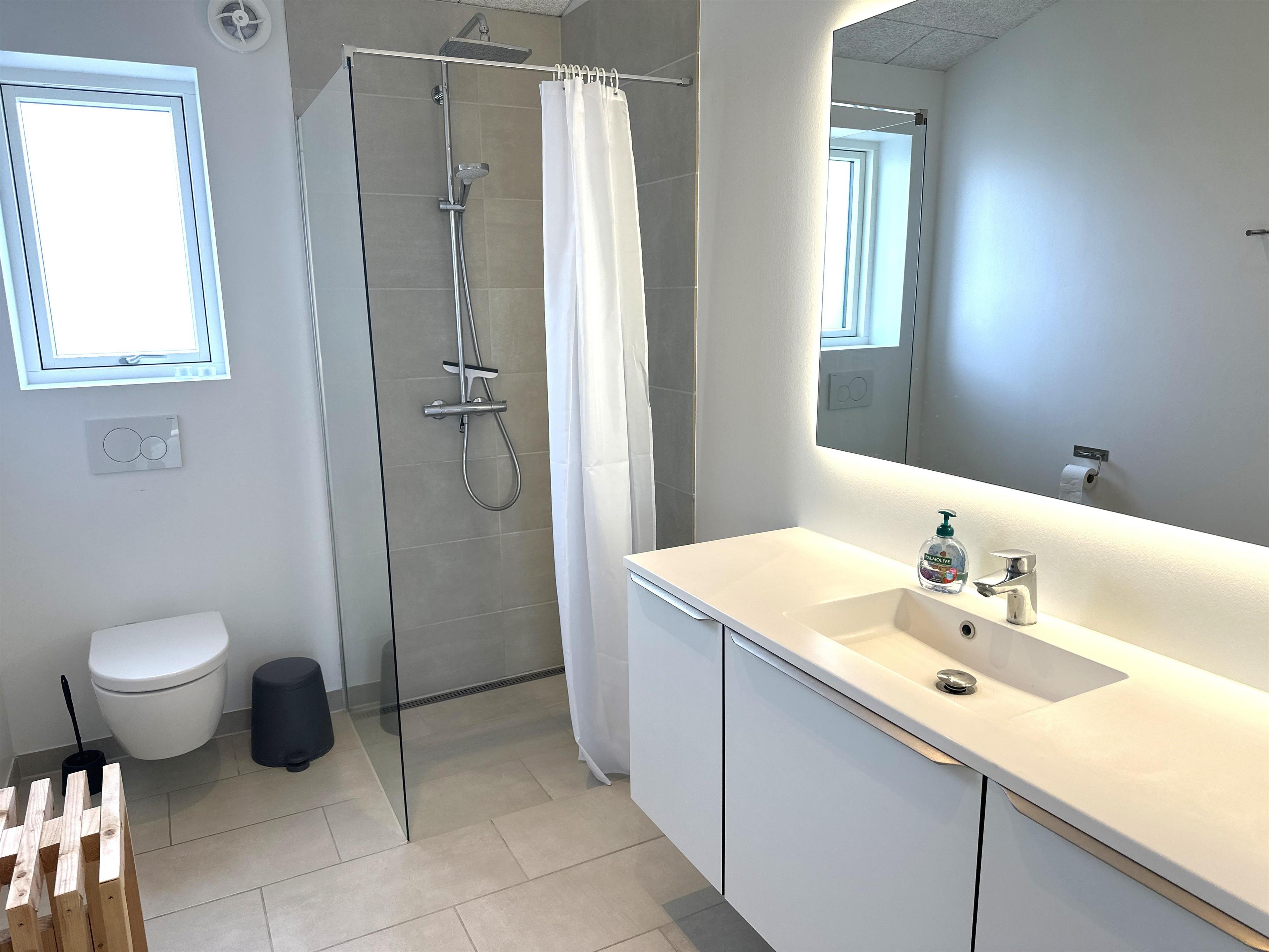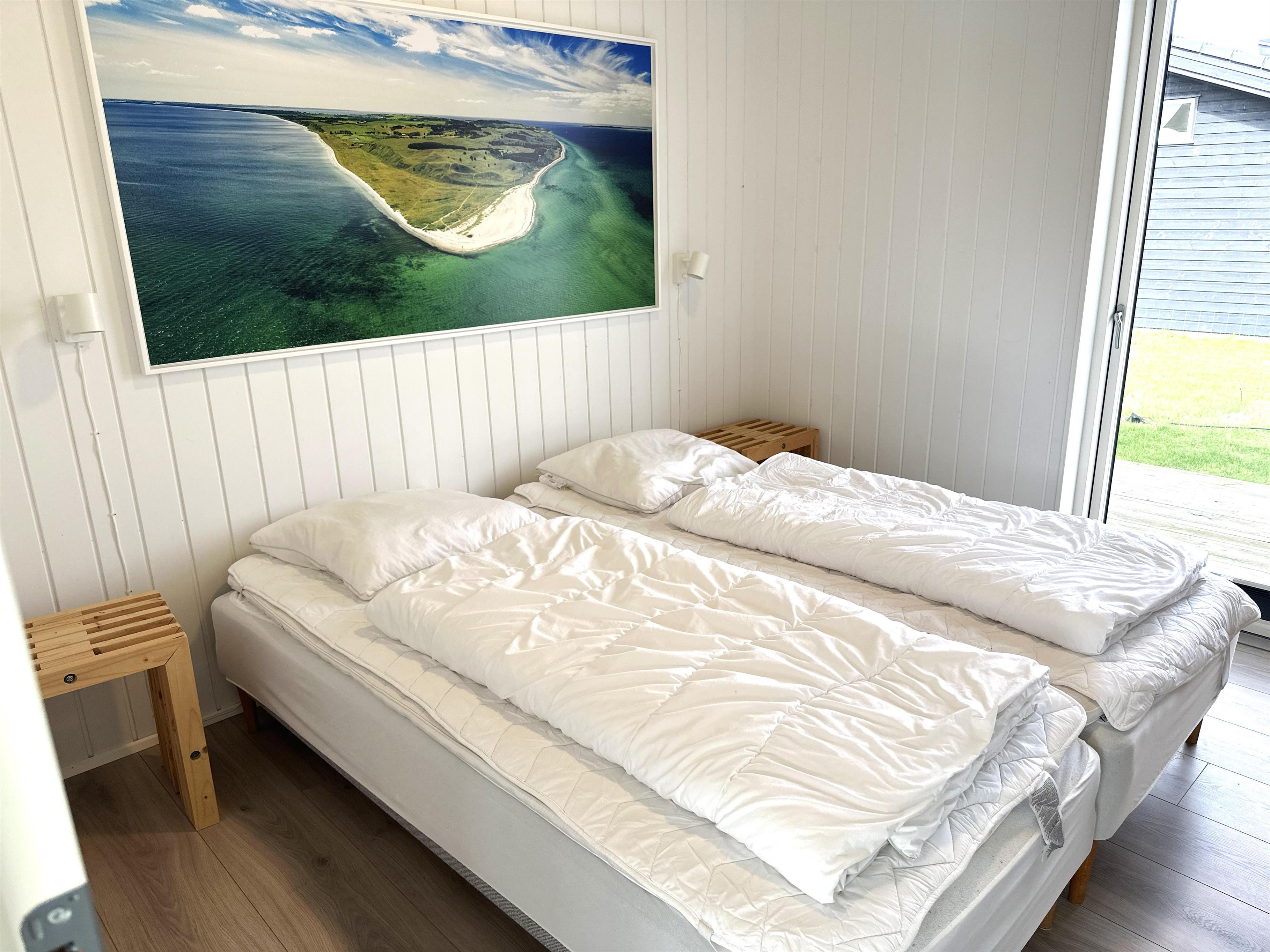 Udenfor kan du nyde en stor, delvist overdækket terrasse med vildmarksbad og udendørsbruser – ideelt til hyggelige aftener under stjernehimmel, grillaftener eller afslapning efter en dag i solen. Du har udsigt til grønne marker og ligger kun en kort gåtur fra en dejlig sandstrand, perfekt til lange dage med badning og leg. I haven er der masser af plads til boldspil og aktiviteter, så både børn og voksne kan få det sjovt.