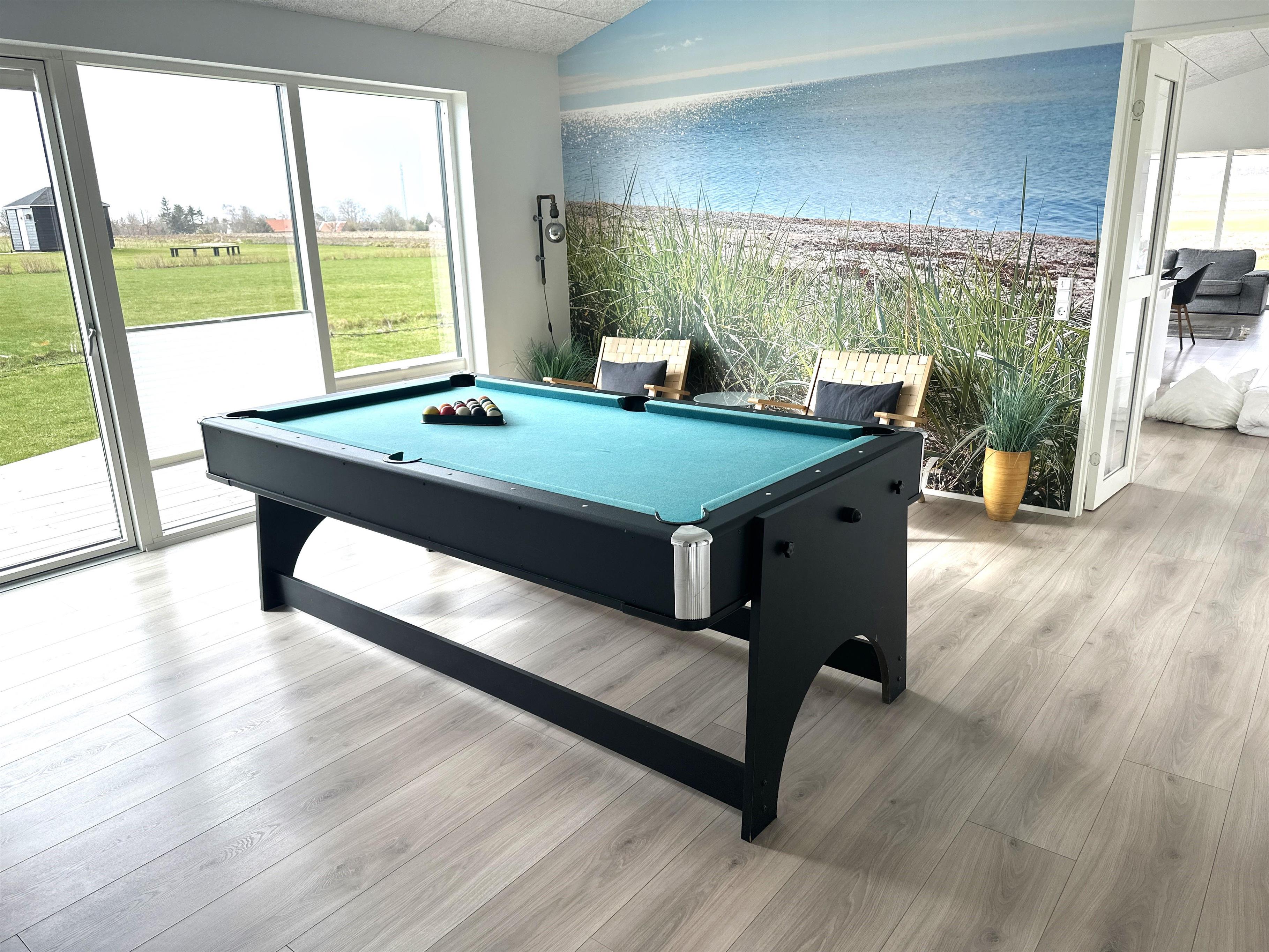 Du har 5 rummelige og komfortable soveværelser til rådighed, så alle kan trække sig tilbage og finde ro. Der er 2 moderne badeværelser, hvoraf det ene har spa-bad og sauna – perfekt til afslapning efter en dag med leg, vandreture eller strandliv. Et billardrum giver dig ekstra underholdning, og husets hyggelige indretning gør, at du straks føler dig hjemme.