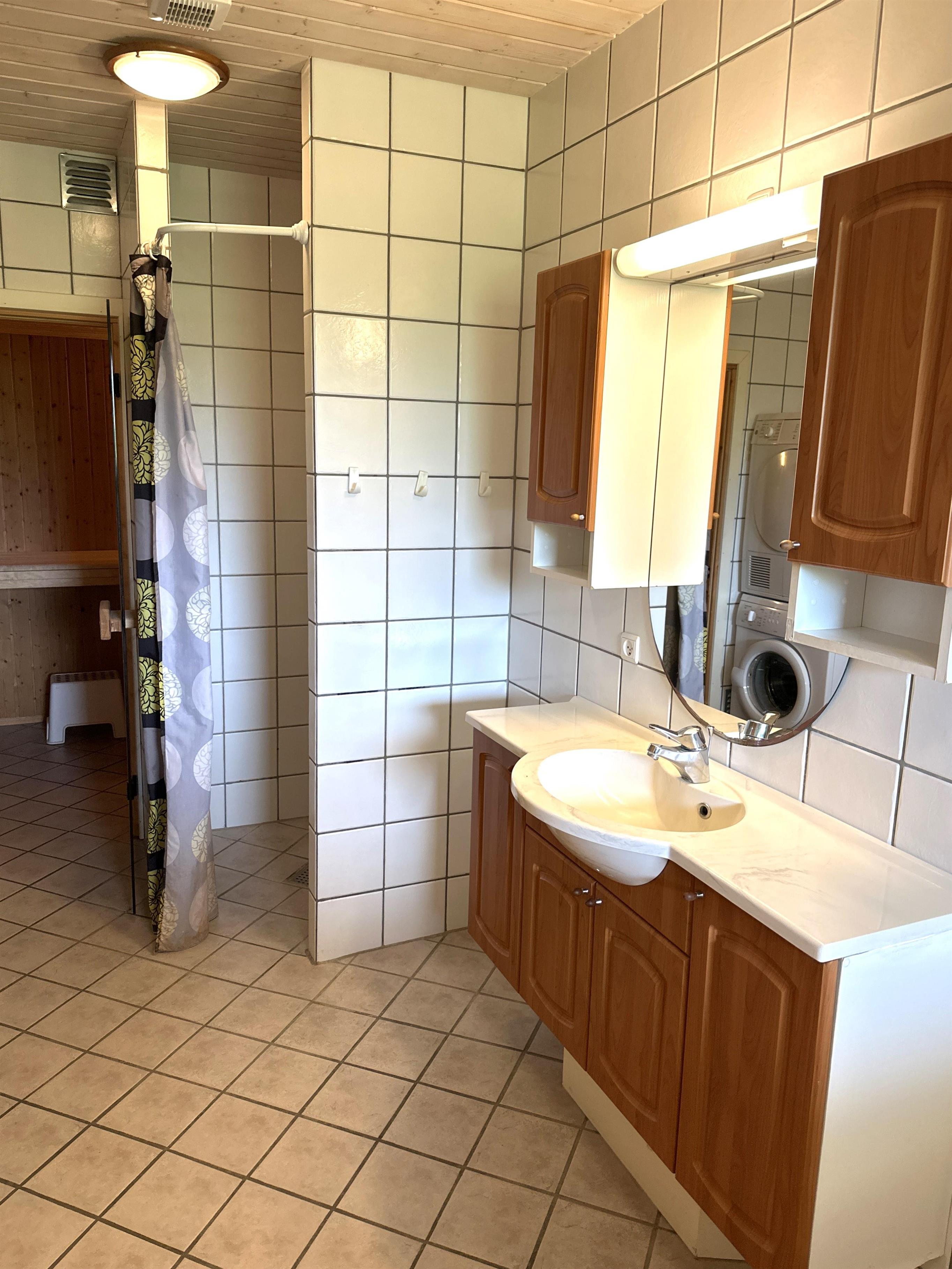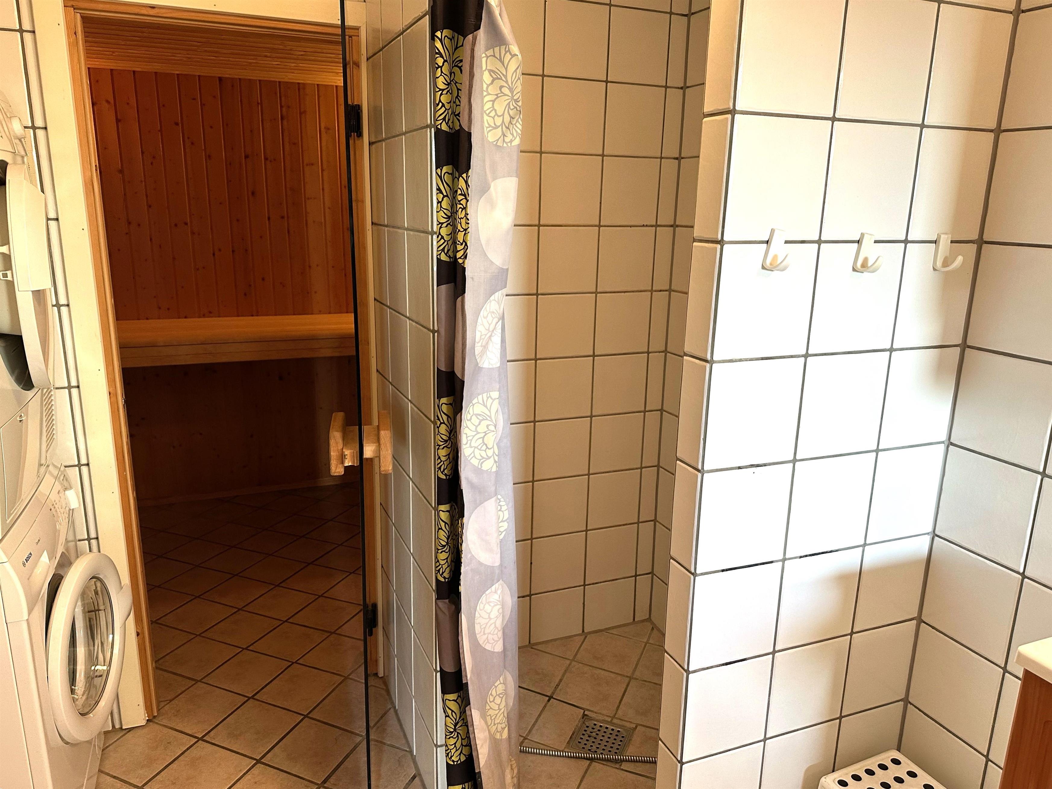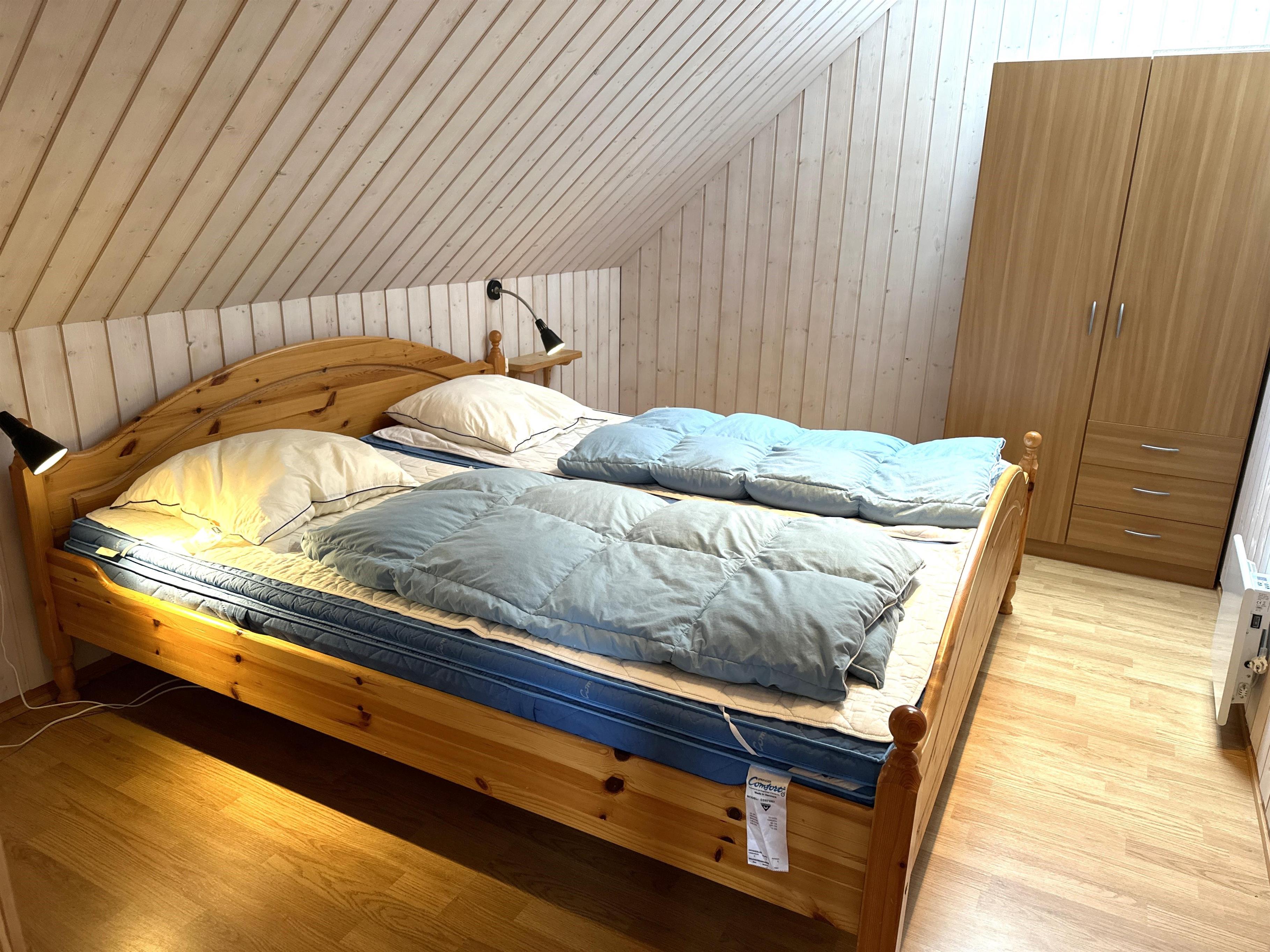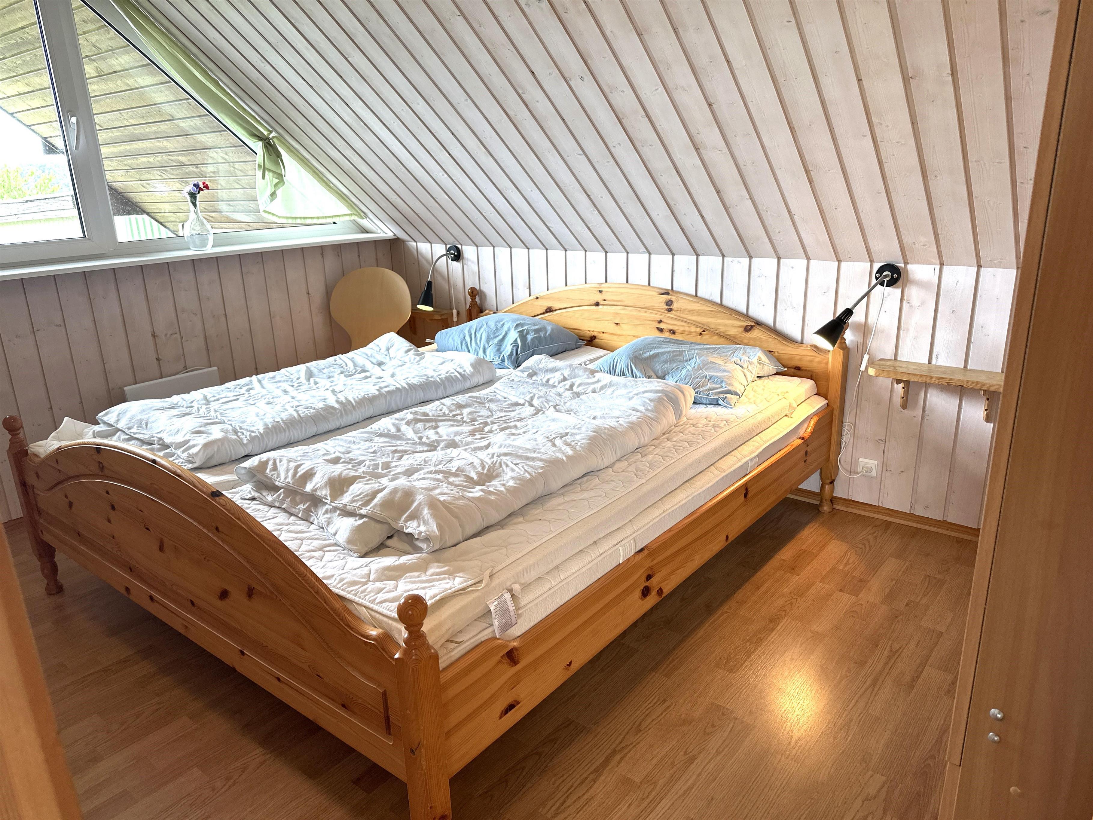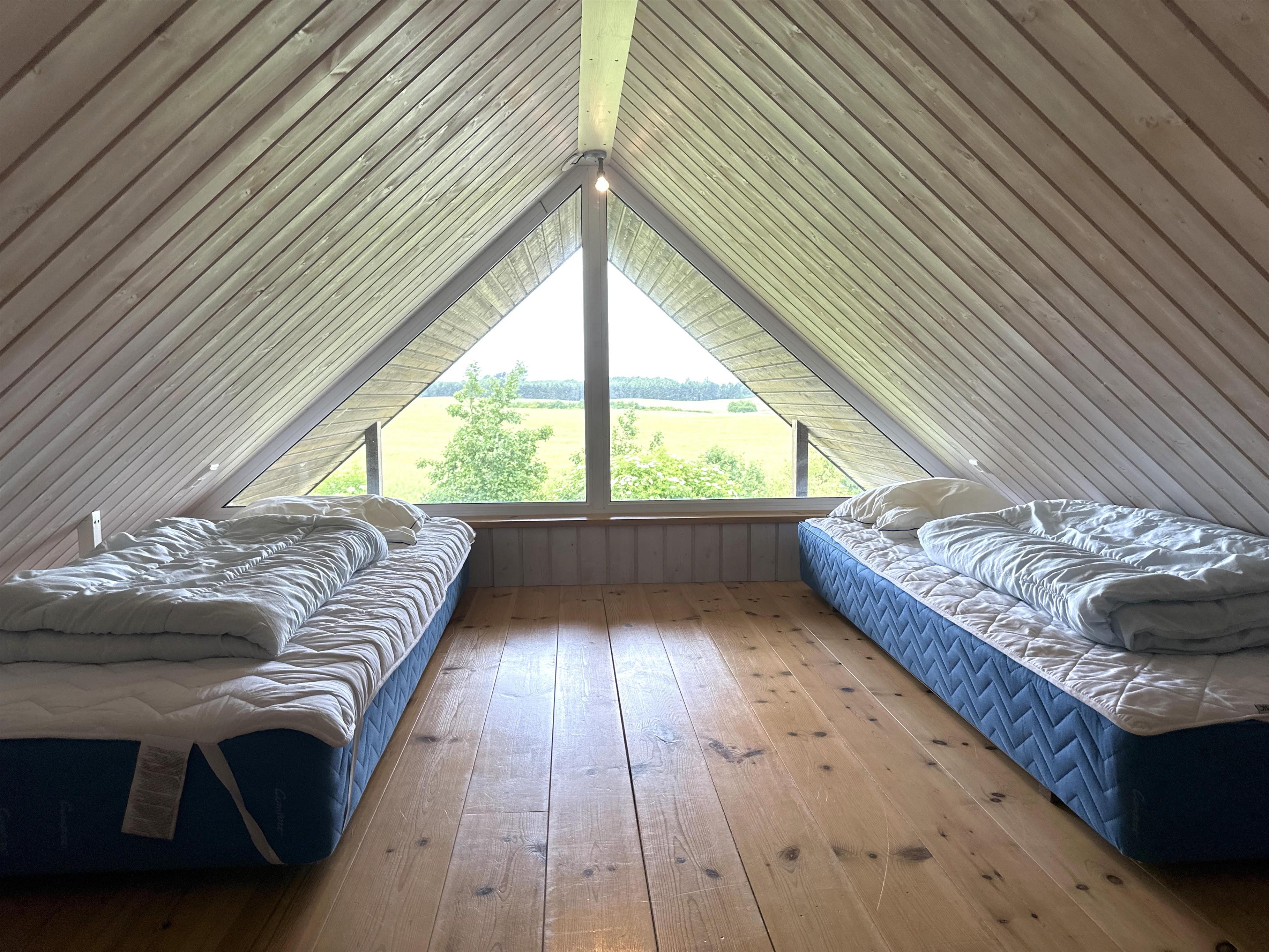 Der er to soveværelser, begge med komfortable dobbeltsenge, samt en hems, som giver ekstra sovepladser og plads til børn eller ekstra gæster. Badeværelset er udstyret med både brusekabine, spabad og sauna, så du kan forkæle dig selv og familien med afslapning og wellness under dit ophold.