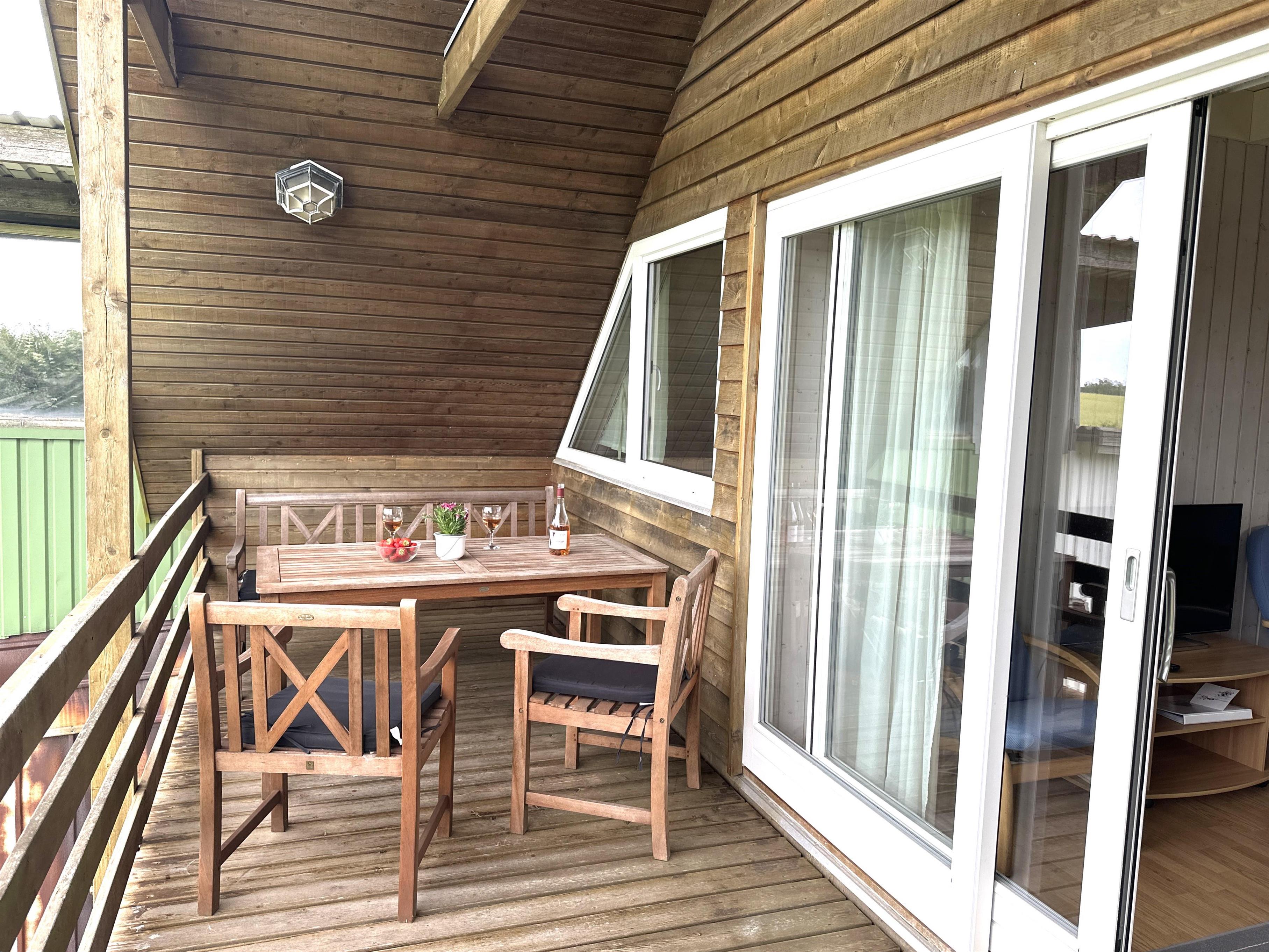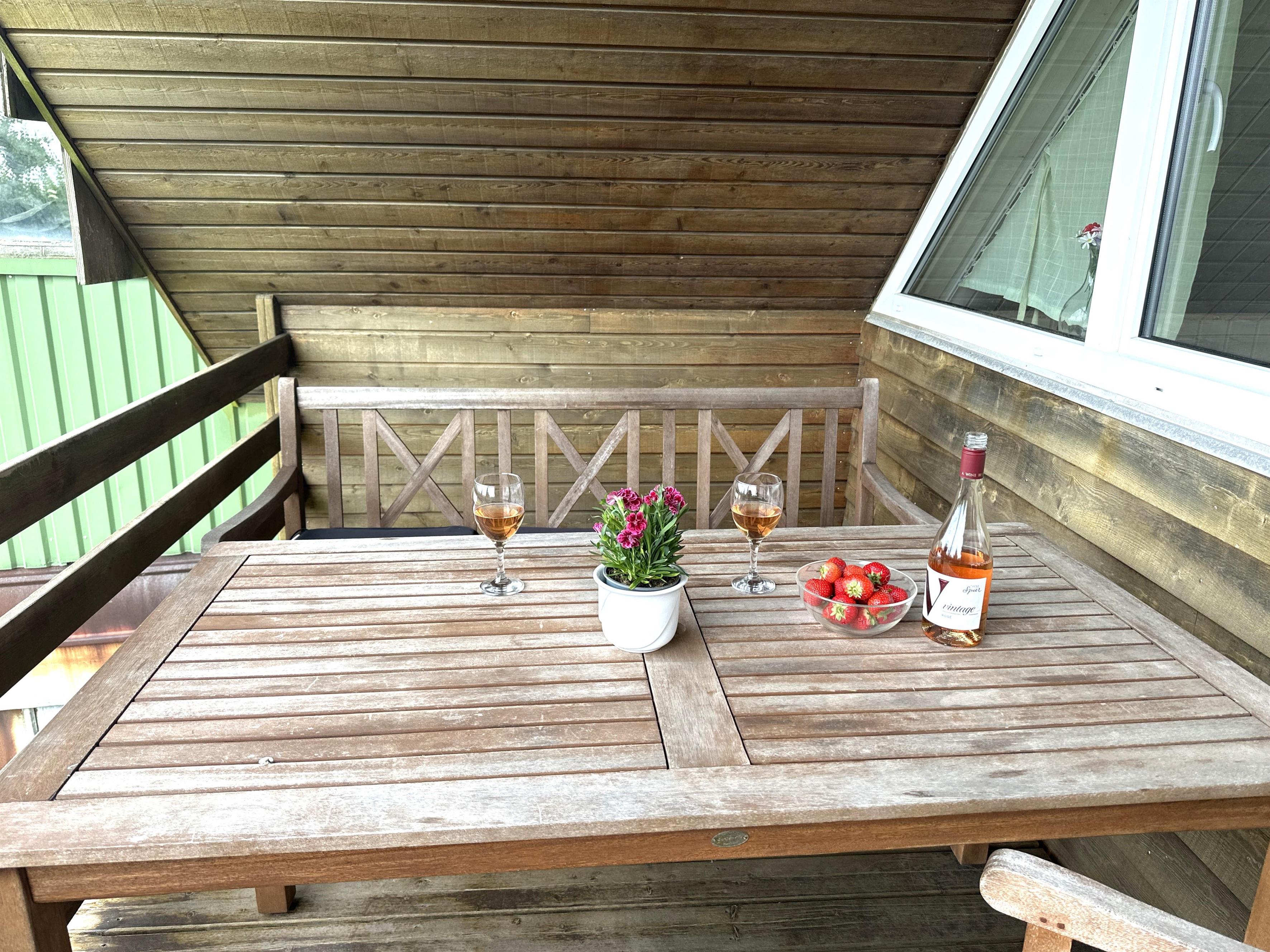 En af lejlighedens største attraktioner er den store, overdækkede tagterrasse, hvor du kan nyde aftensolen, udsigten over markerne og stille øjeblikke med et glas vin eller en kop kaffe. Her er det let at koble af og lade hverdagen blive langt væk.