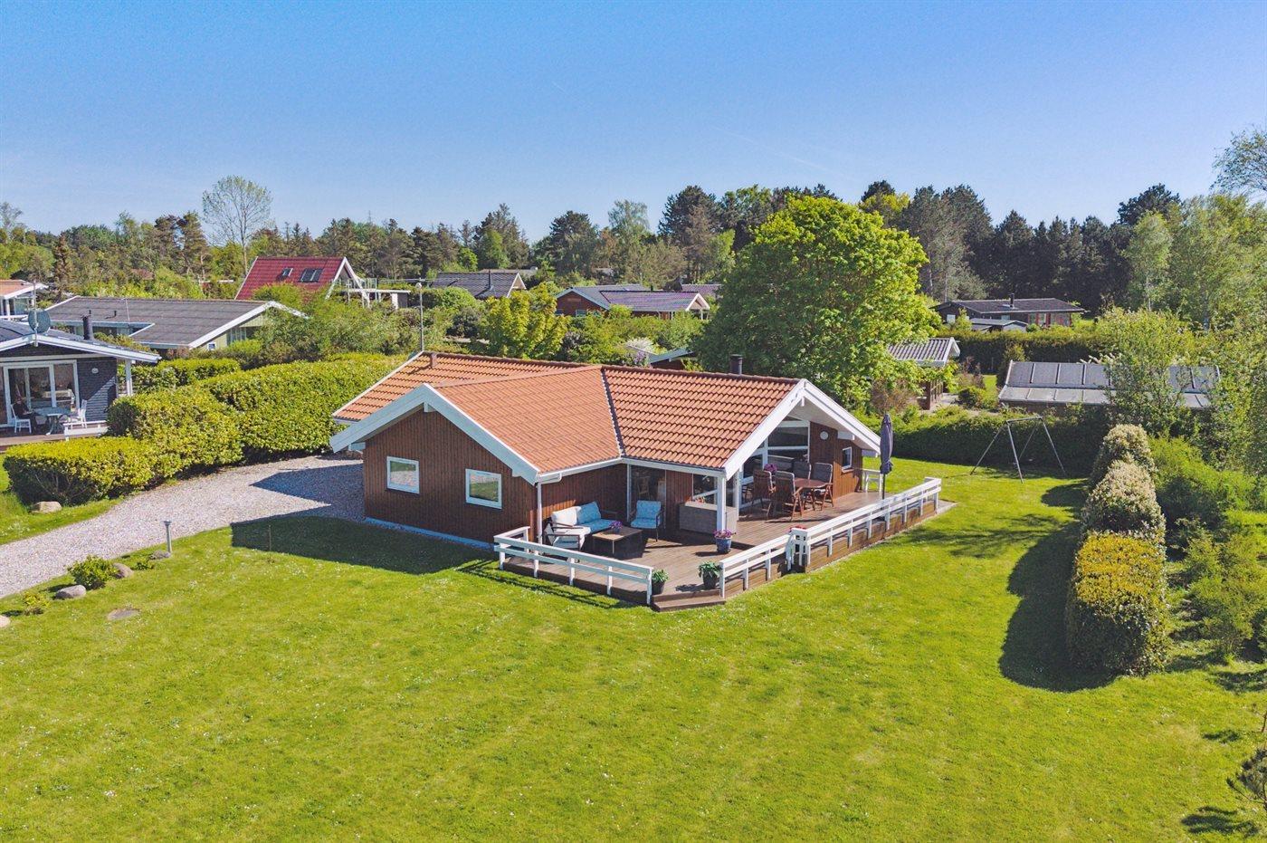 Dejligt lyst og flot sommerhus med en skøn udsigt ud over vandet og fuglereservatet fra både huset og terrassen. Omkring huset er der flere dejlige terrasser, så der er altid mulighed for læ, selv på blæsende dage. Tæt på huset ligger der en legeplads med forskellige aktiviteter, og der er i sommerperioden opsat badebro.
