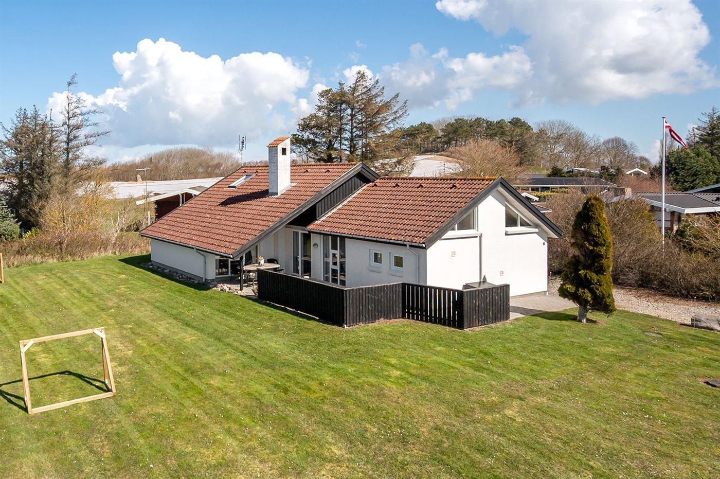 Ferieboligen er beliggende på en 1207 m² stor havegrund. Der er 100 m til havet. Der er en sø i en afstand af 500 m. Nærmeste forretning er beliggende i en afstand af 5000 m. Der er en golfbane i en afstand af 7300 m. Til ferieboligen hører 50 m² terrasseareal. Desuden er der 14 m² overdækket terrasse. Der er redskabsrum. Fodboldmål. Der ligger en legeplads i en afstand af 100 m. Grill til rådighed. Parkering ved ferieboligen.