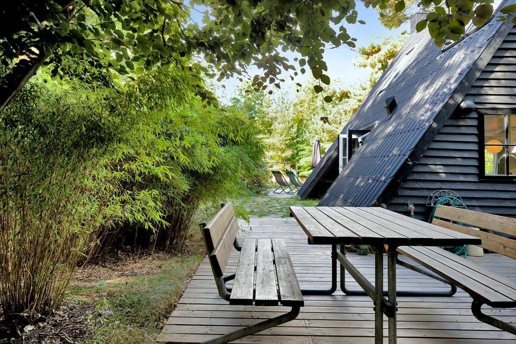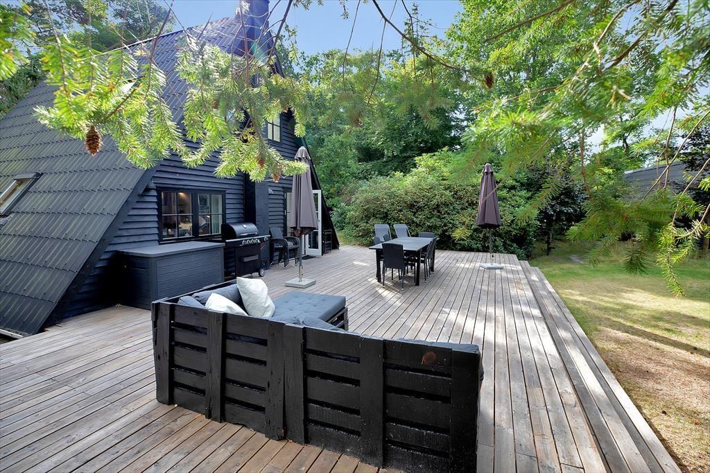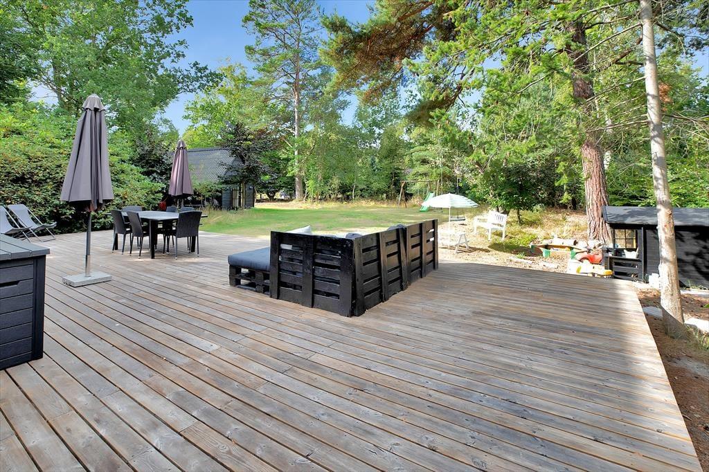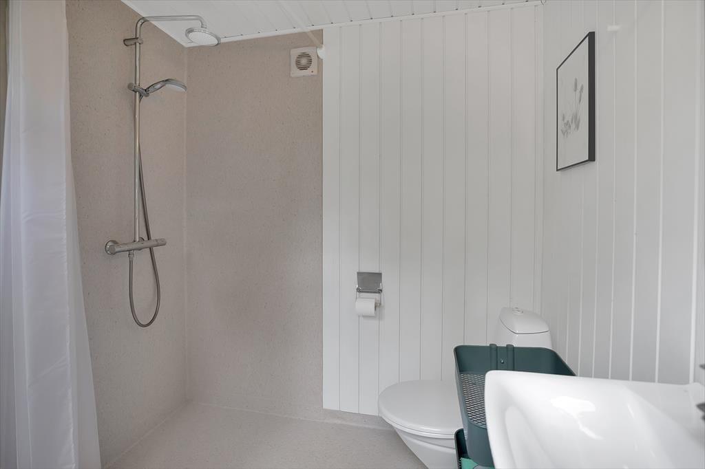 På den store terrasse bagved huset, er der udendørs bruser og fra denne terrasse fører en lille gangsti direkte ned til den dejlige sandstrand