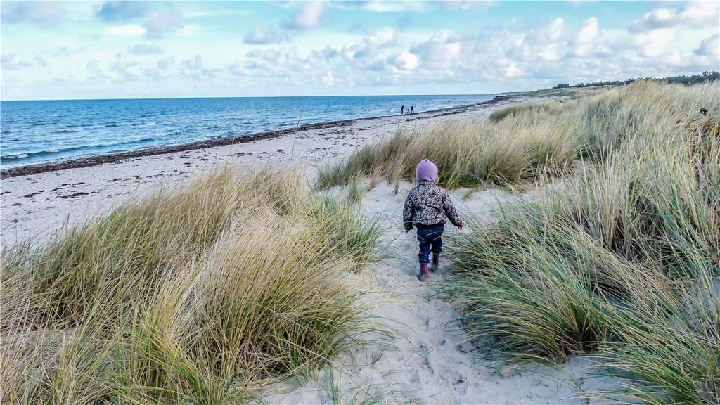Husets store terrasse har god plads til at nyde solen fra solsengen. Måske en iskaffe og et ugeblad kan sætte prikken over i´et, mens børnene hygger sig med skjul, boldspil eller andre aktiviteter i haven. Savner børnene en sandkasse, er der kun få hundrede meter ned til stranden, hvor I kan få timer til at gå med at bygge det højeste sandslot, øve jer på SUP, tage på tur i en havkajak eller bare bade i det rene friske hav.