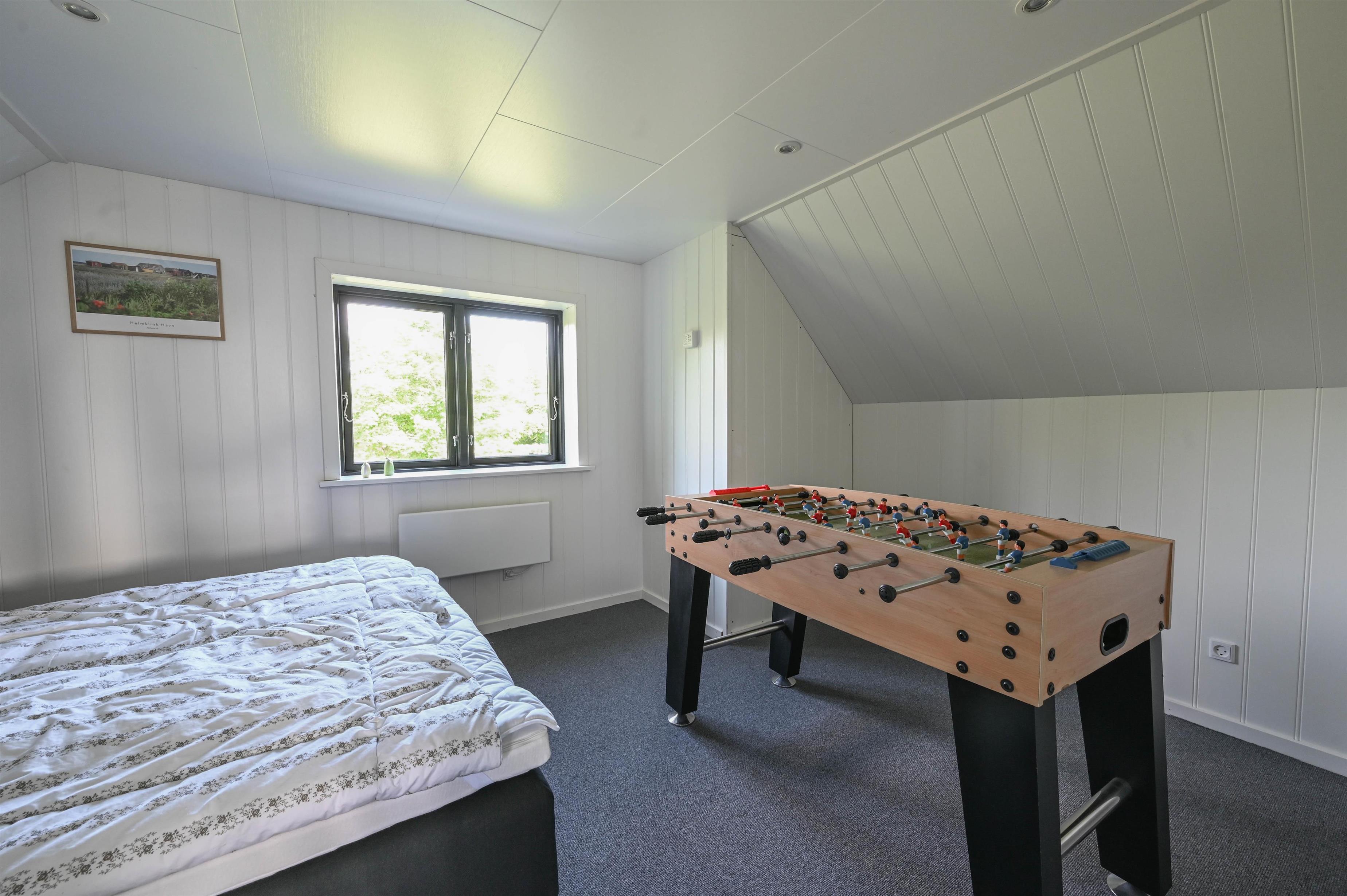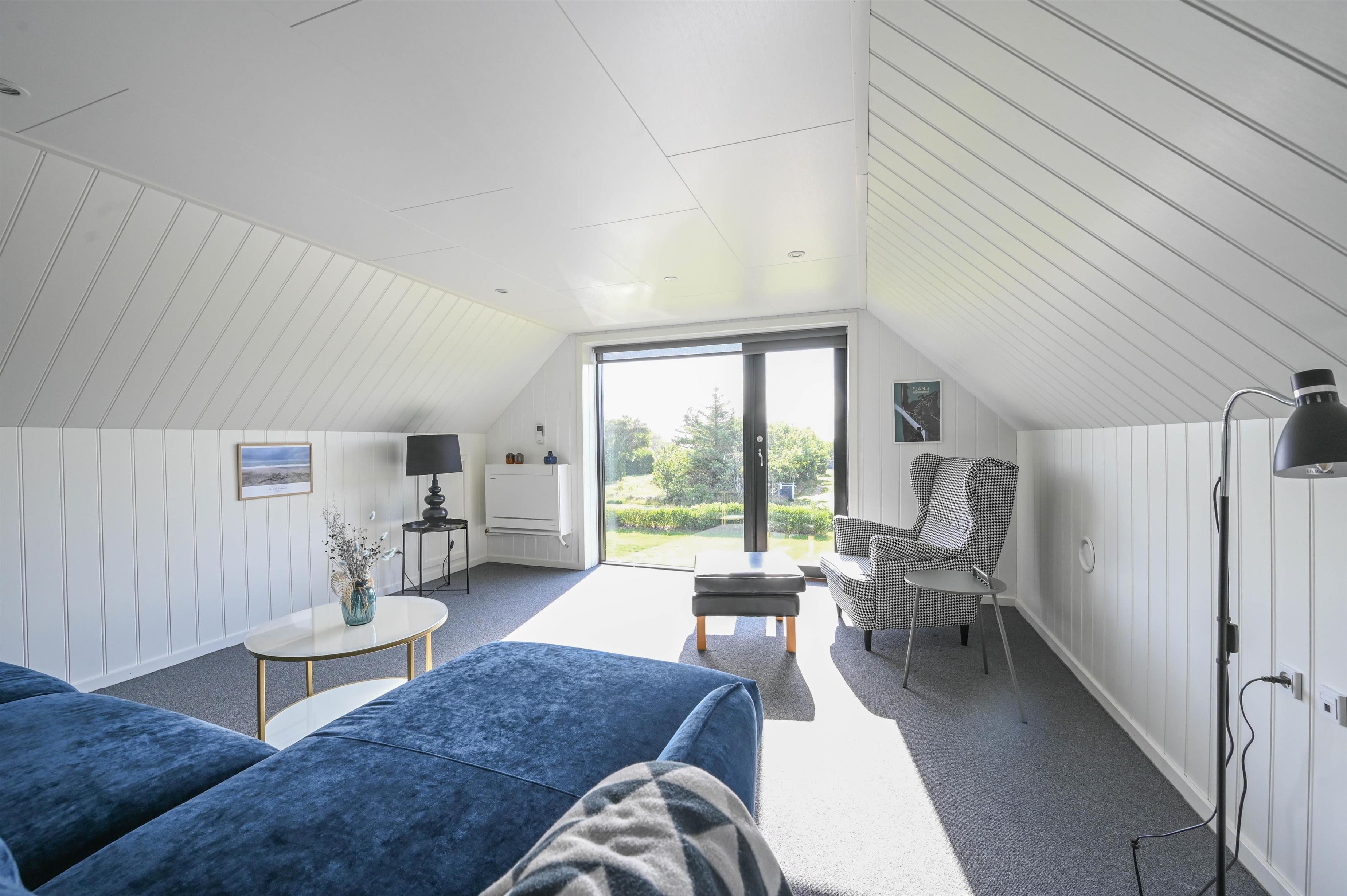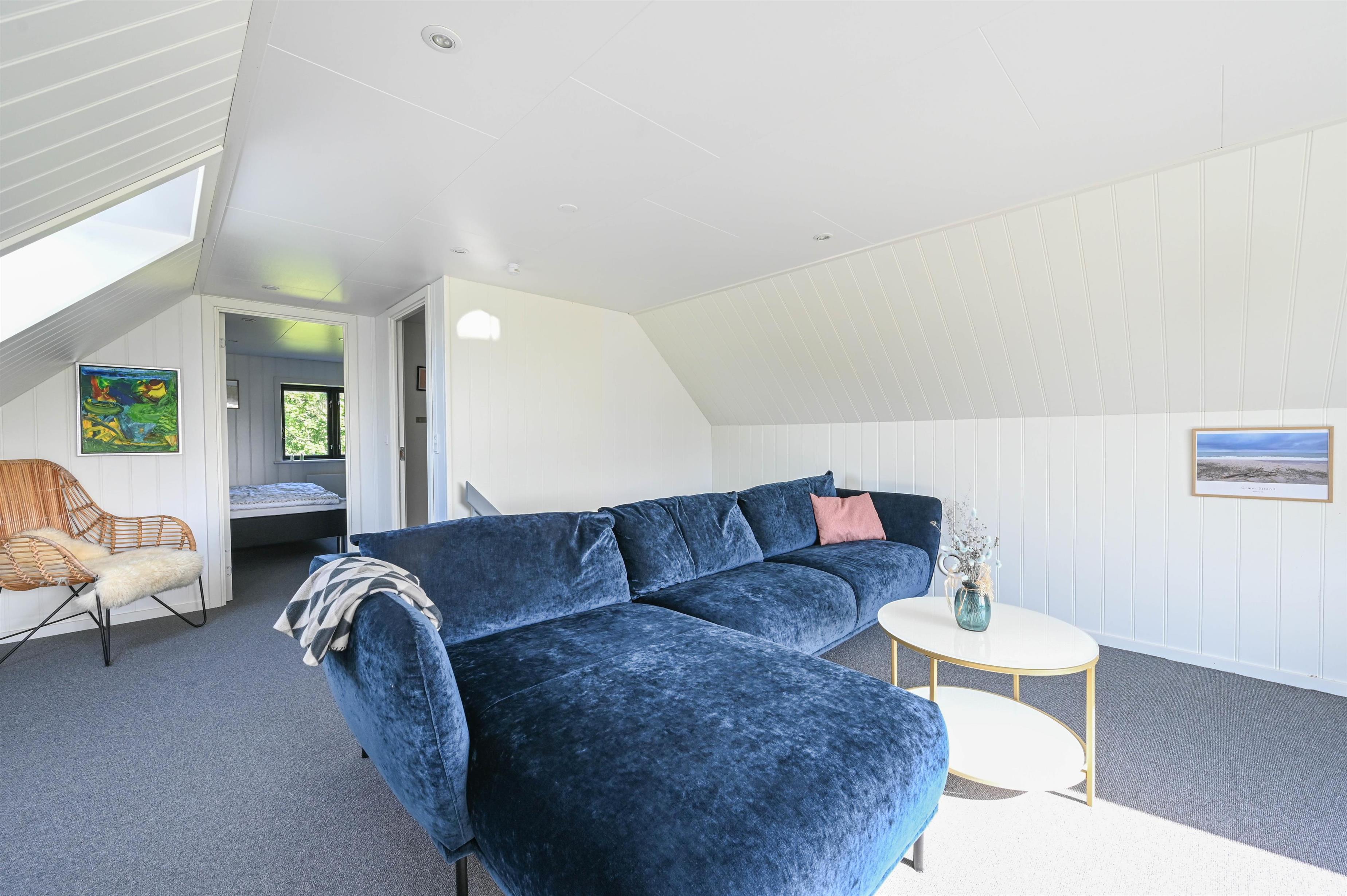 Første salen er indrettet med en dejlig stue, hvorfra man kan nyde udsigten til den østlige del af Nissum Fjord. Desuden er der toilet, samt et rum, der er indrettet med fodboldbord.