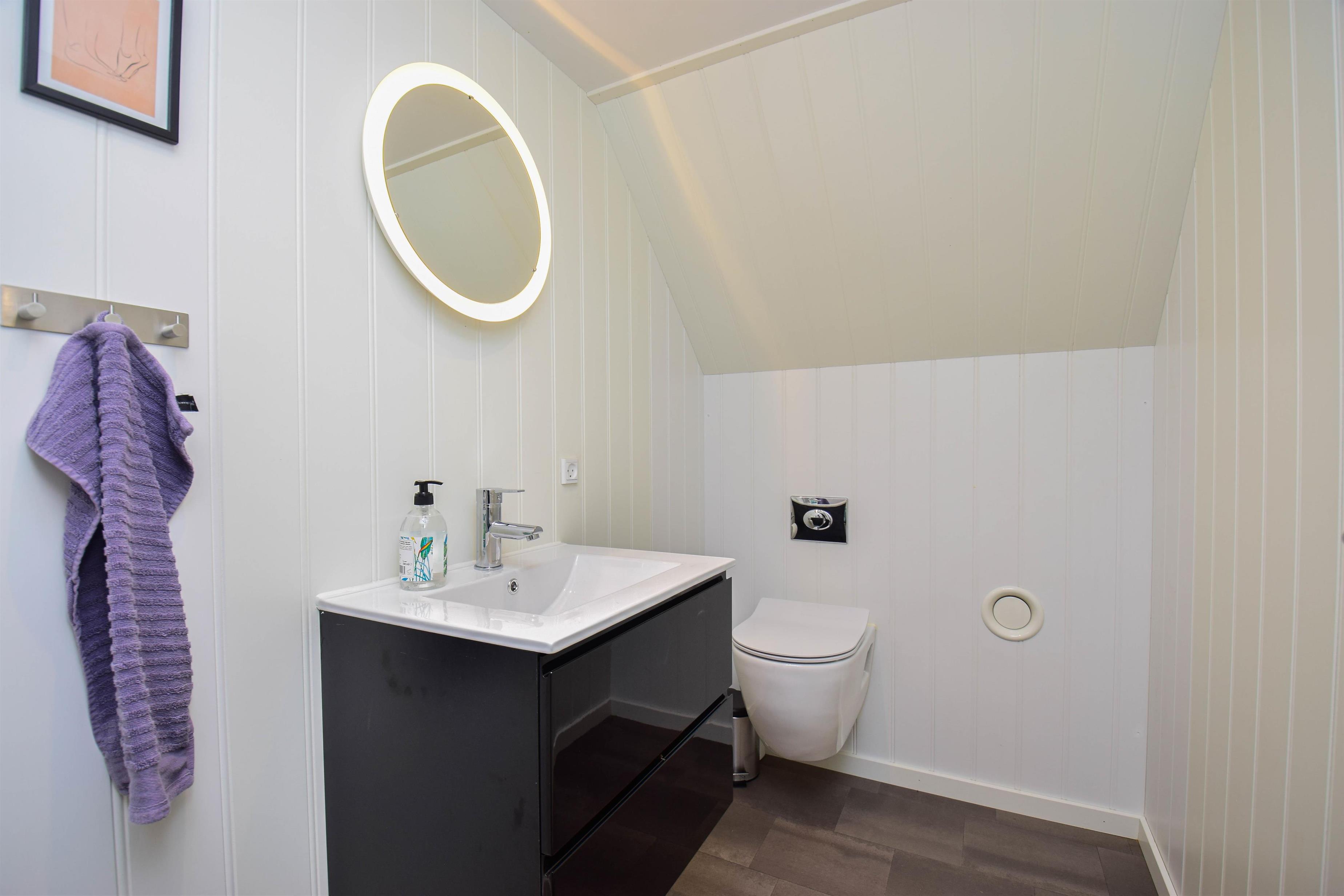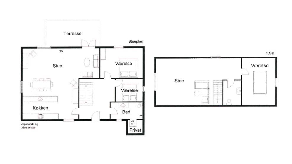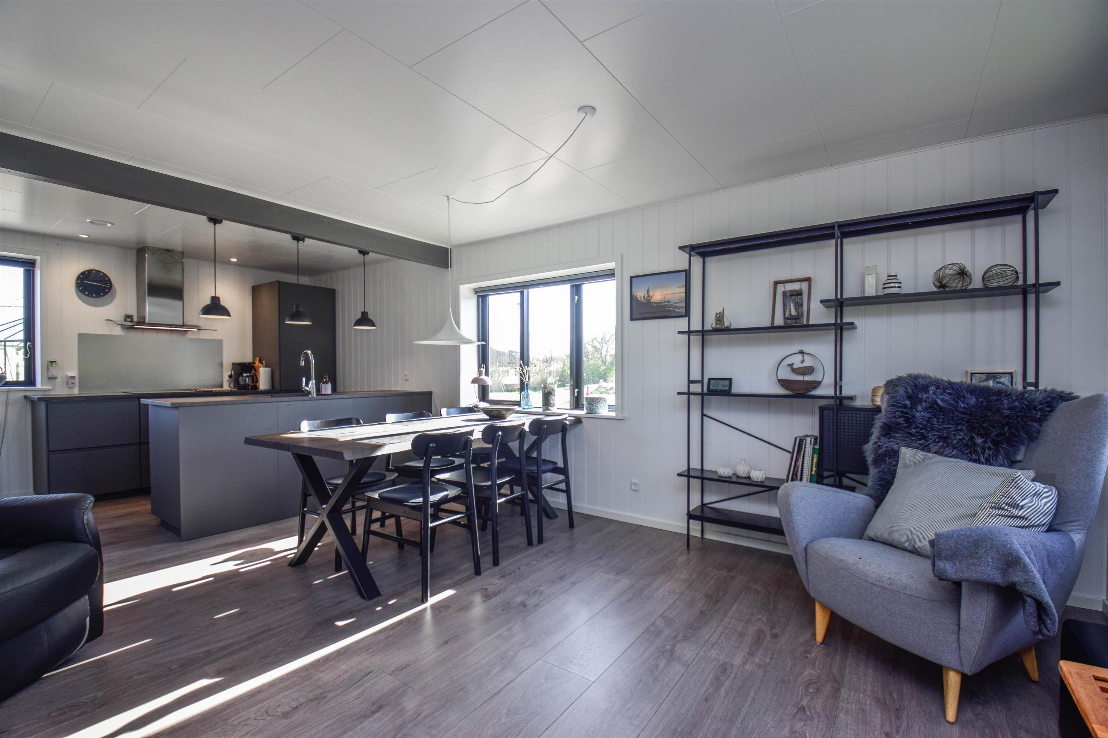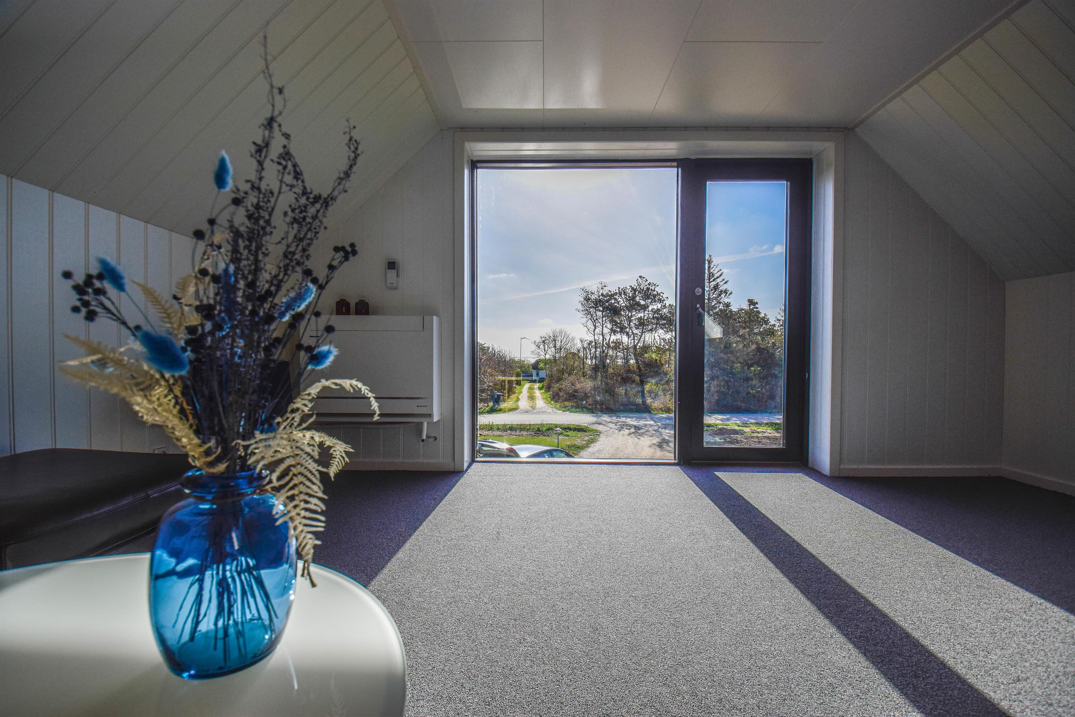 Første salen er indrettet med en dejlig stue, hvorfra man kan nyde udsigten til den østlige del af Nissum Fjord. Desuden er der toilet, samt et rum, der er indrettet med fodboldbord.