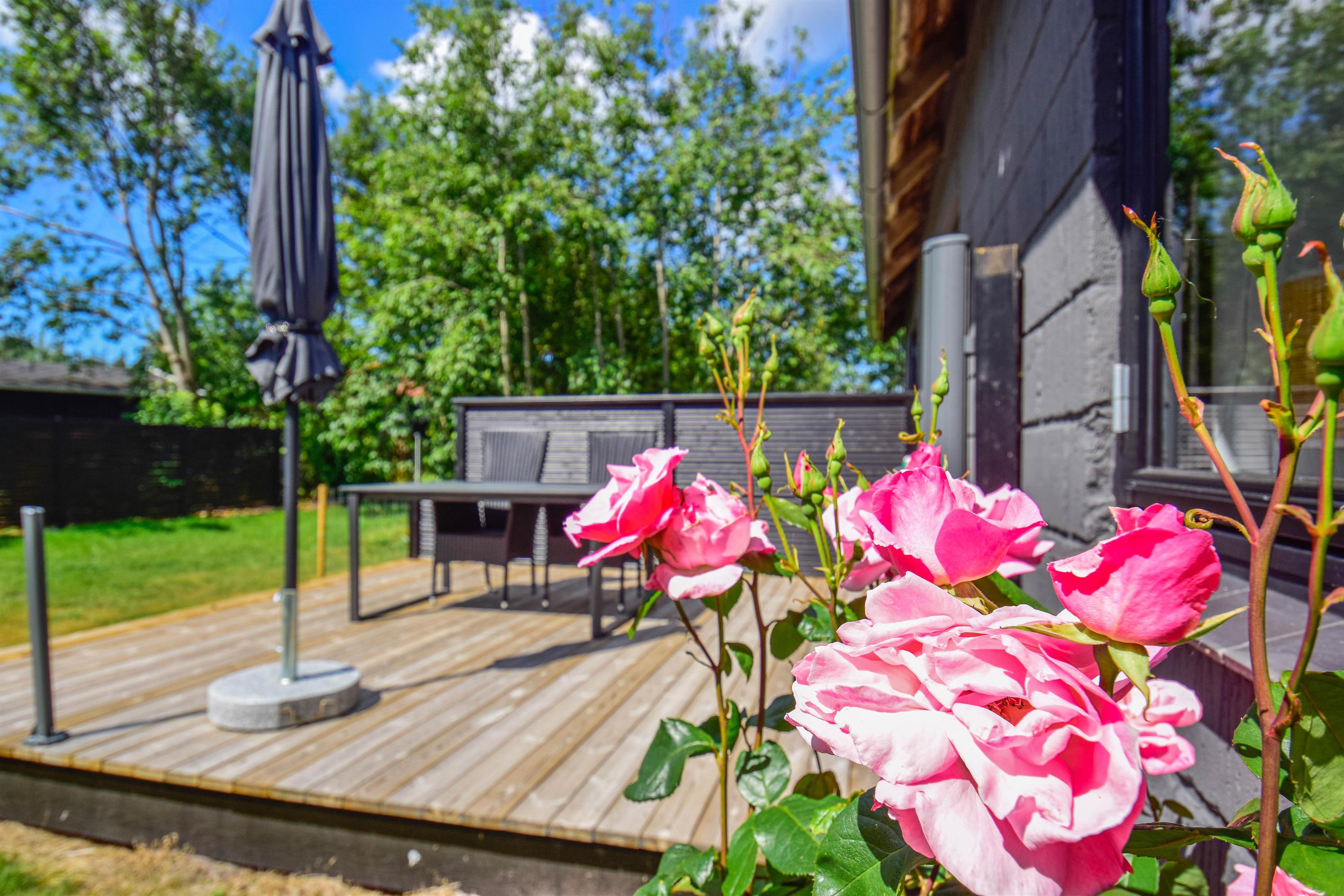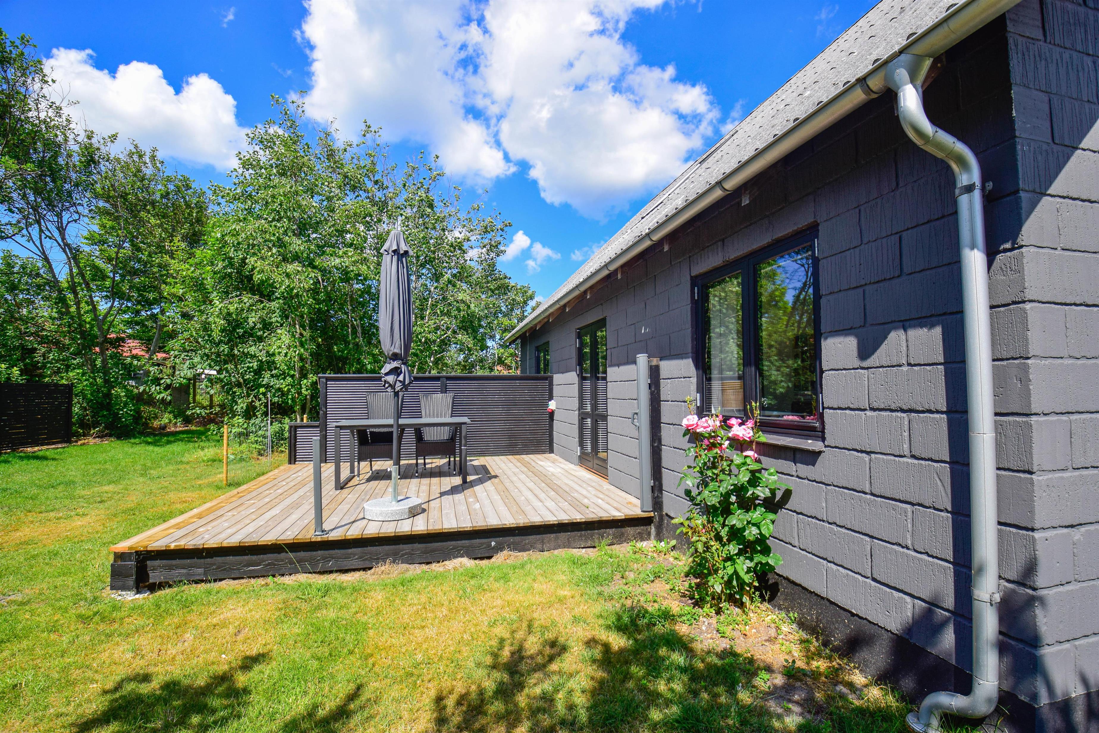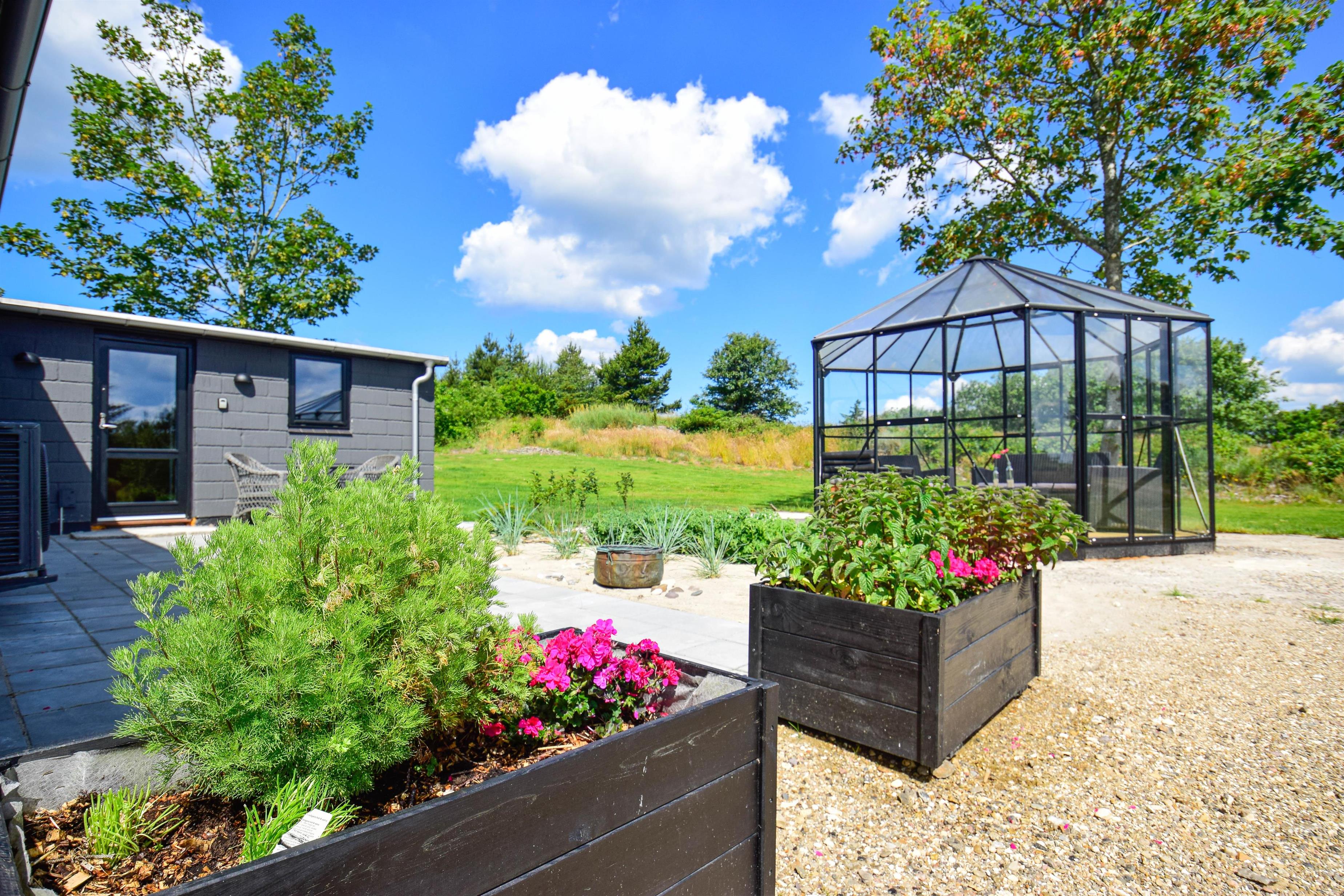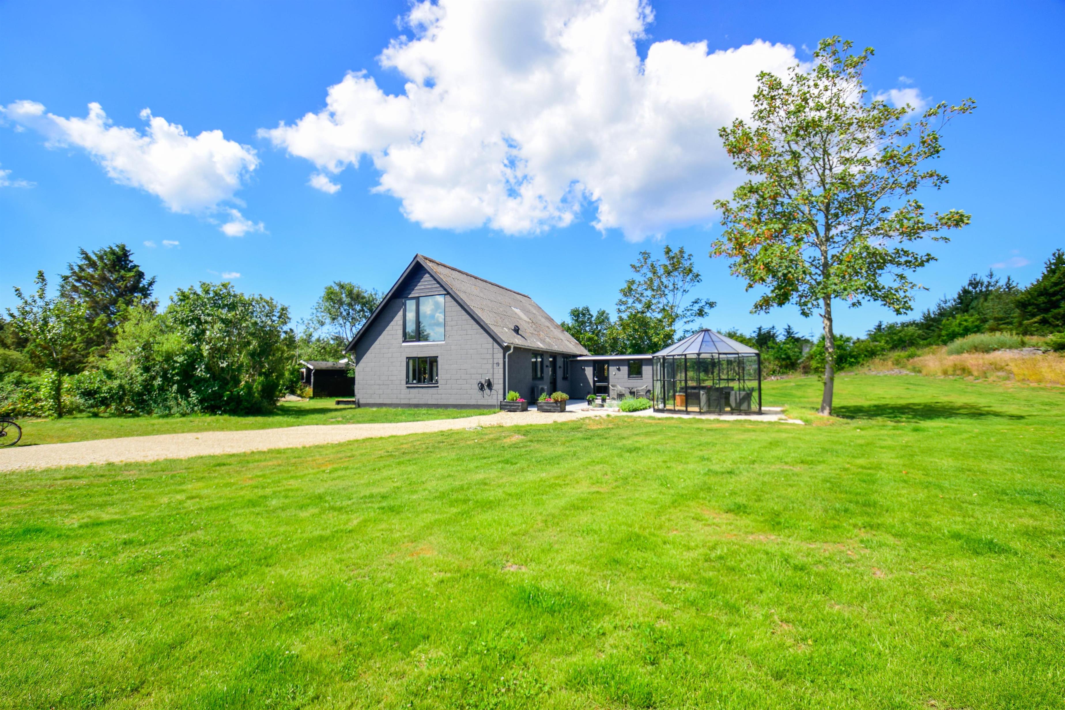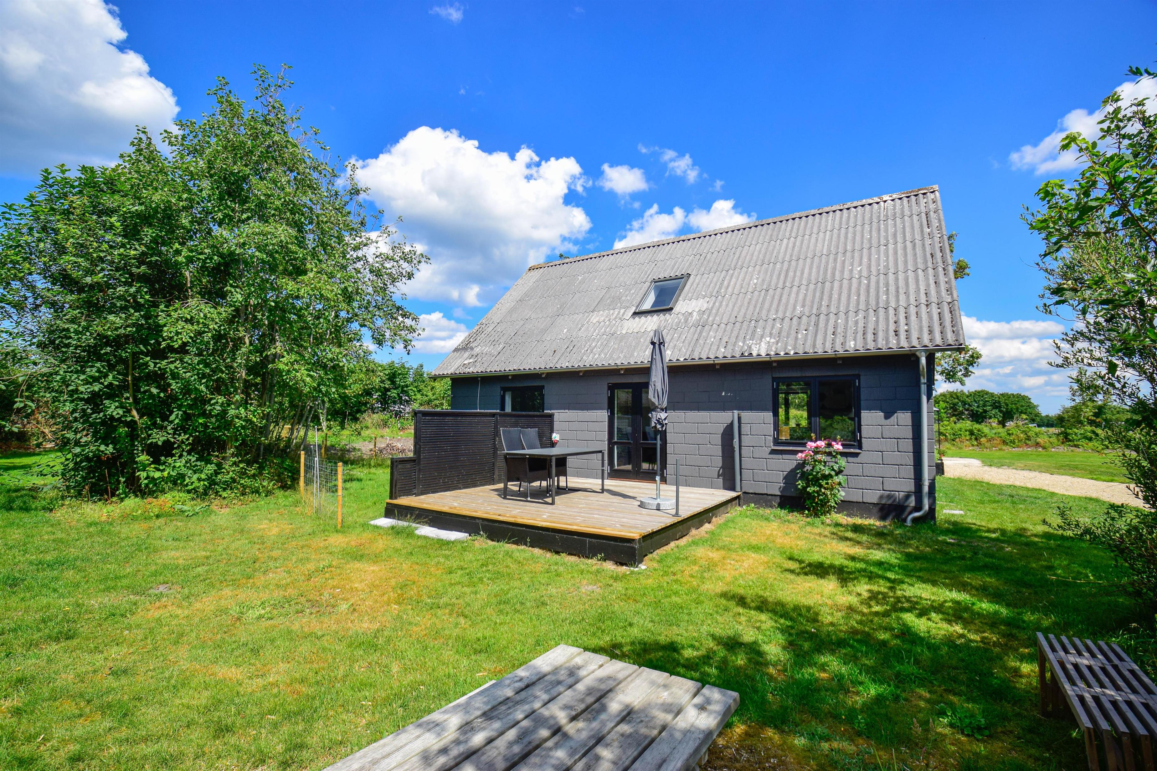 Huset er beliggende på en dejlig grund i cykelafstand til havet, skoven og fjorden. Grunden er med en god græsplæne, en lille udsigtsbænk, flere gode terrasser og gode lækroge.