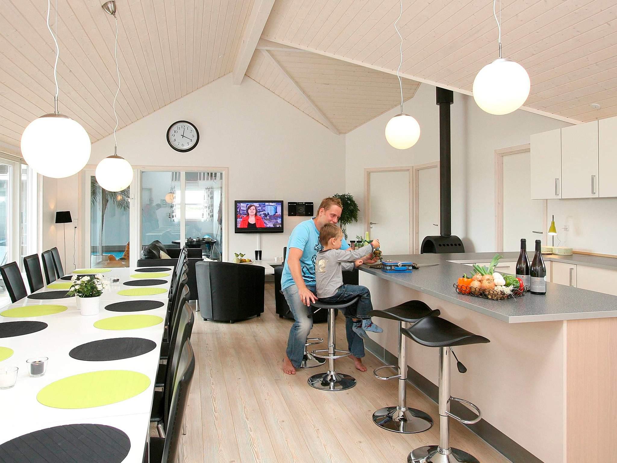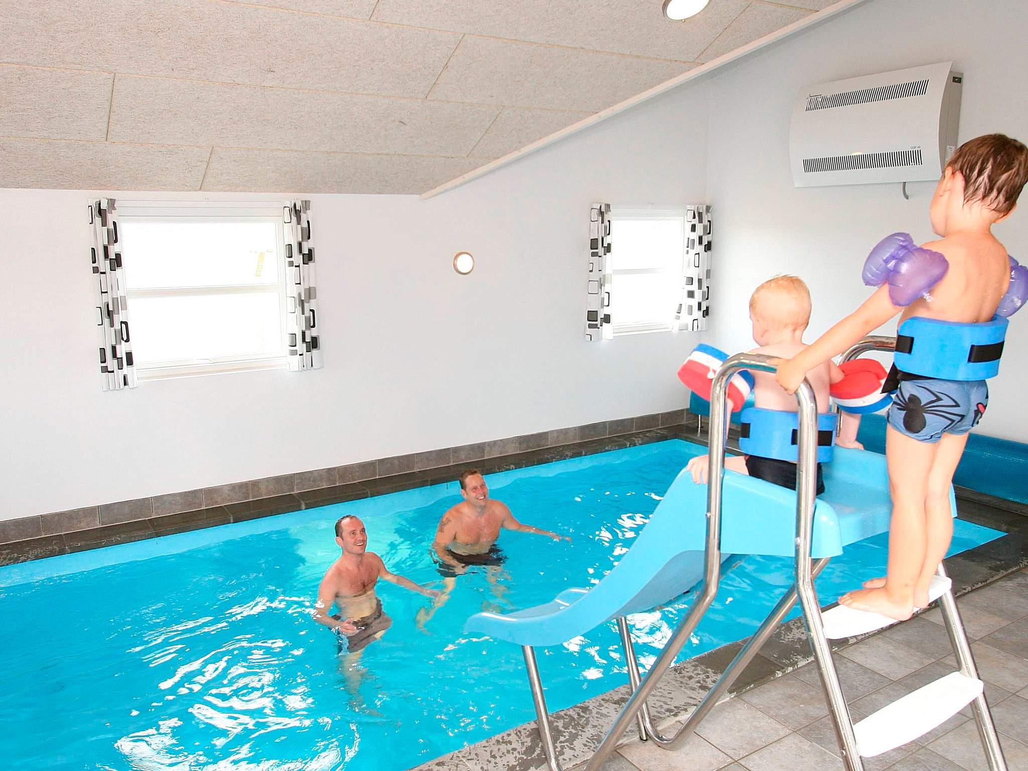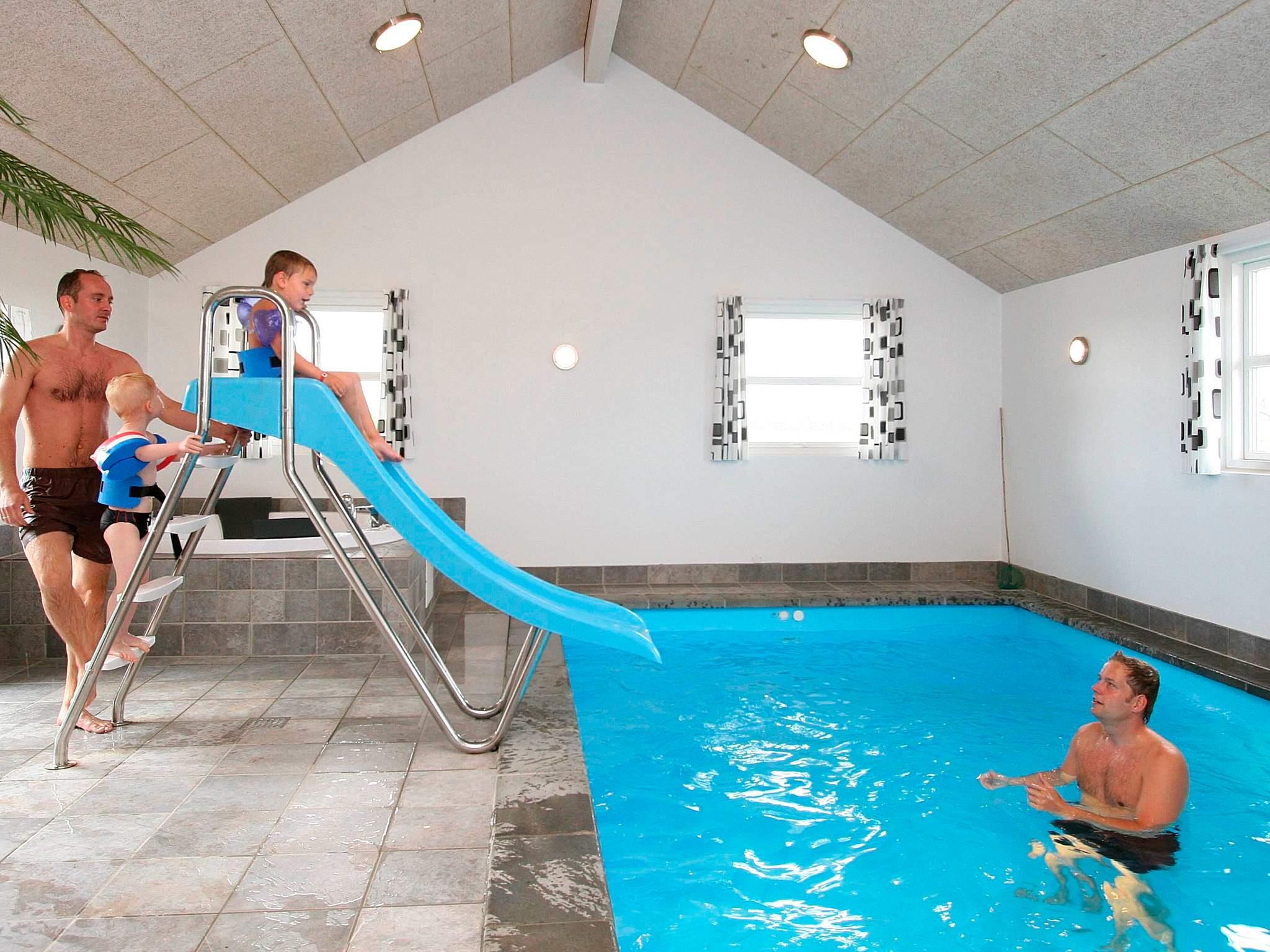 Ca. 800 m fra Vesterhavet ligger dette velindrettede sommerhus med stor poolafdeling med en stor swimmingpool med vandrutschebane, sauna, bruseniche og spabad med plads til 4-6 personer. Efter en god og oplevelsesrig dag er det skønt at lade sig glide ned i husets store spabad og bare slappe af mens I får undervandsmassage af de brusende varme stråler eller at lade sig varme igennem i husets sauna. I aktivitetsrummet kan I tage jer et spil dart eller billard ved poolbordet. Her kan I også udfordre hinanden i bordtennis eller fodboldspil. Selv stereoanlæg, PlayStation2 og fladskærm er installeret i aktivitets rummet.