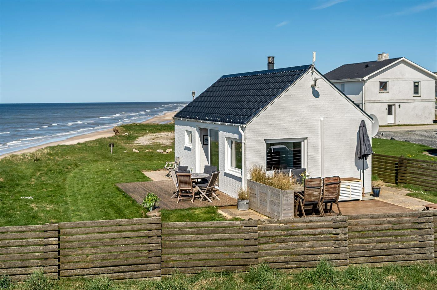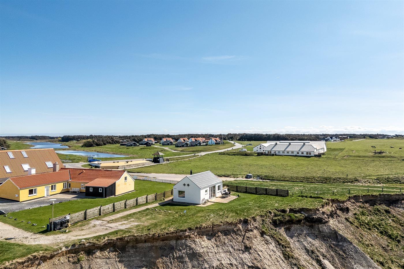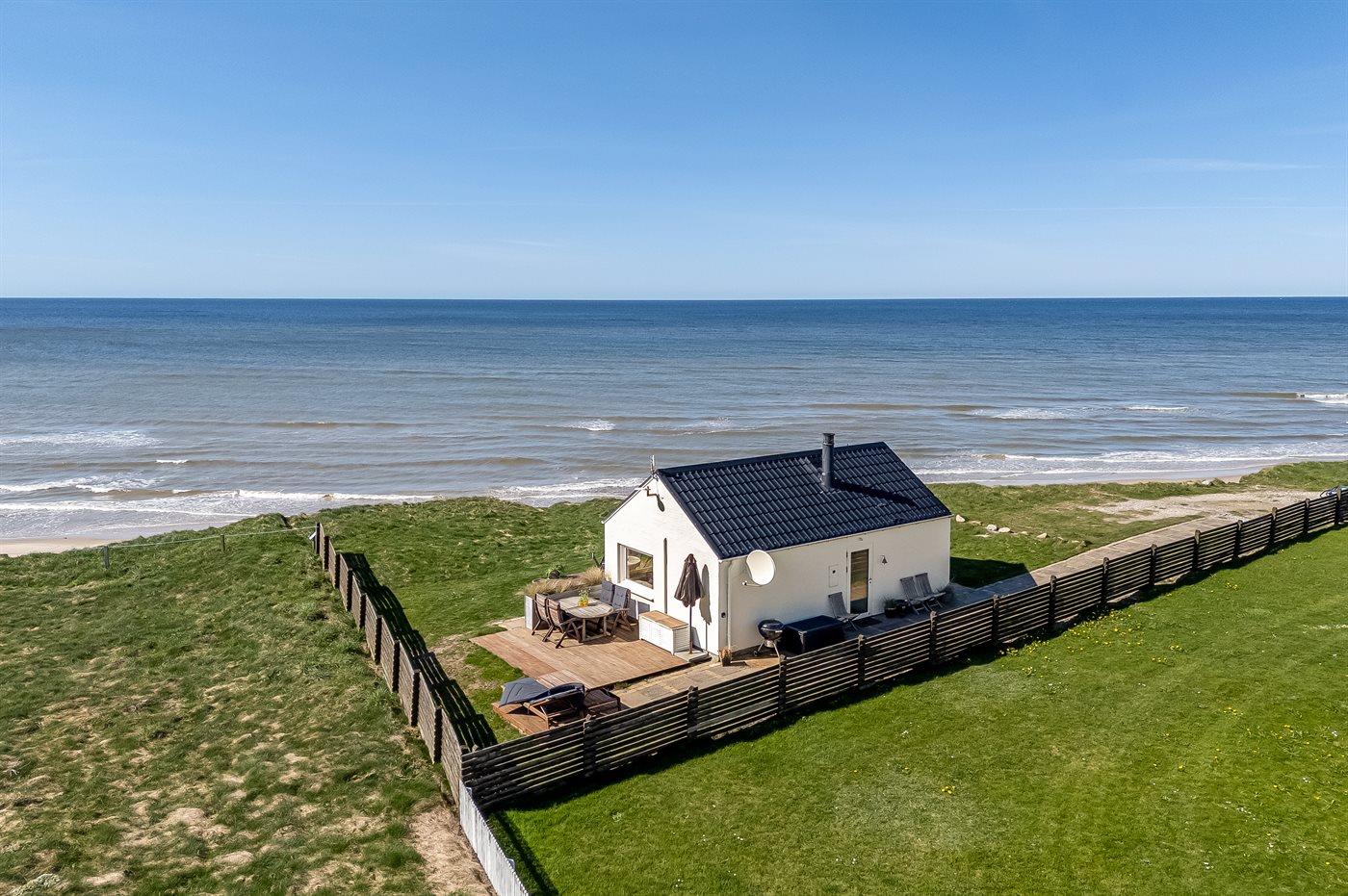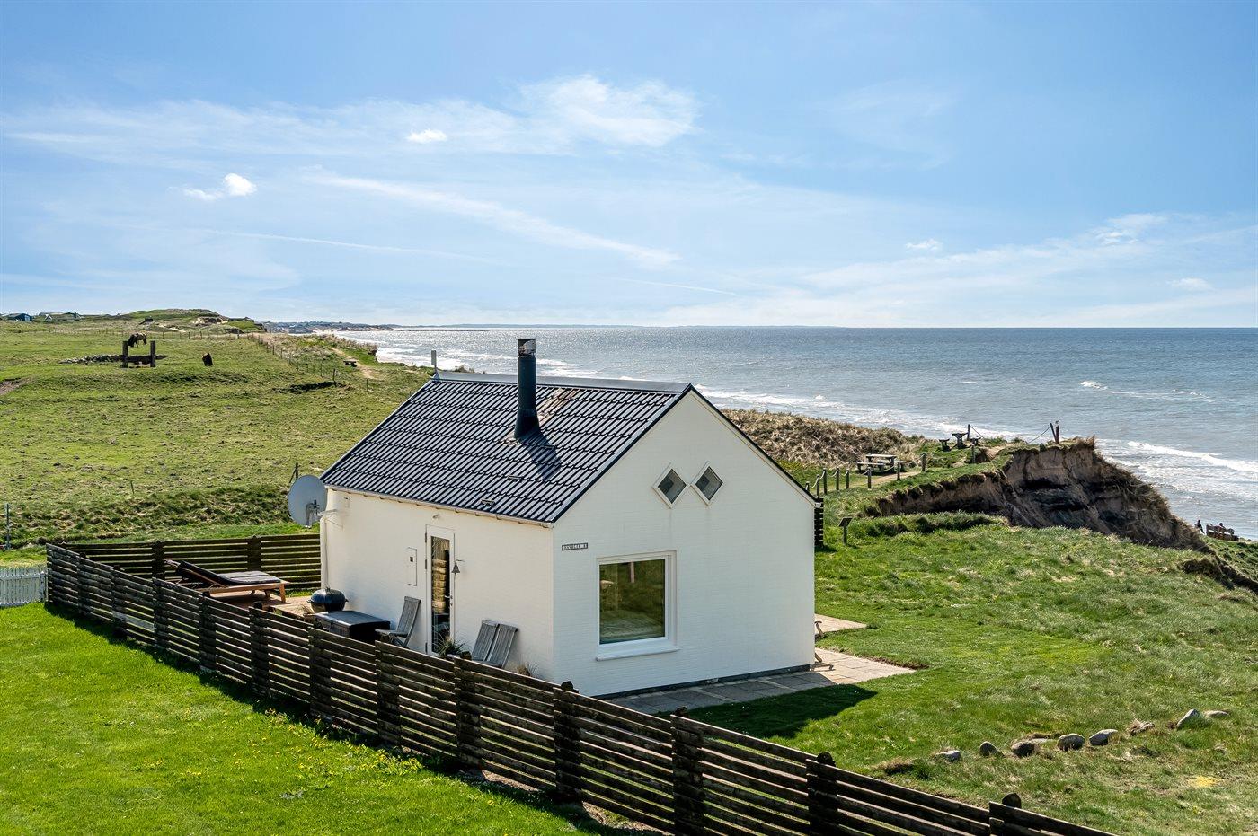 Et unikt beliggende, lille sommerhus med en flot udsigt over havet. Huset ligger i Nr. Lyngby - i yderste række til den stejle kyststrækning, som kendetegner området. Der findes terrasser på 3 sider af huset samt en hyggelig bålplads. Bemærk, at 2 af de i alt 4 sovepladser befinder sig på en sovesofa i opholdsstuen.