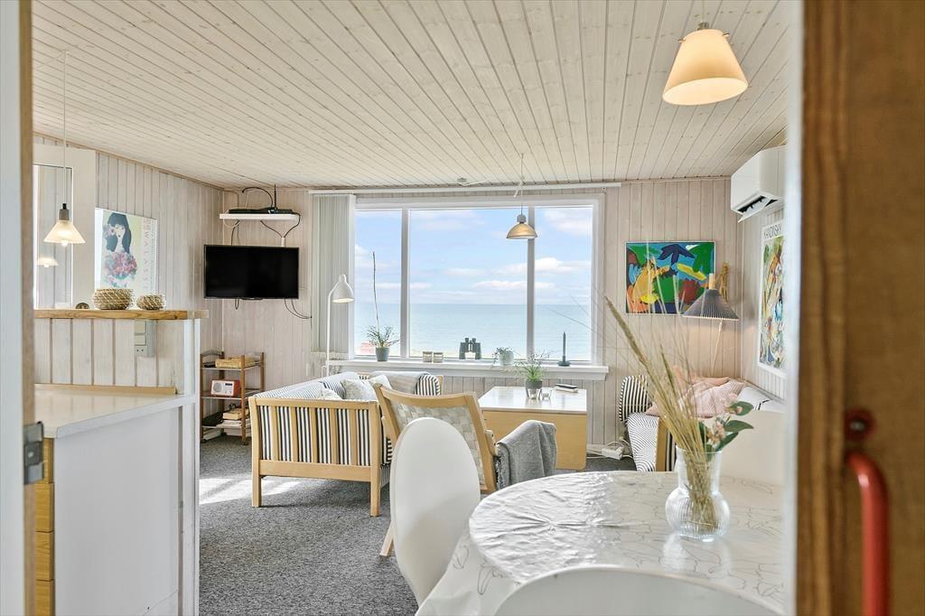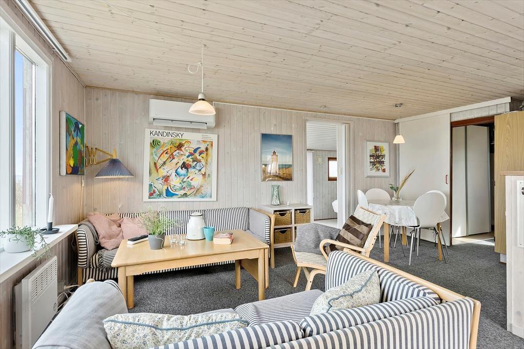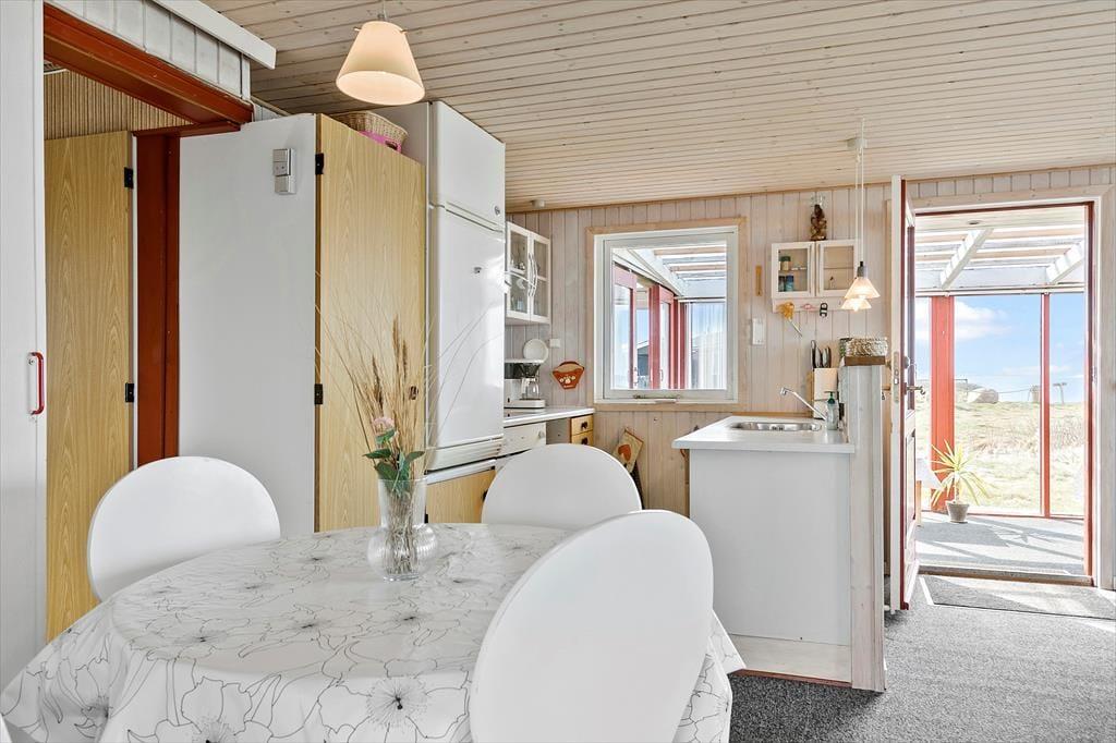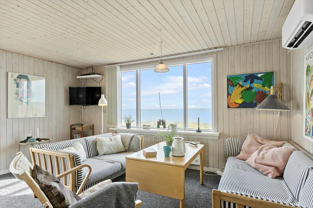 Her er mulighed for at holde sommerhusferie som i de gode gamle dage, hvor man kommer helt ned i tempo, får masser af frisk havluft, bader dagen lang og hjælper hinanden med opvasken efter aftensmaden. Sommerhuset er et ældre typisk dansk hus, med hyggelig indretning og plads til fire overnattende personer. Stue og køkken hænger sammen, og fra alle rum har man en helt formidabel havudsigt og et kig til et af Vesterhavets mest fascinerende områder ved Nr. Lyngby. Af moderne faciliteter kan nævnes ubegrænset internet, 2 danske kanaler og parabol med 52 kanaler, inkl. otte tyske. Det er en stor oplevelse at bo i dette hus, hvor naturen sætter så store præg og lyden af bølgerne virker som meditation.