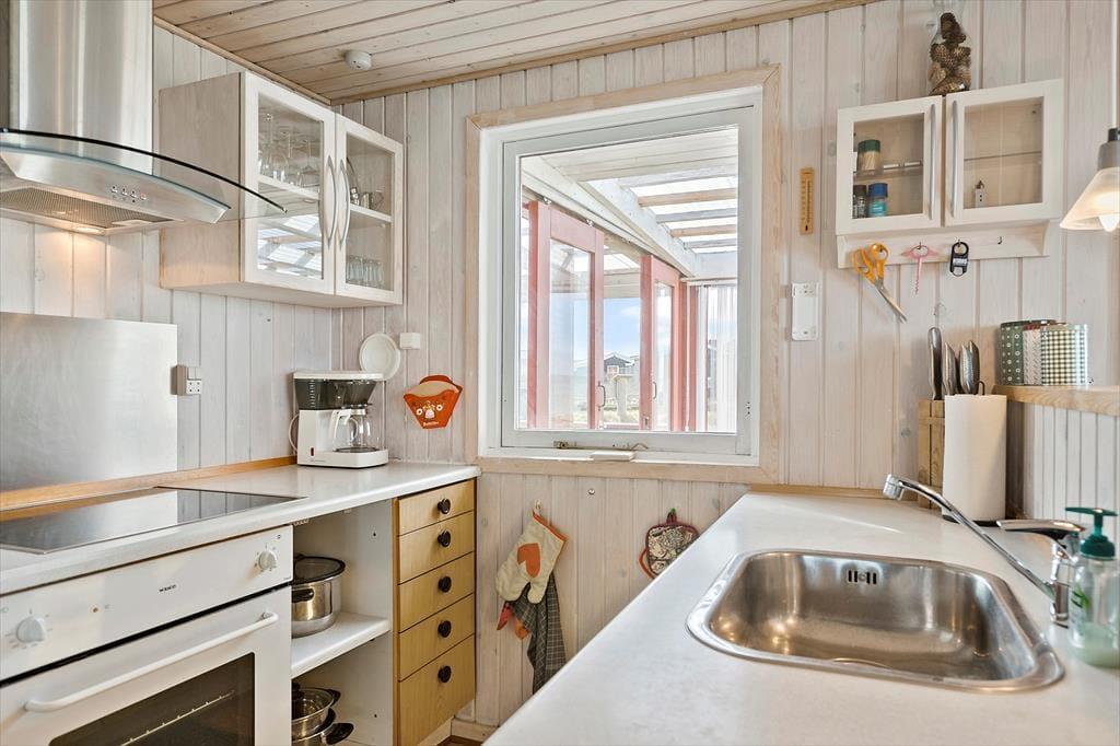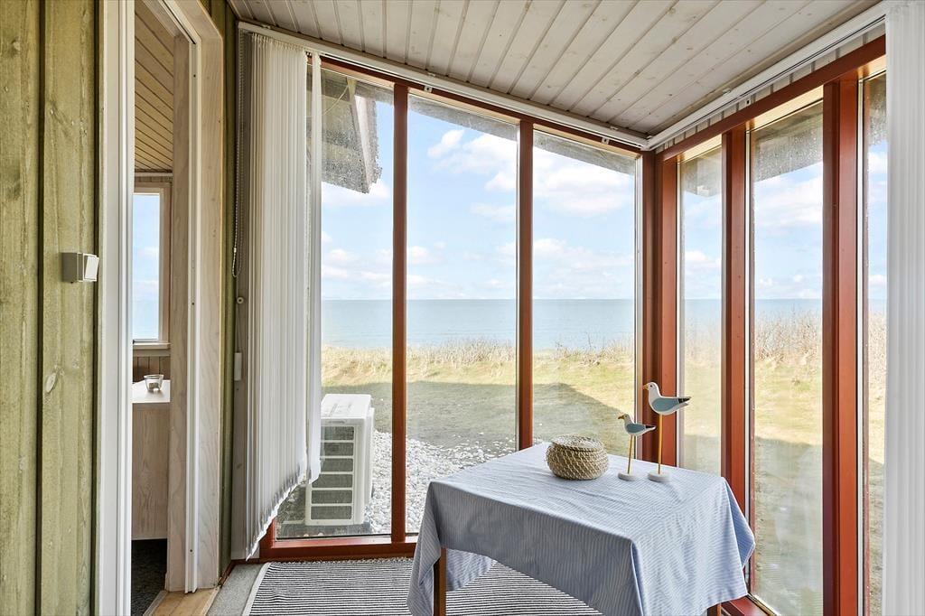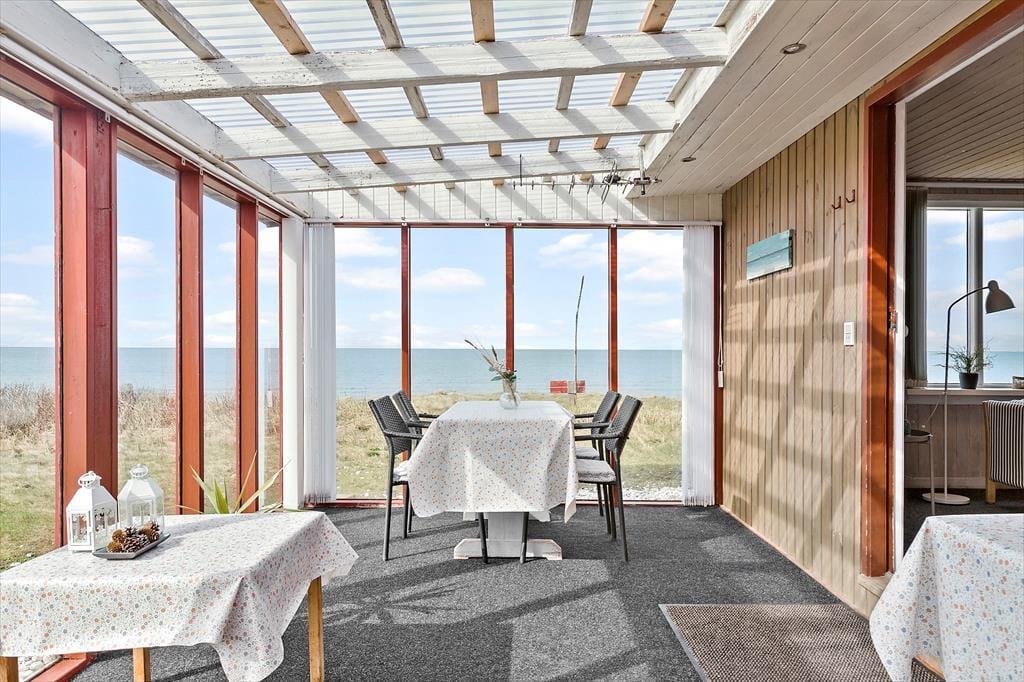 Sommerhuset har en 18m2 stor udestue med glasvinduer, hvor man allerede i forårsmånederne kan sidde og kigge ud over havet, eller nyde et glas vin til solnedgangen om aftenen. Her er også dejligt på de blæsende dage, mens man på de gode sommerdage kan bruge den 30m2 store solgård.